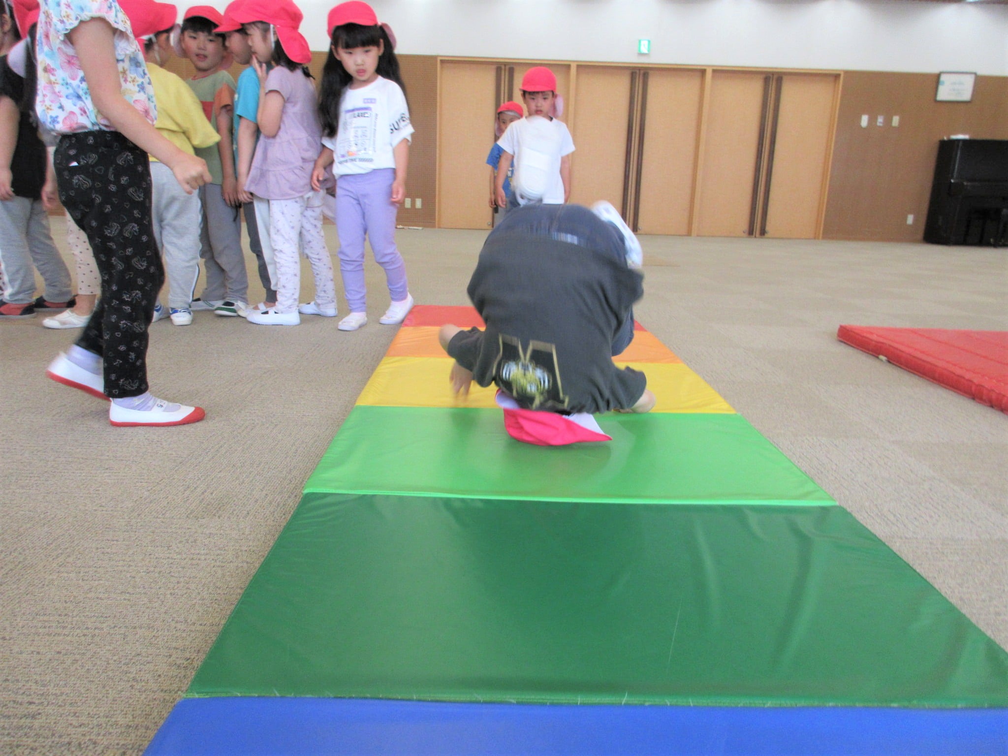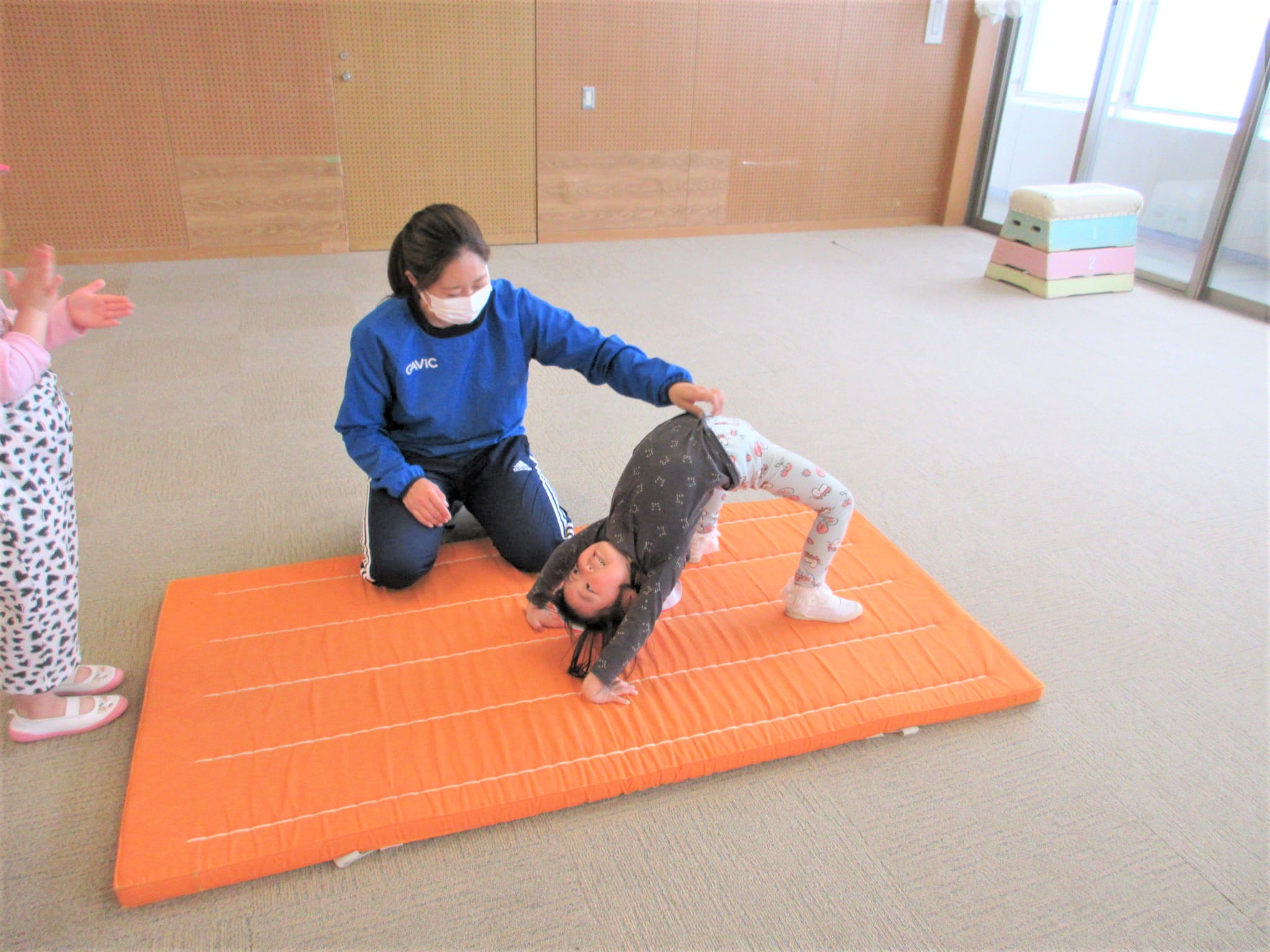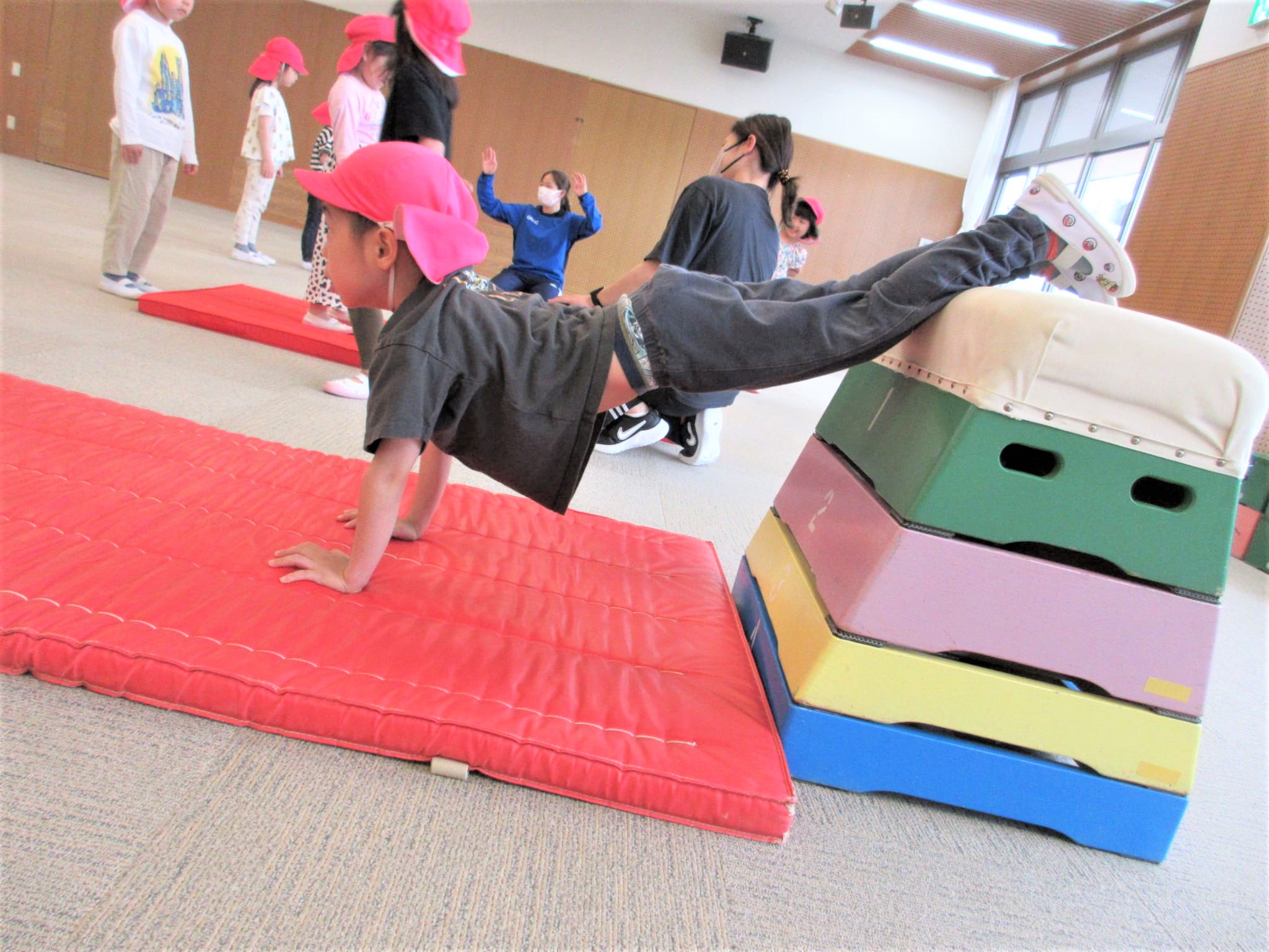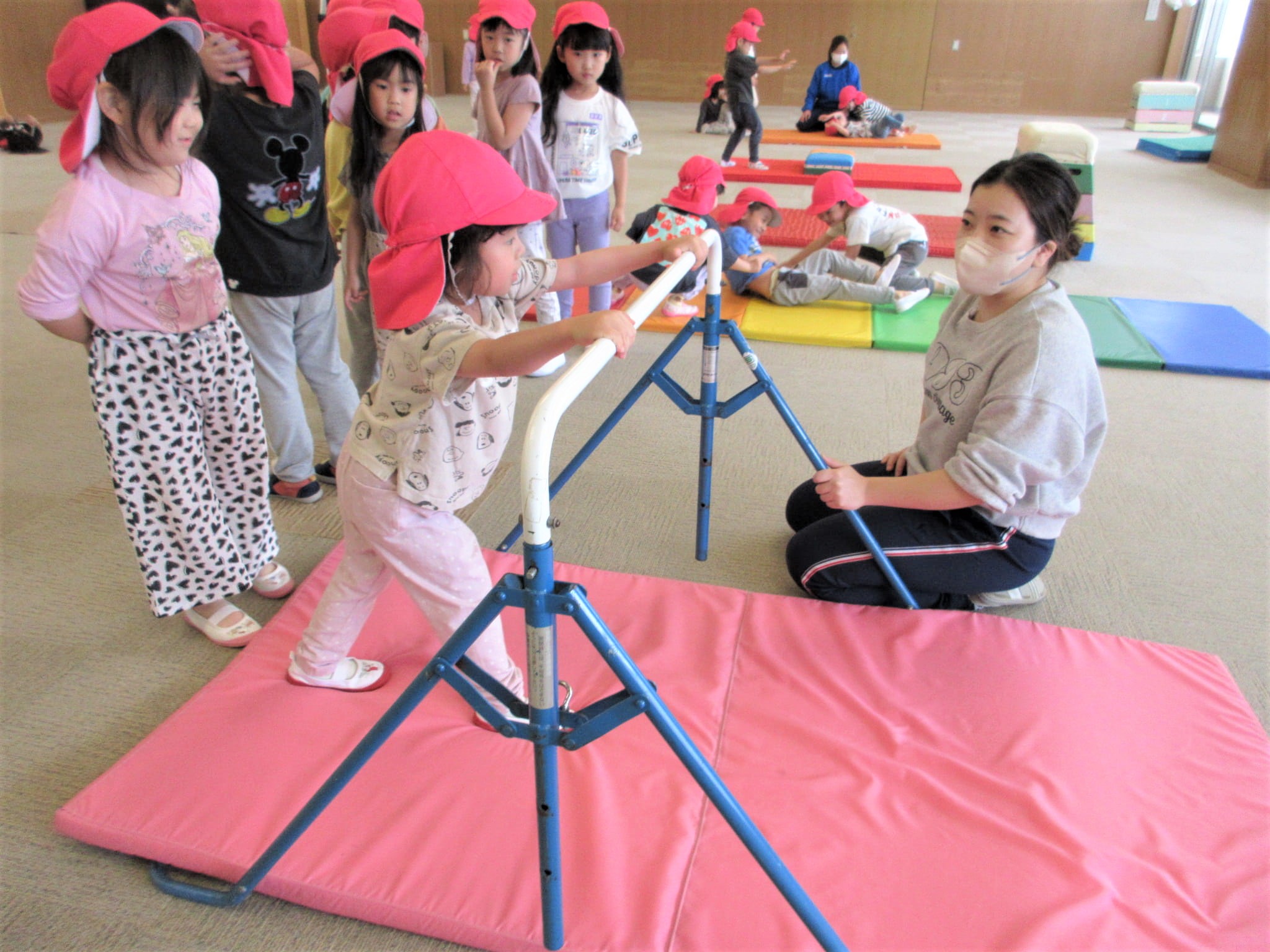 逆上がりを成功させた時に、鉄棒から見える景色を見ることができるように援助していきたいと思います☆