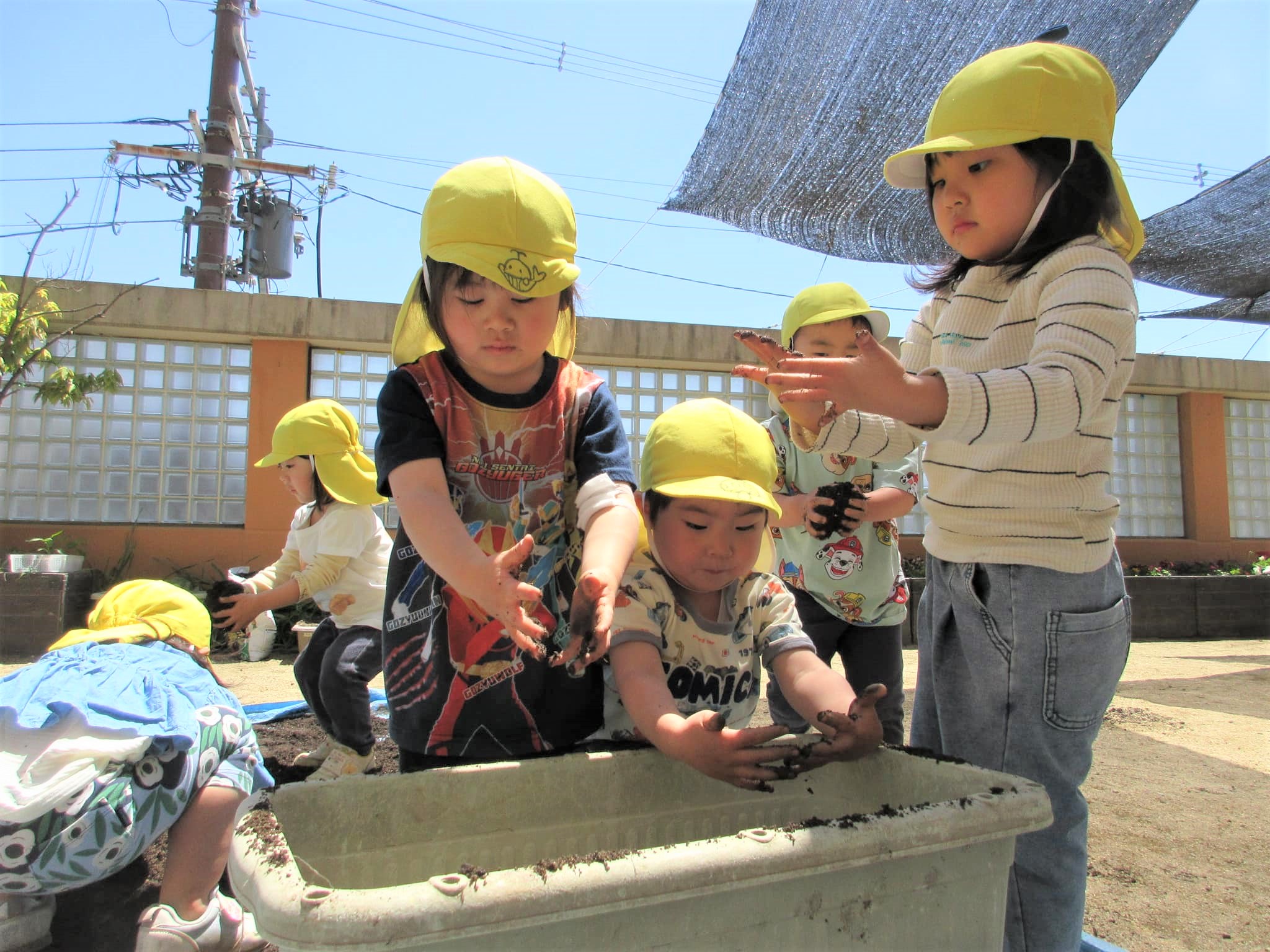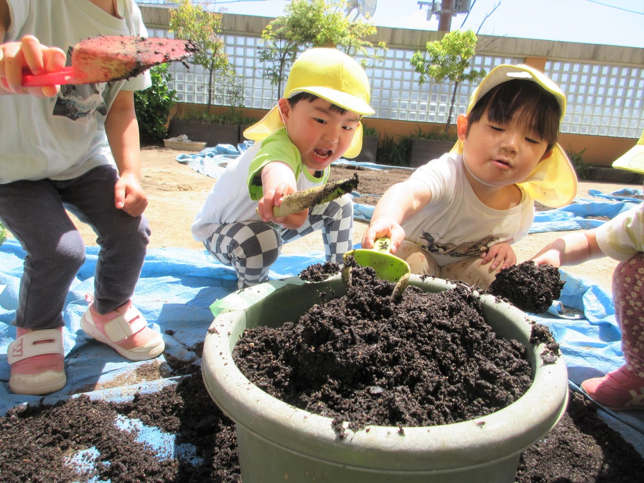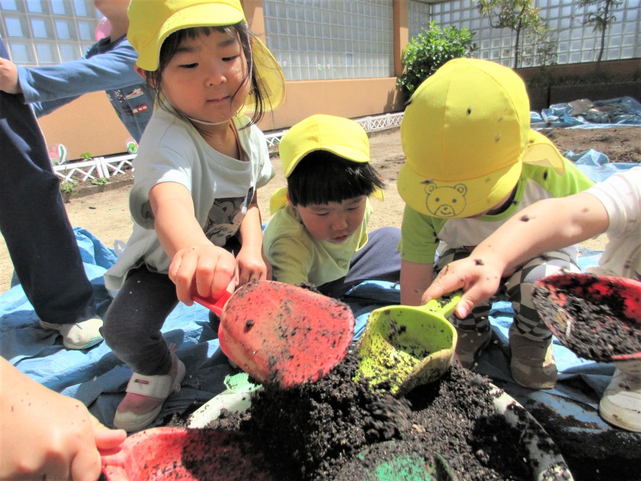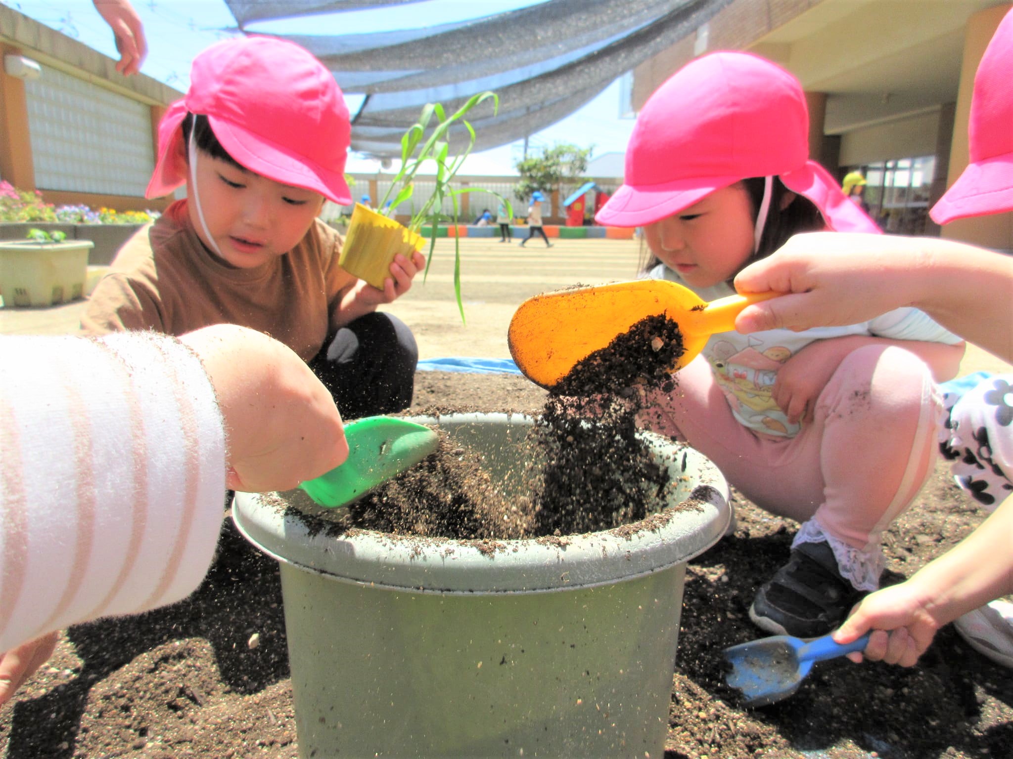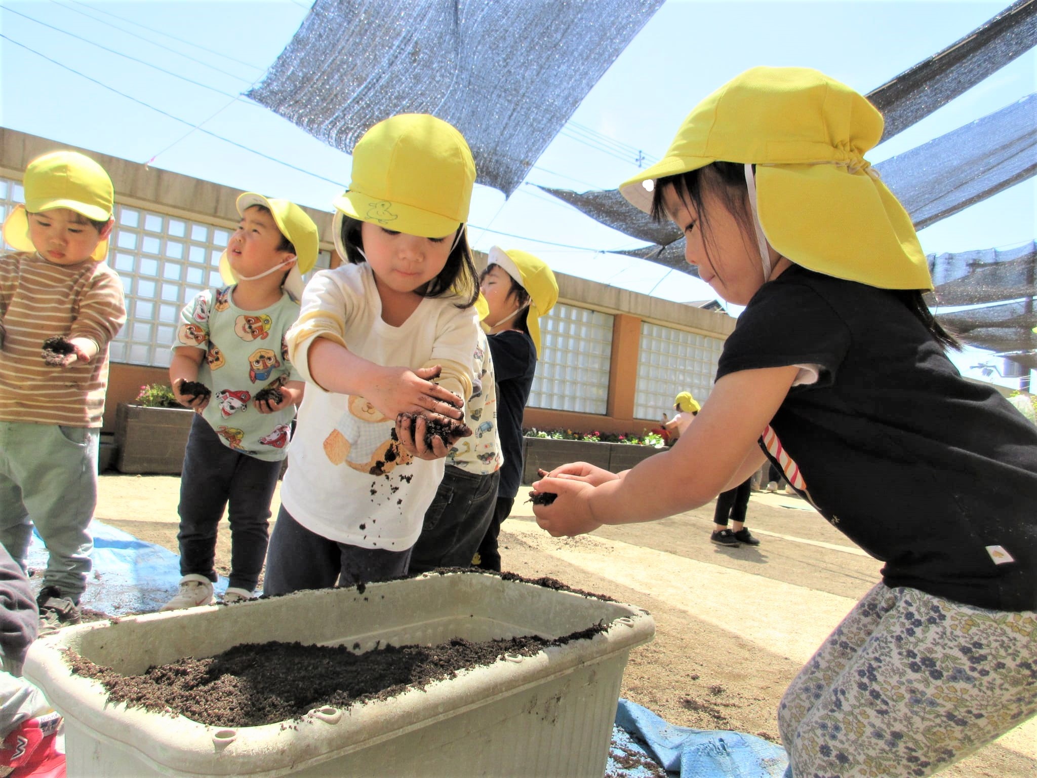 みんなでプランターに土を入れました♪