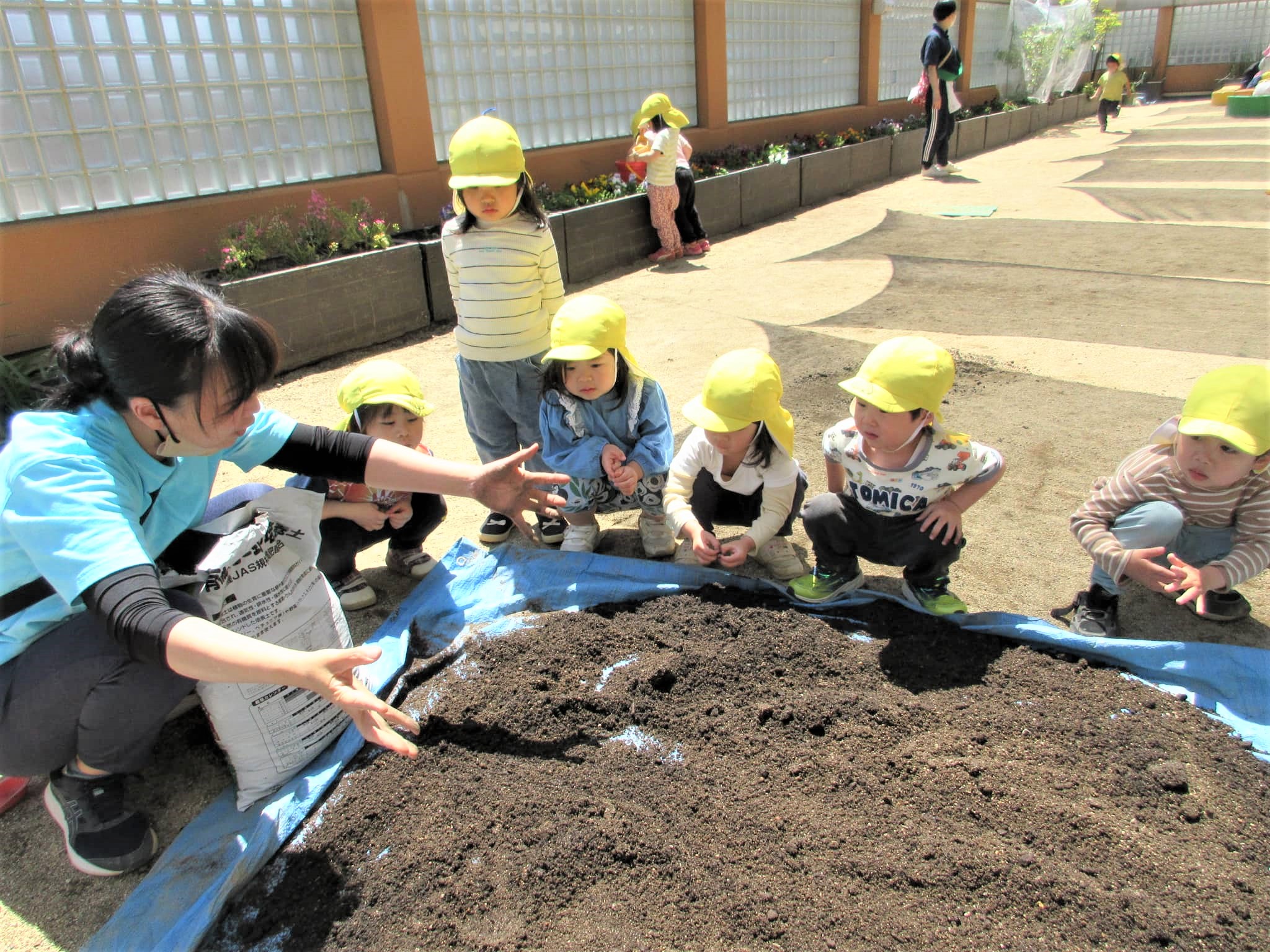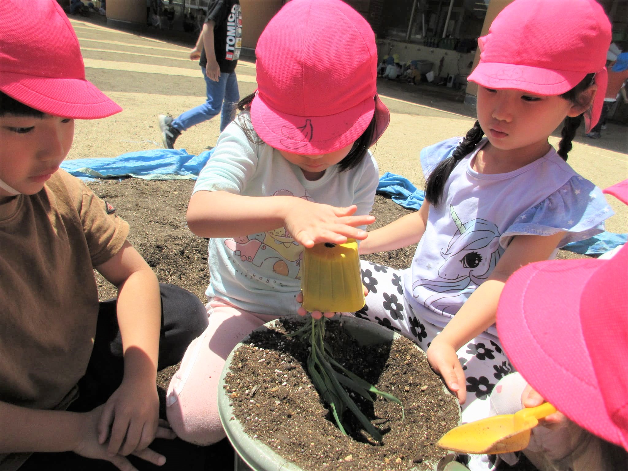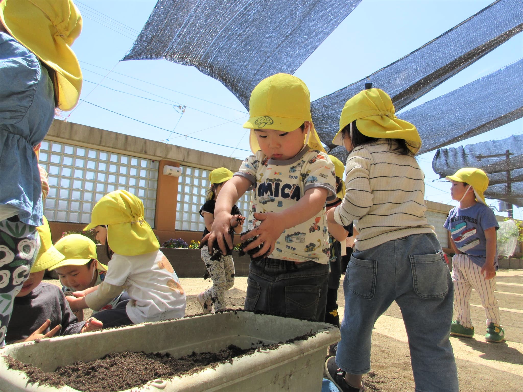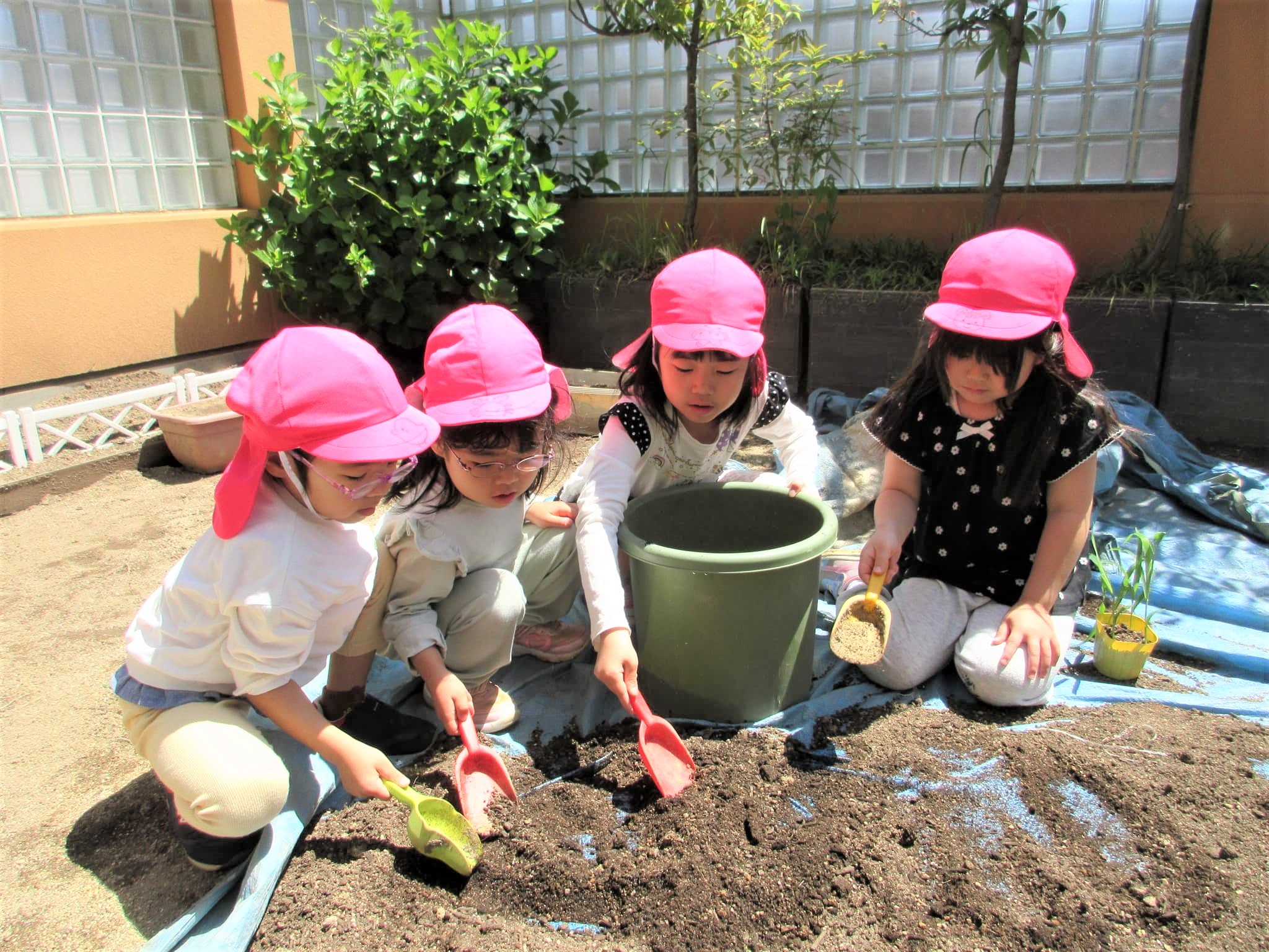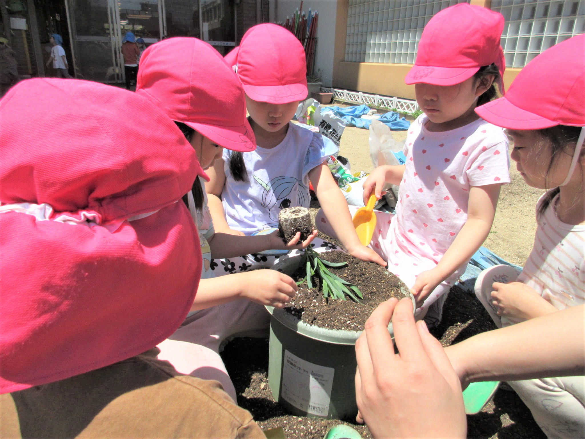 みんなでプランターに土を入れました♪