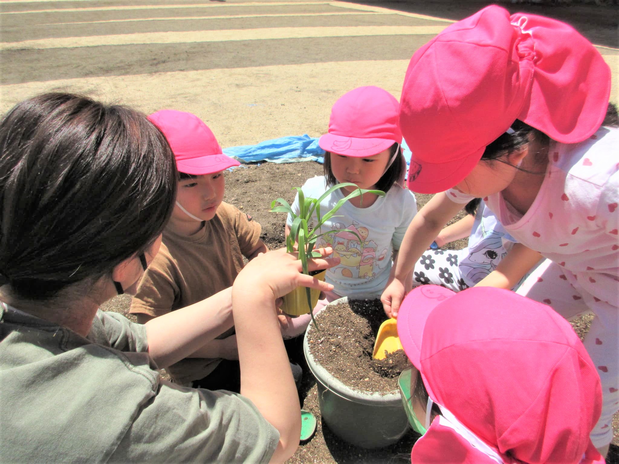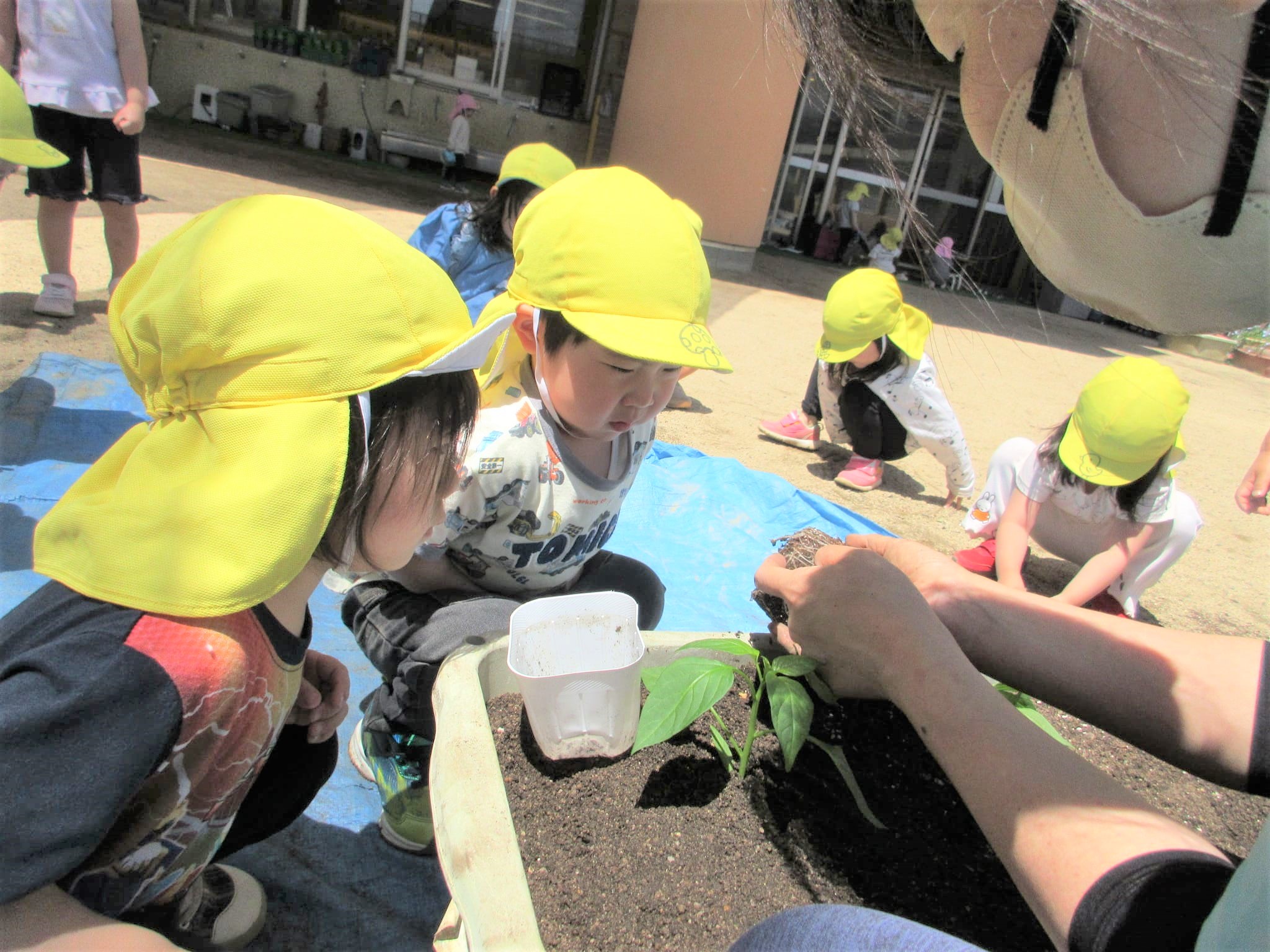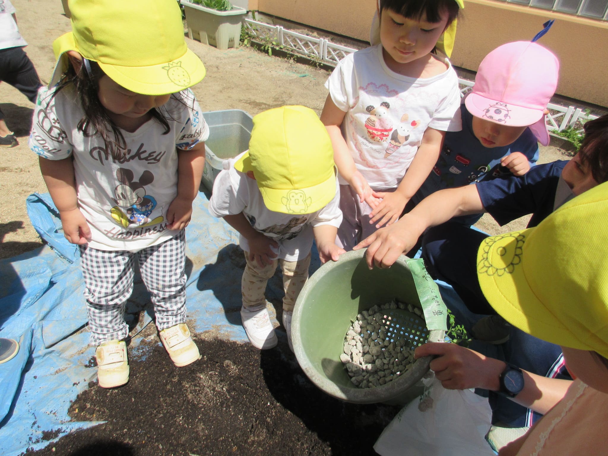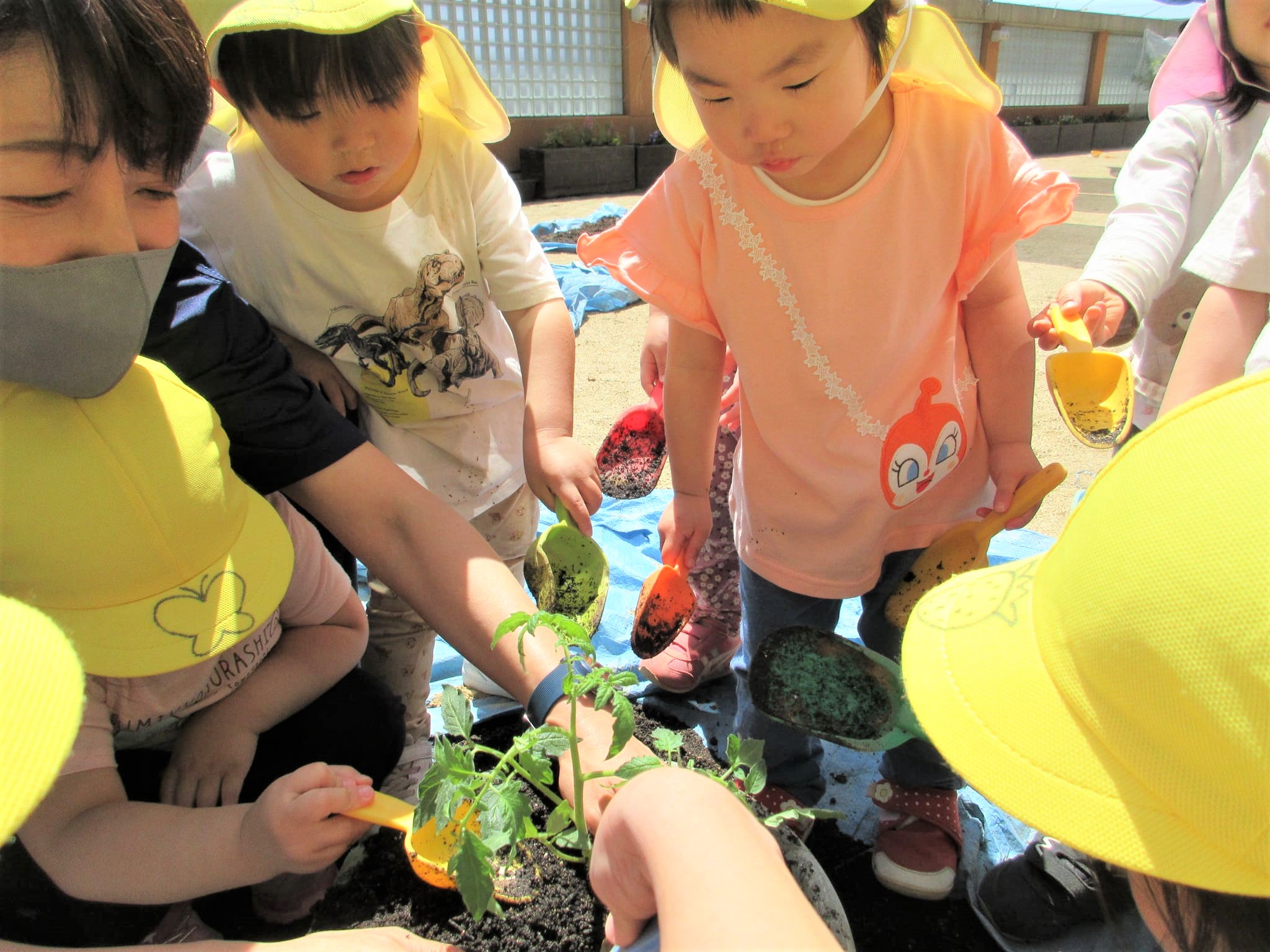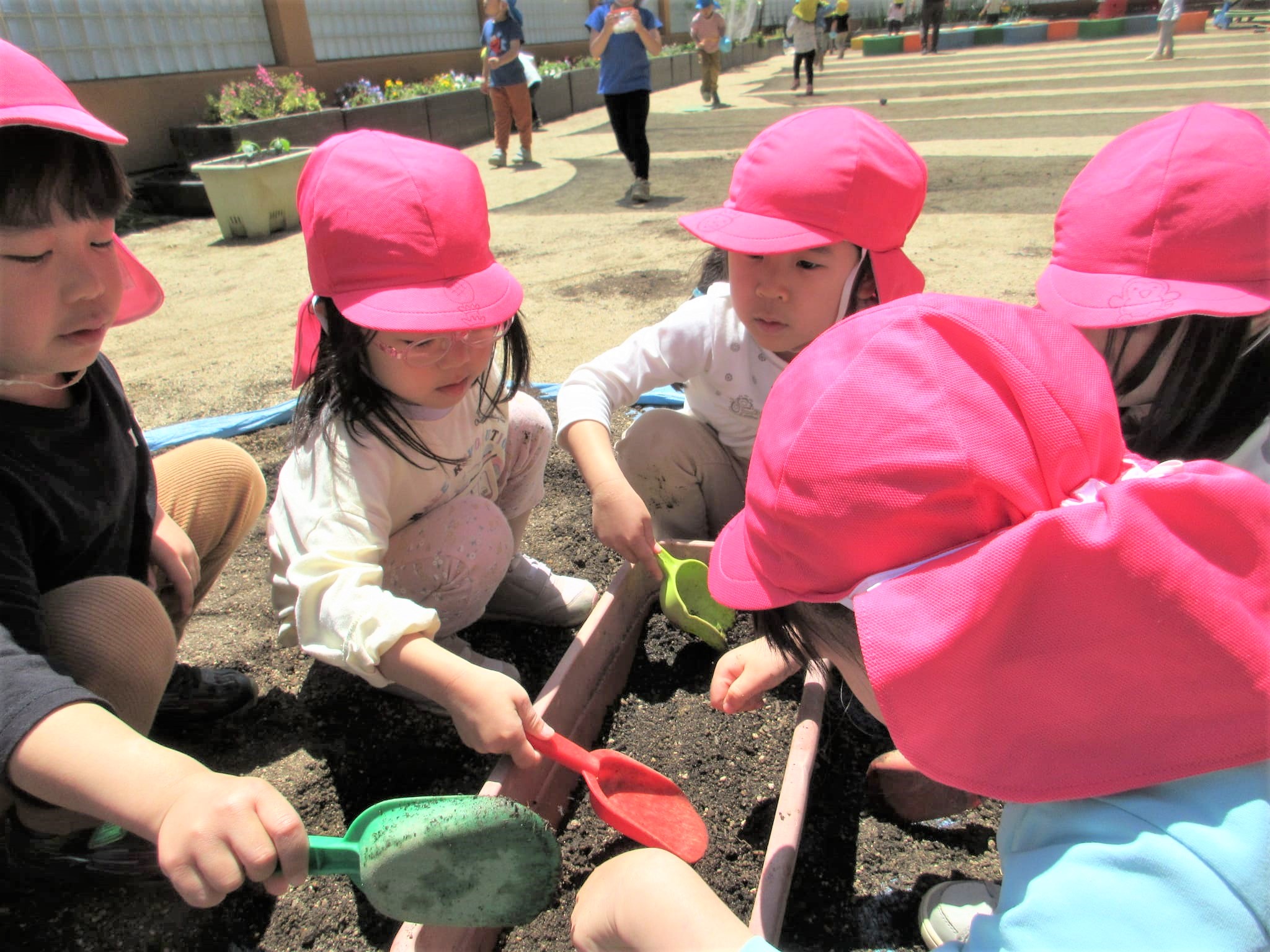みんなでプランターに土を入れました♪