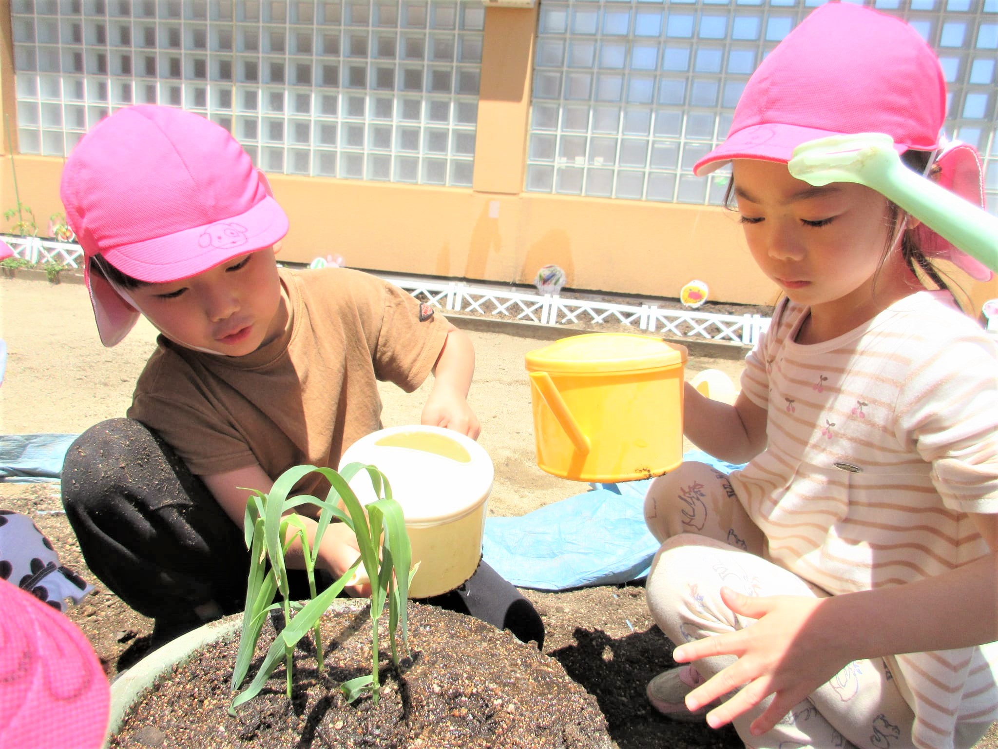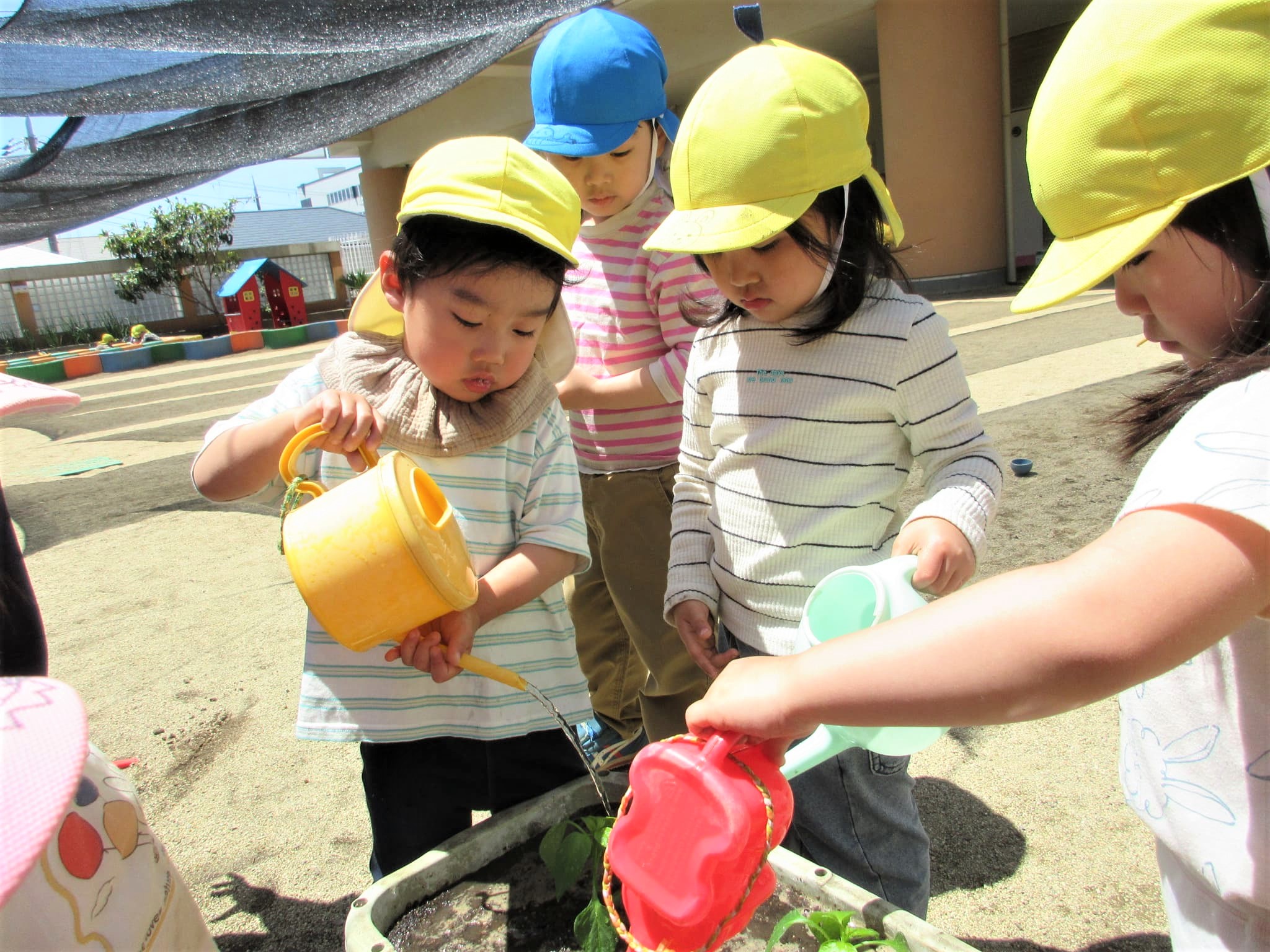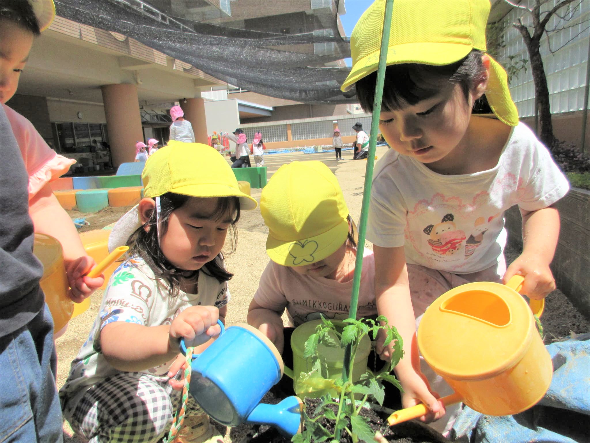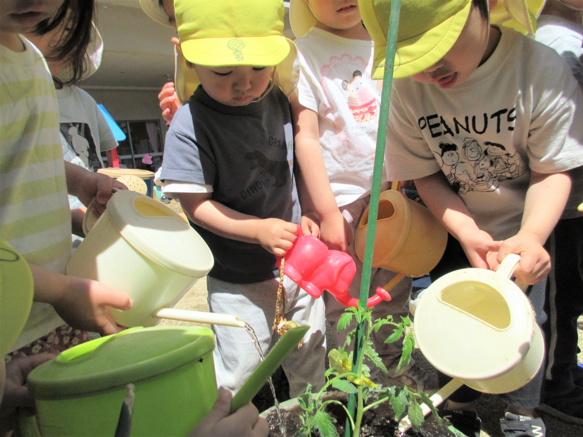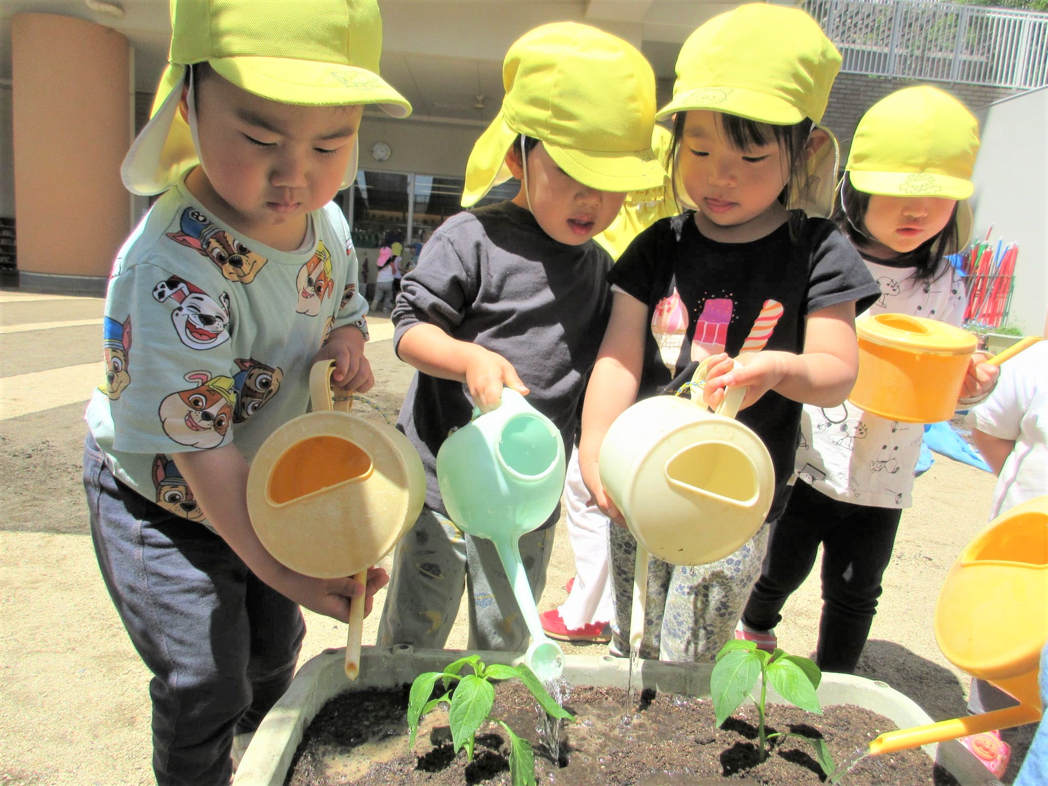 葉っぱに水をかけるのではなく、苗の根元に水をかけている子どもたちでした♪