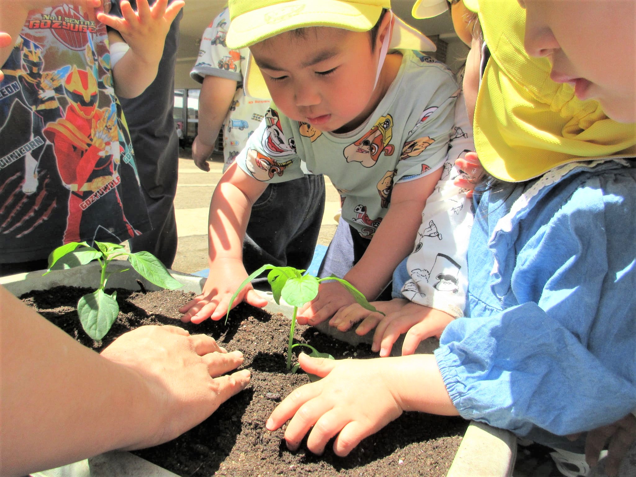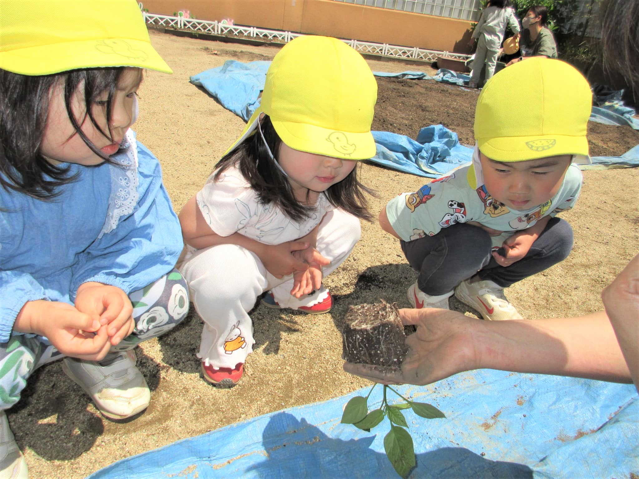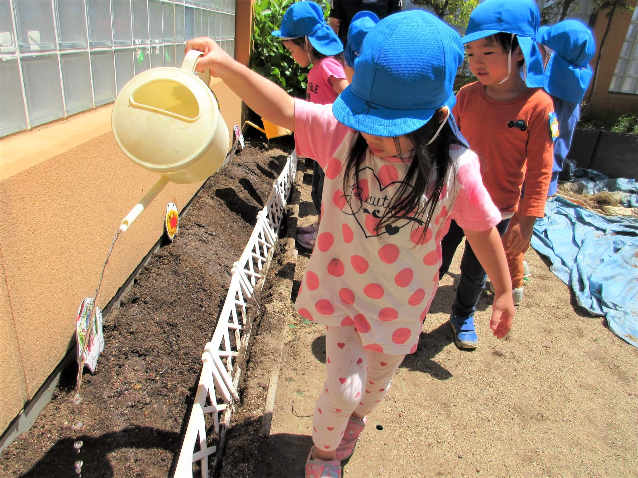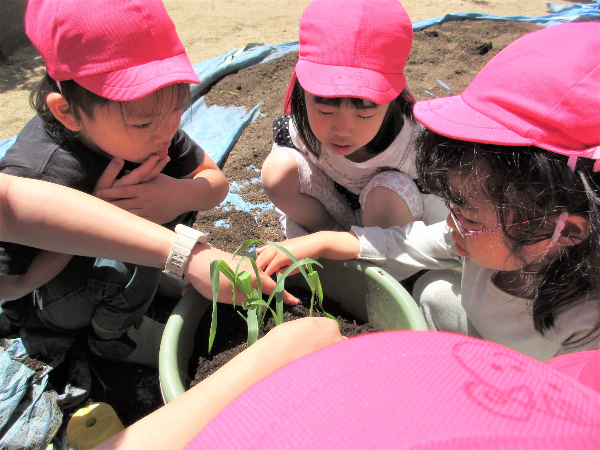 葉っぱに水をかけるのではなく、苗の根元に水をかけている子どもたちでした♪