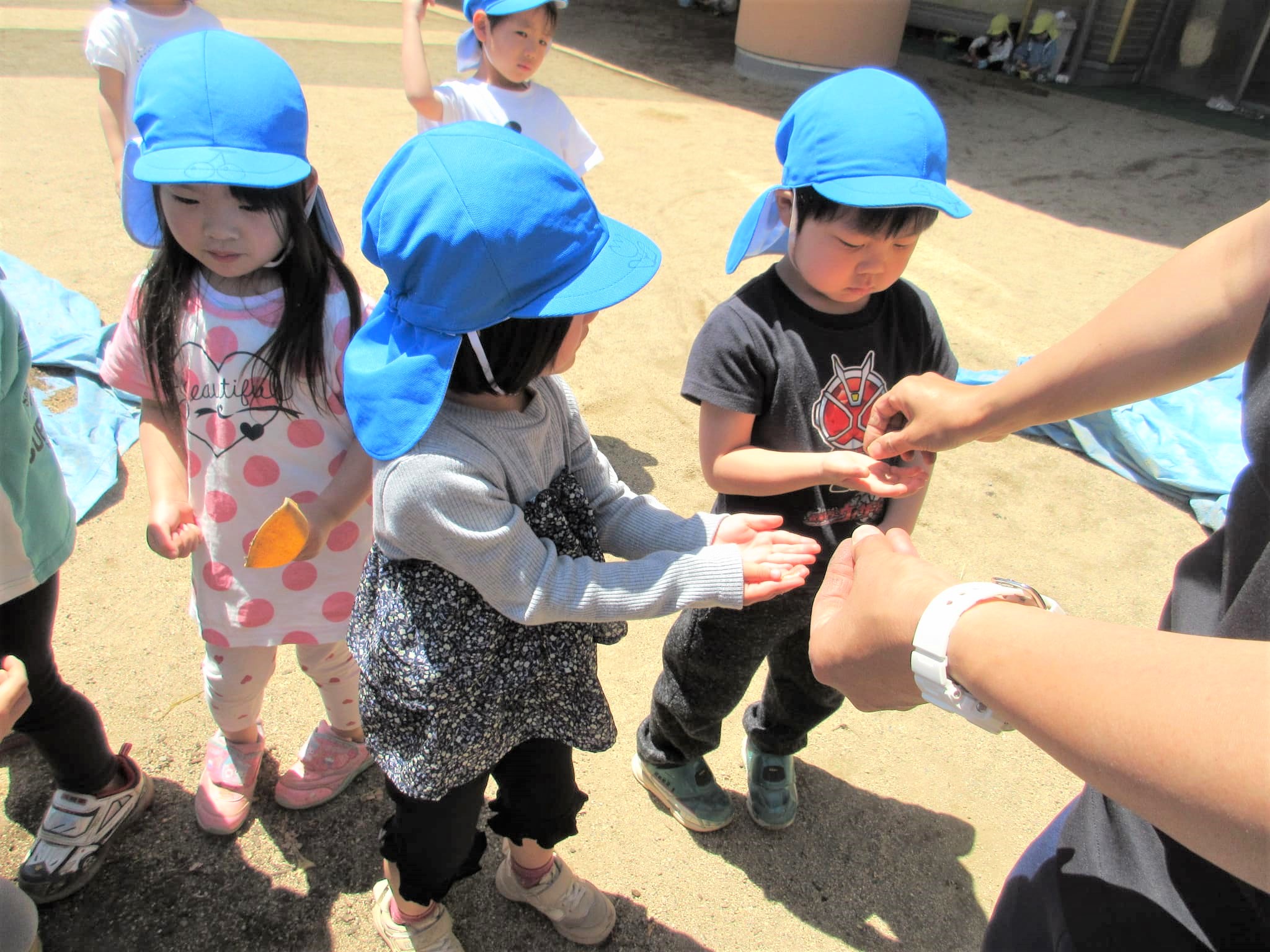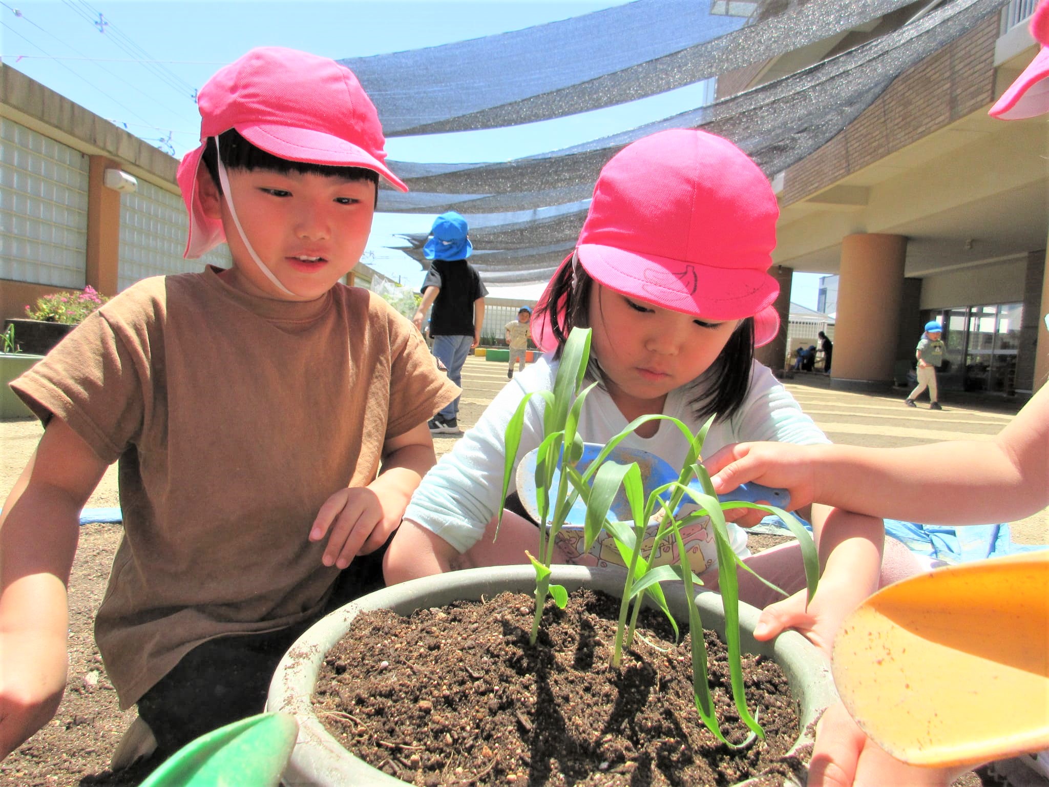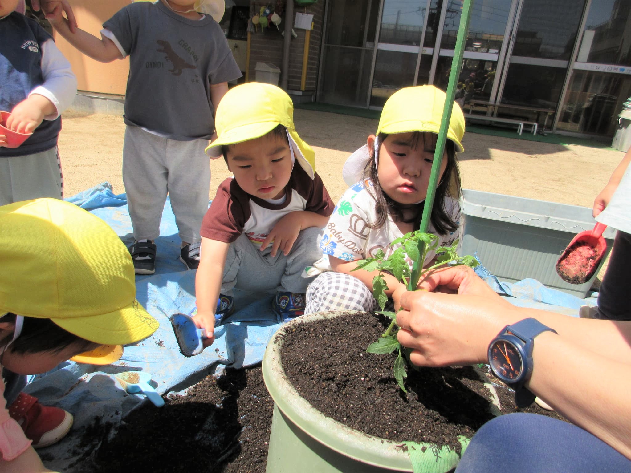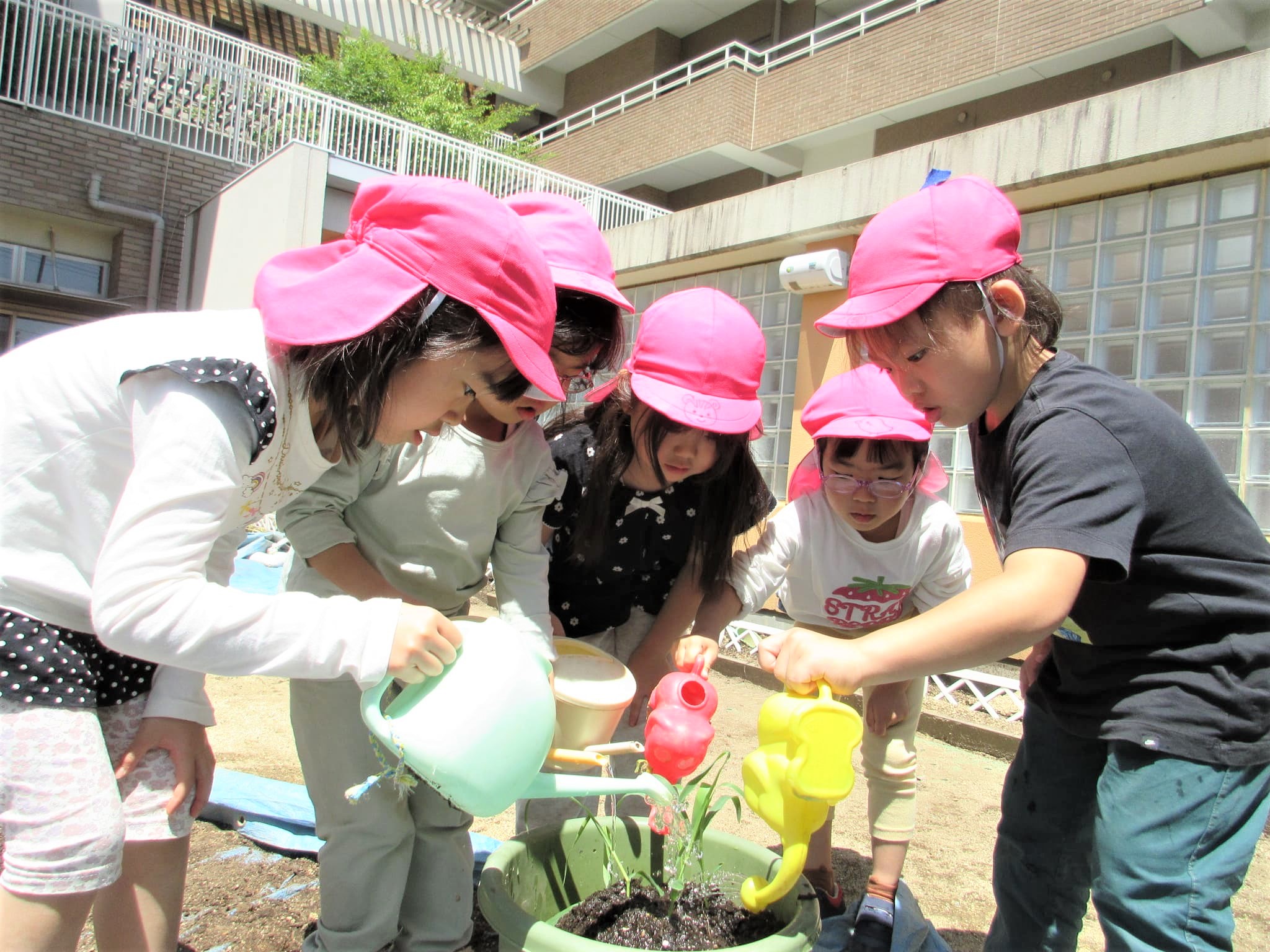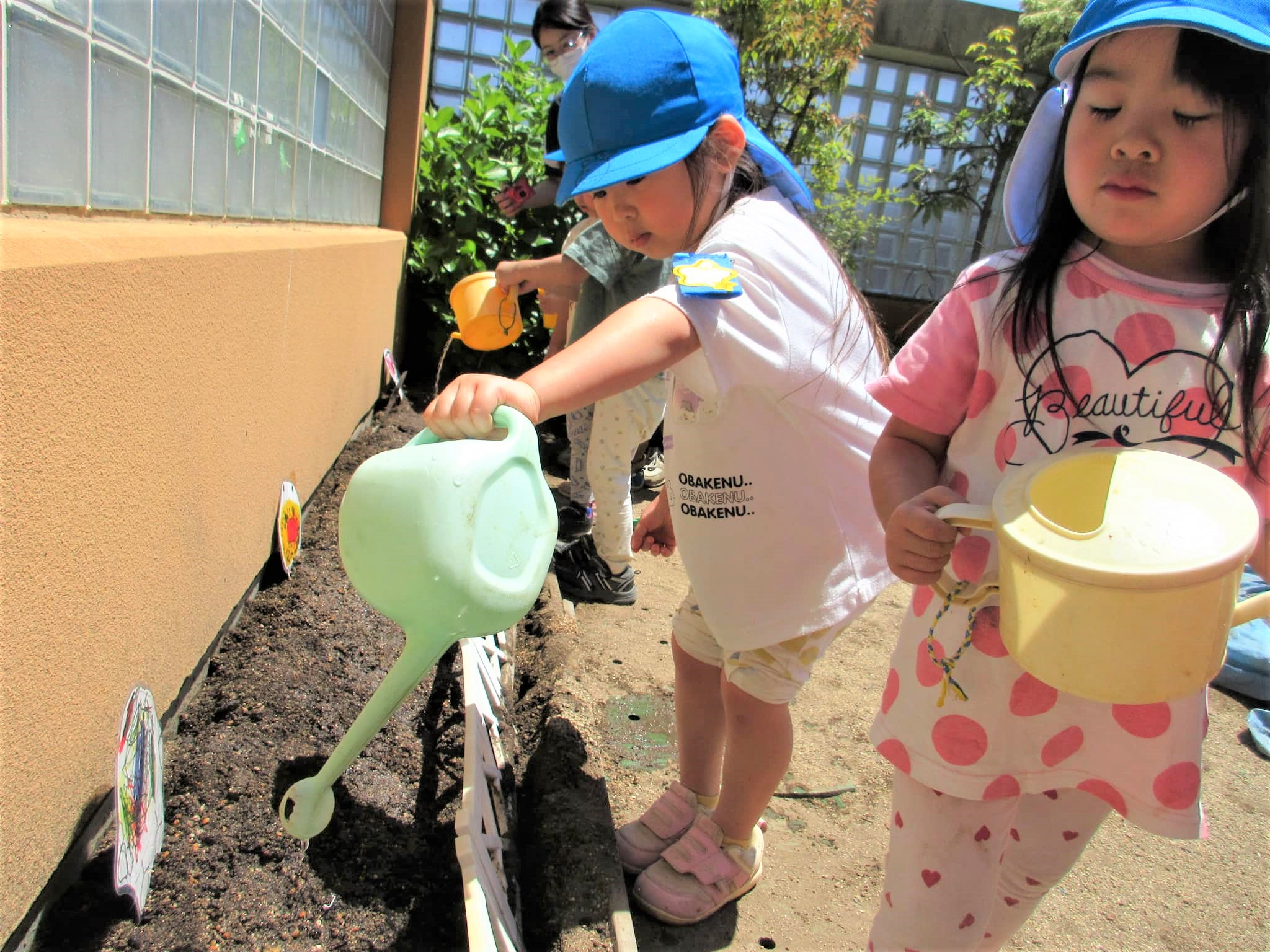 葉っぱに水をかけるのではなく、苗の根元に水をかけている子どもたちでした♪