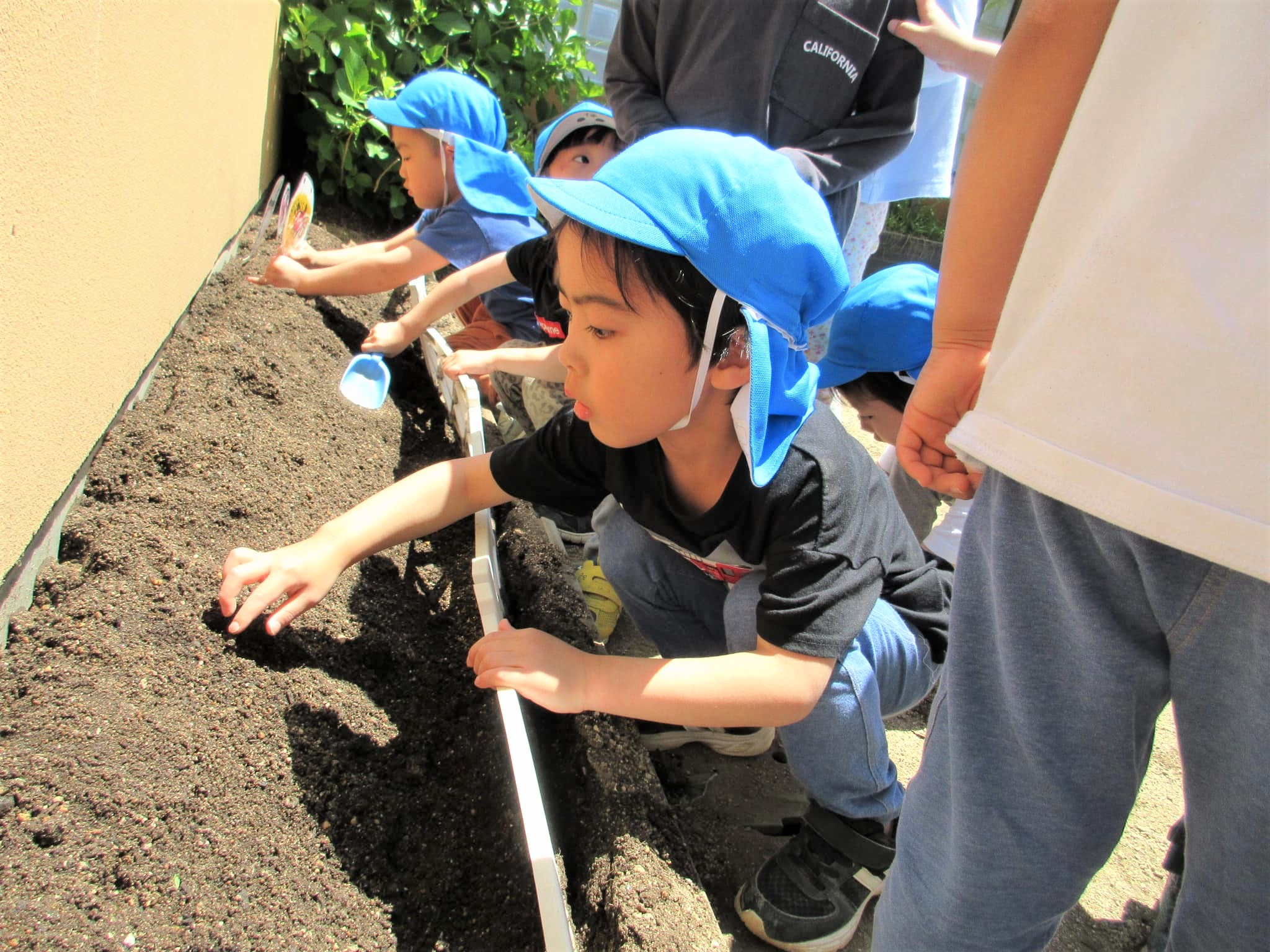 各クラス、苗を植えたり種を蒔いて、仕上げに入ります!!