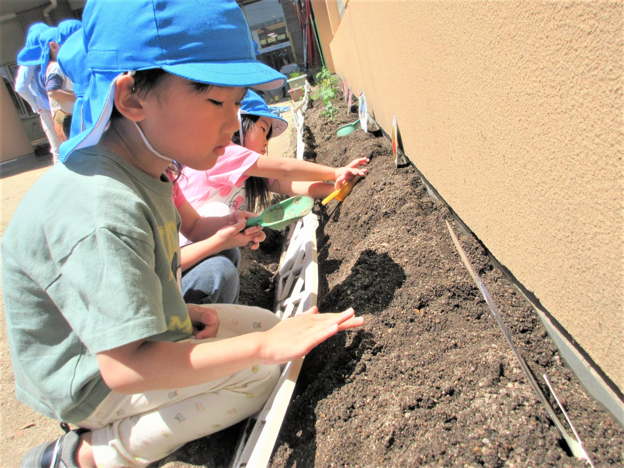 苗に、やさし~く土の布団をかけてあげていました♪