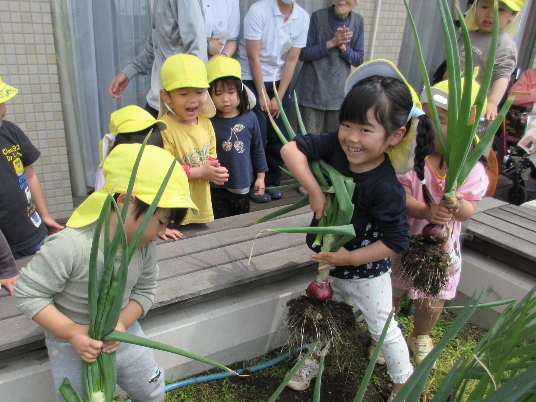 ベルライブのおばあちゃんに見守られながら、楽しく収穫させてもらいました♪