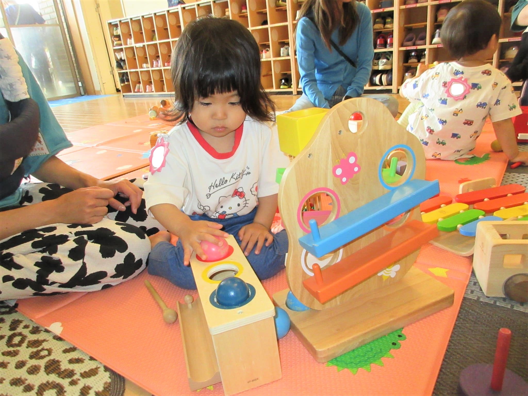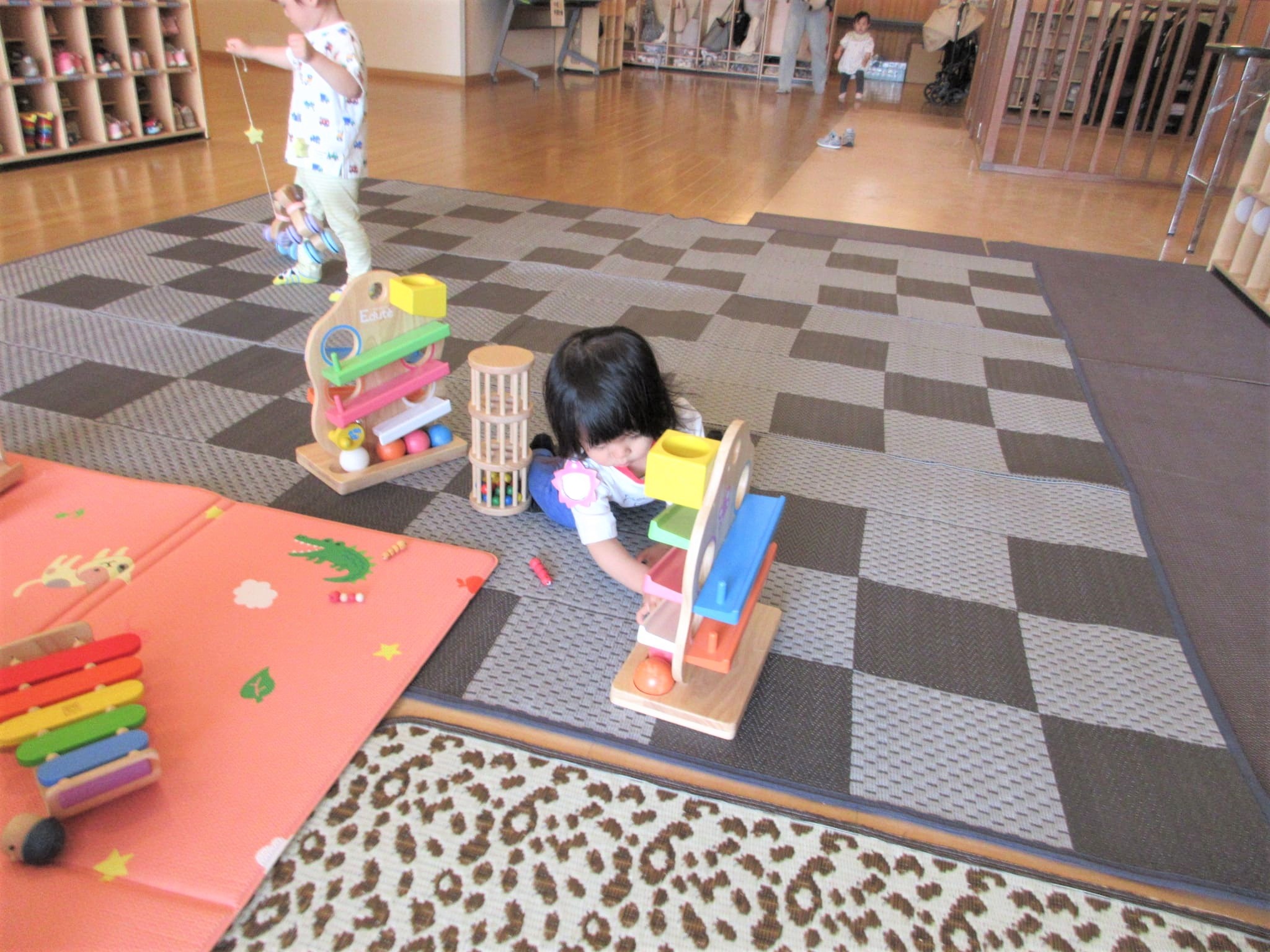 ベルキンダーの園庭開放のこだわりの“木のおもちゃ”で