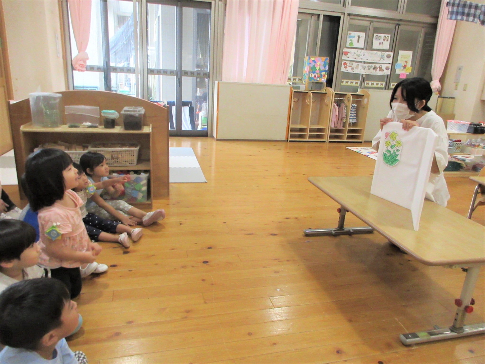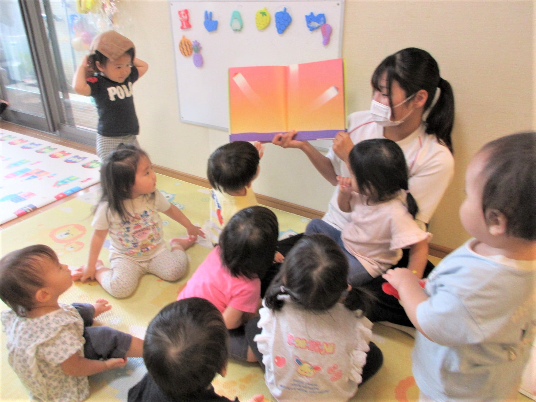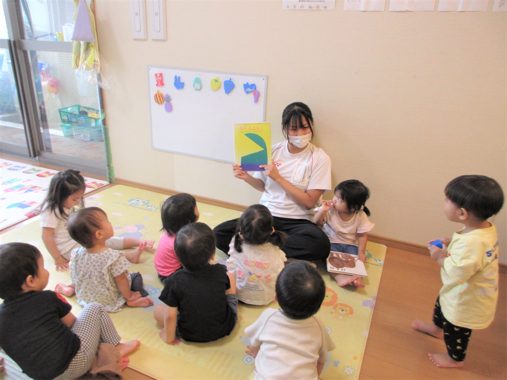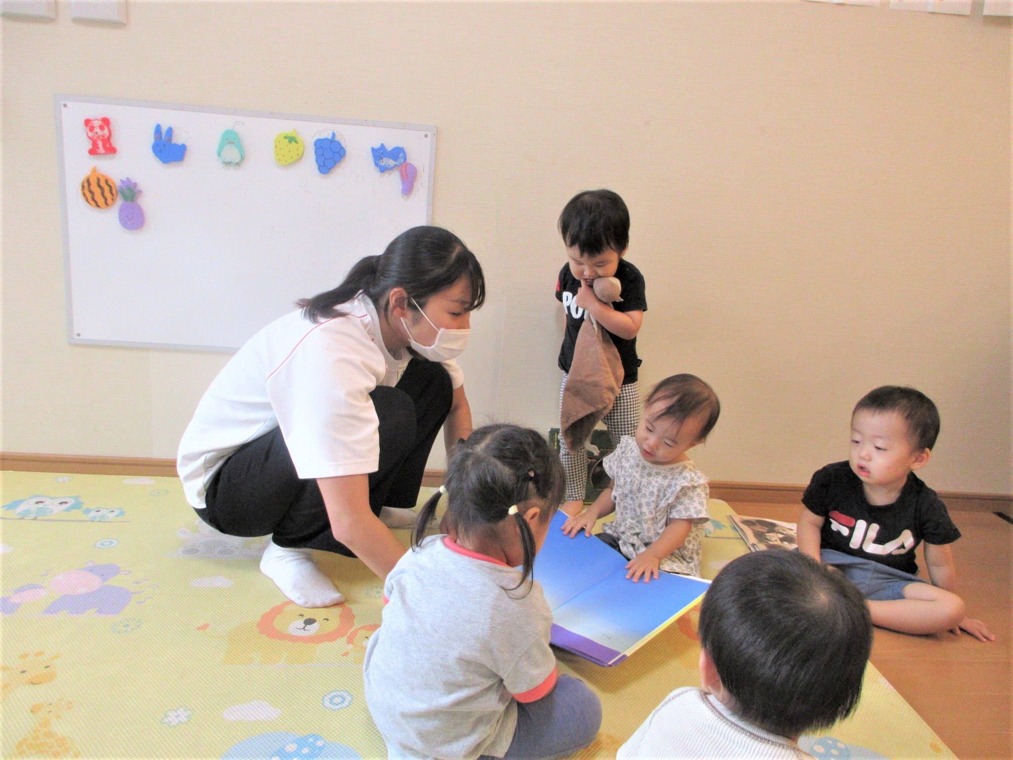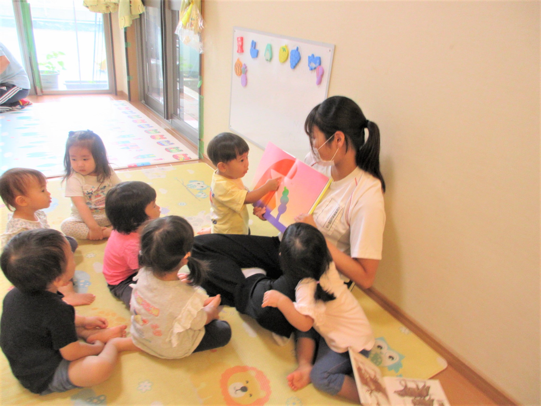 子どもたちの前で、手遊びをしたり、絵本を読んだり、パネルシアターをしたり・・・