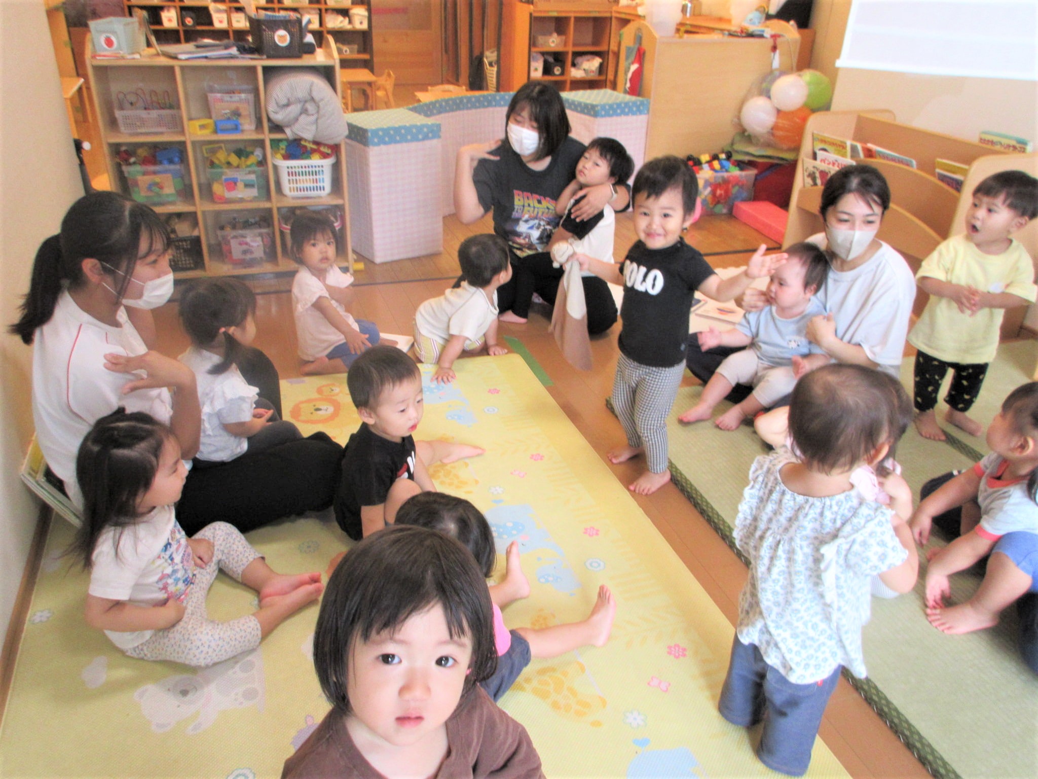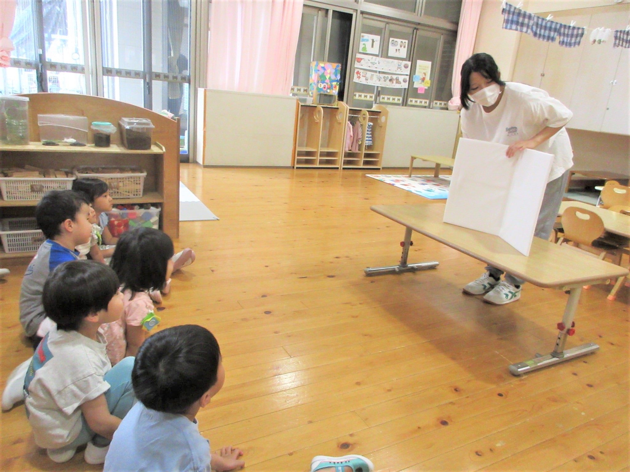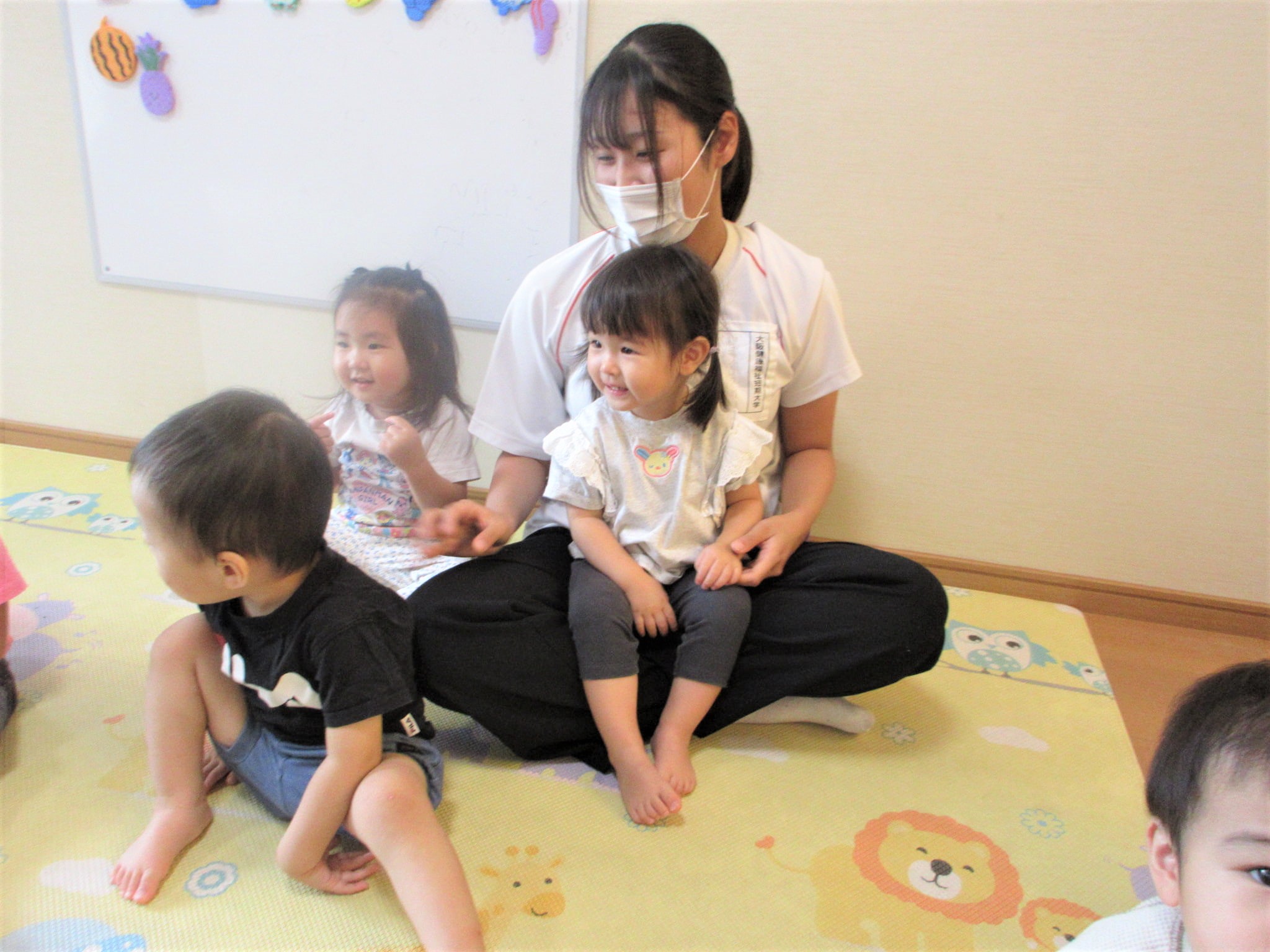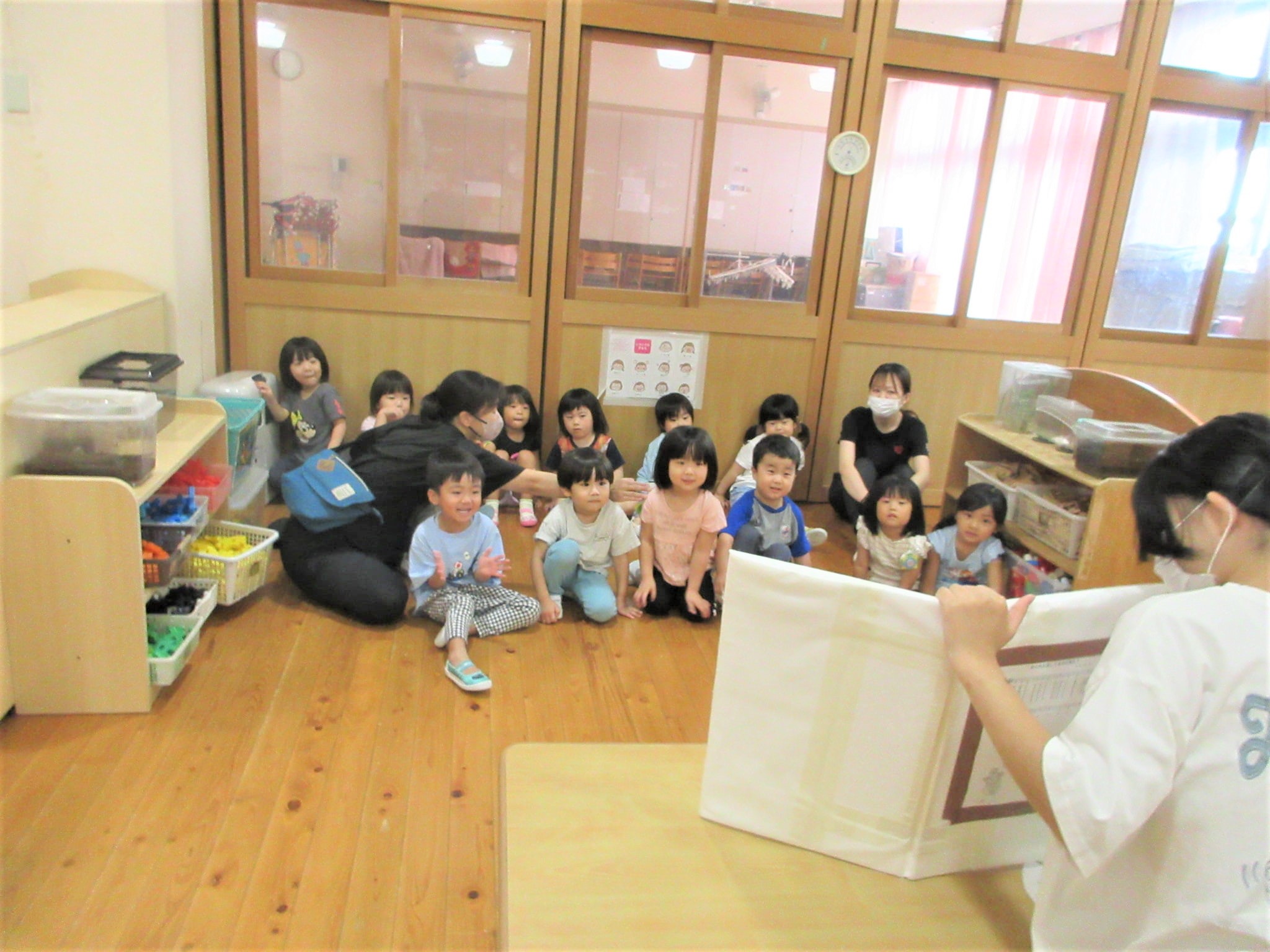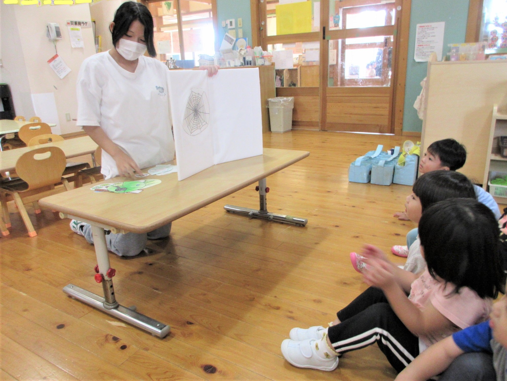 子どもたちの前で、手遊びをしたり、絵本を読んだり、パネルシアターをしたり・・・