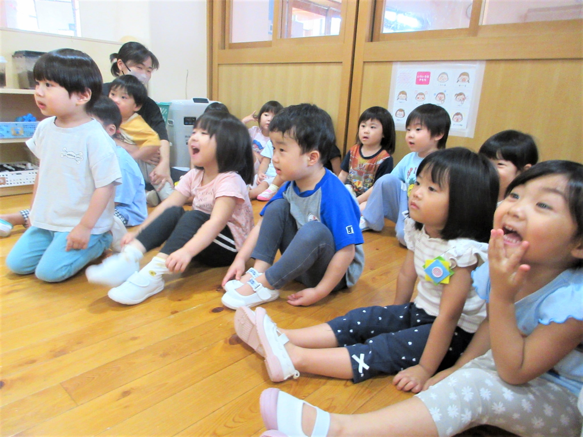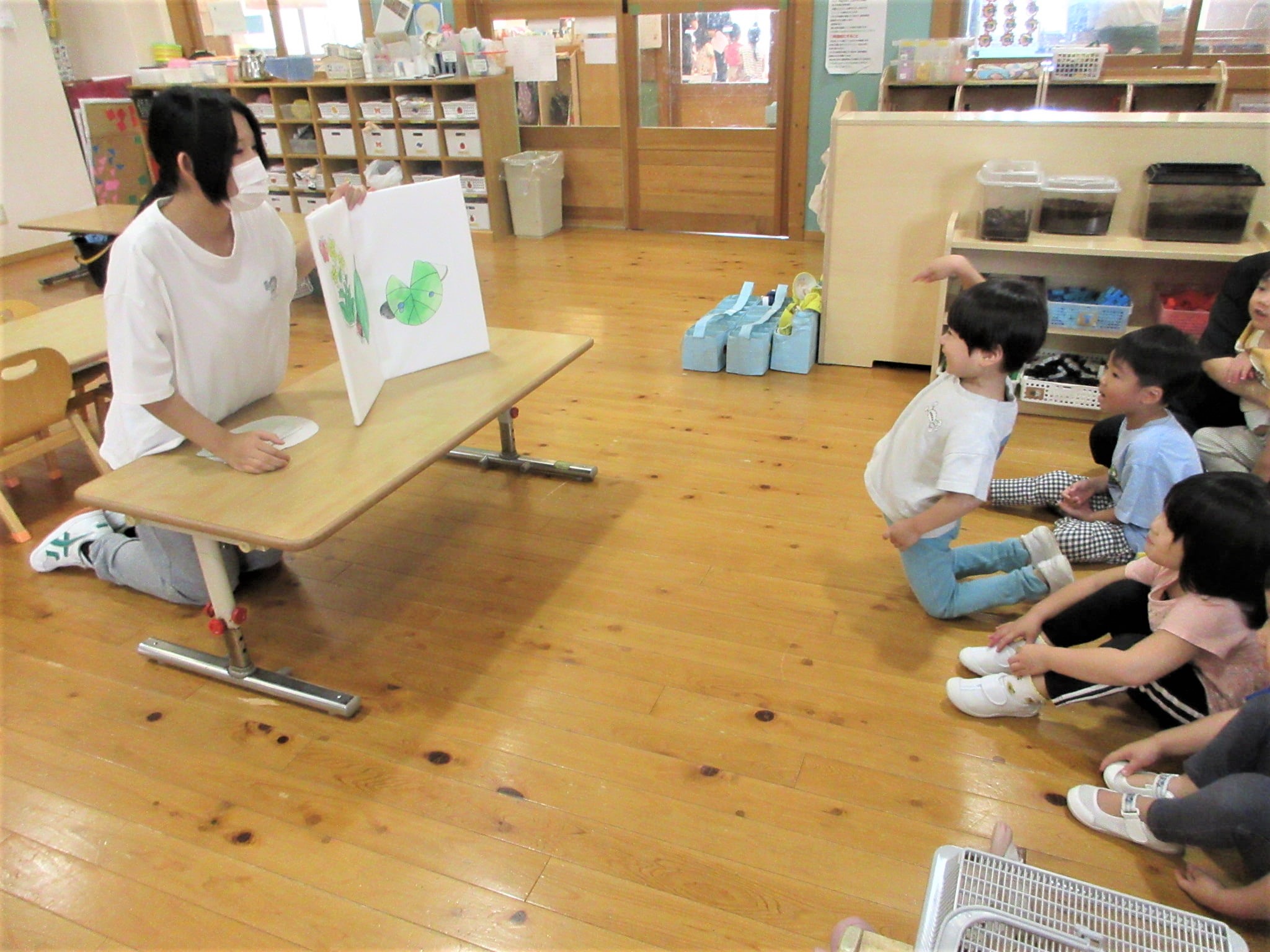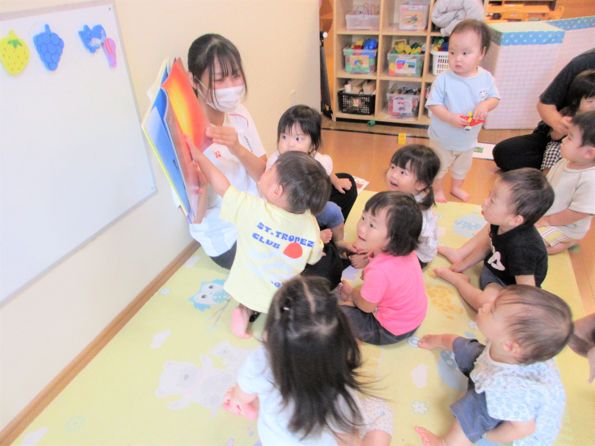 絵本の中の言葉の響きと絵の楽しさに引き込まれる子どもたちです♪