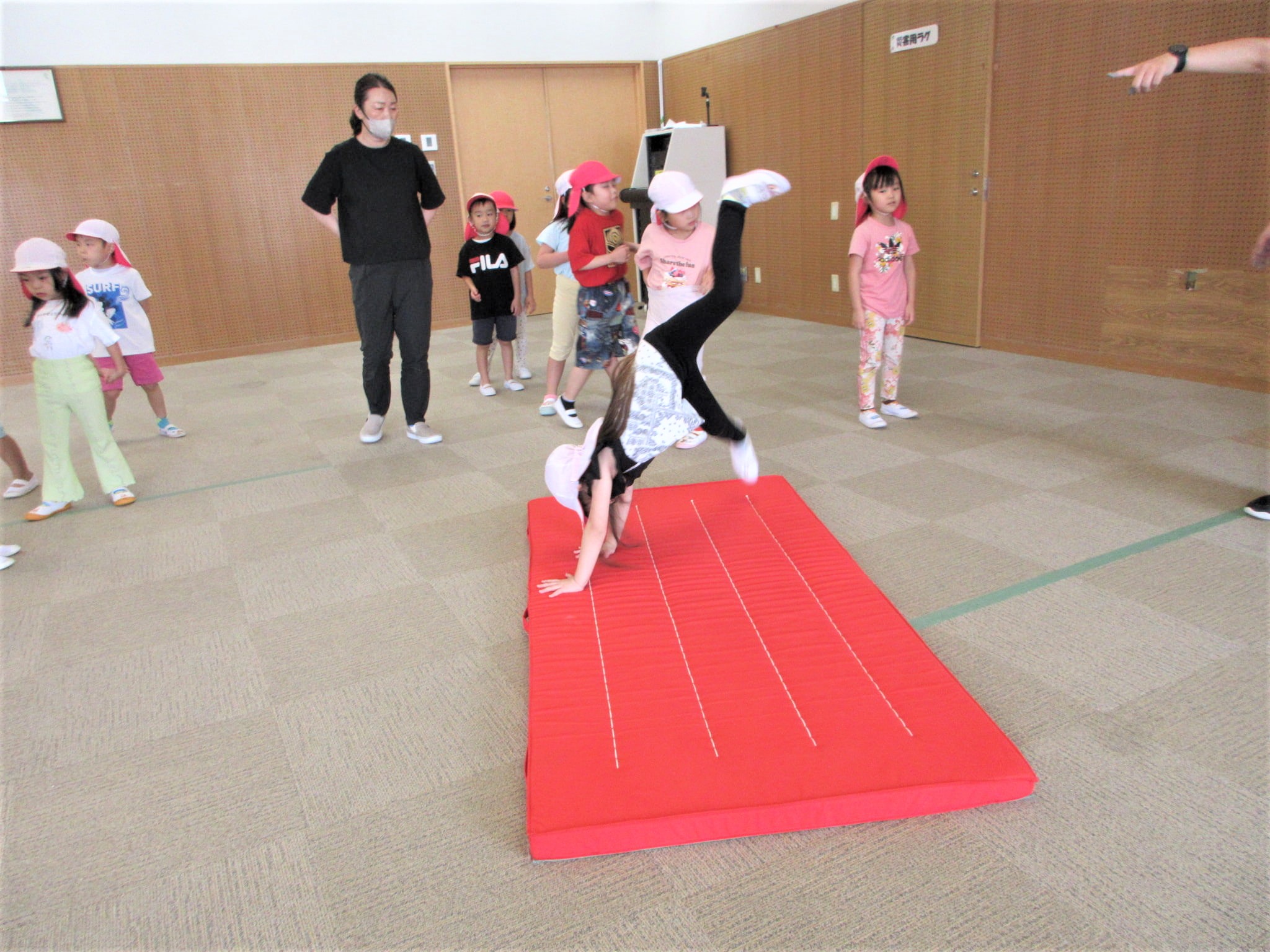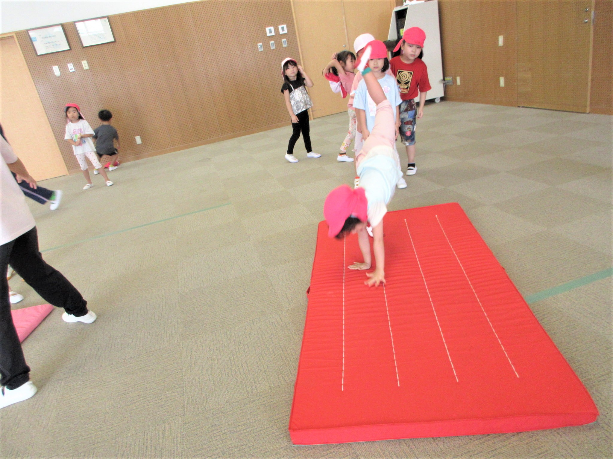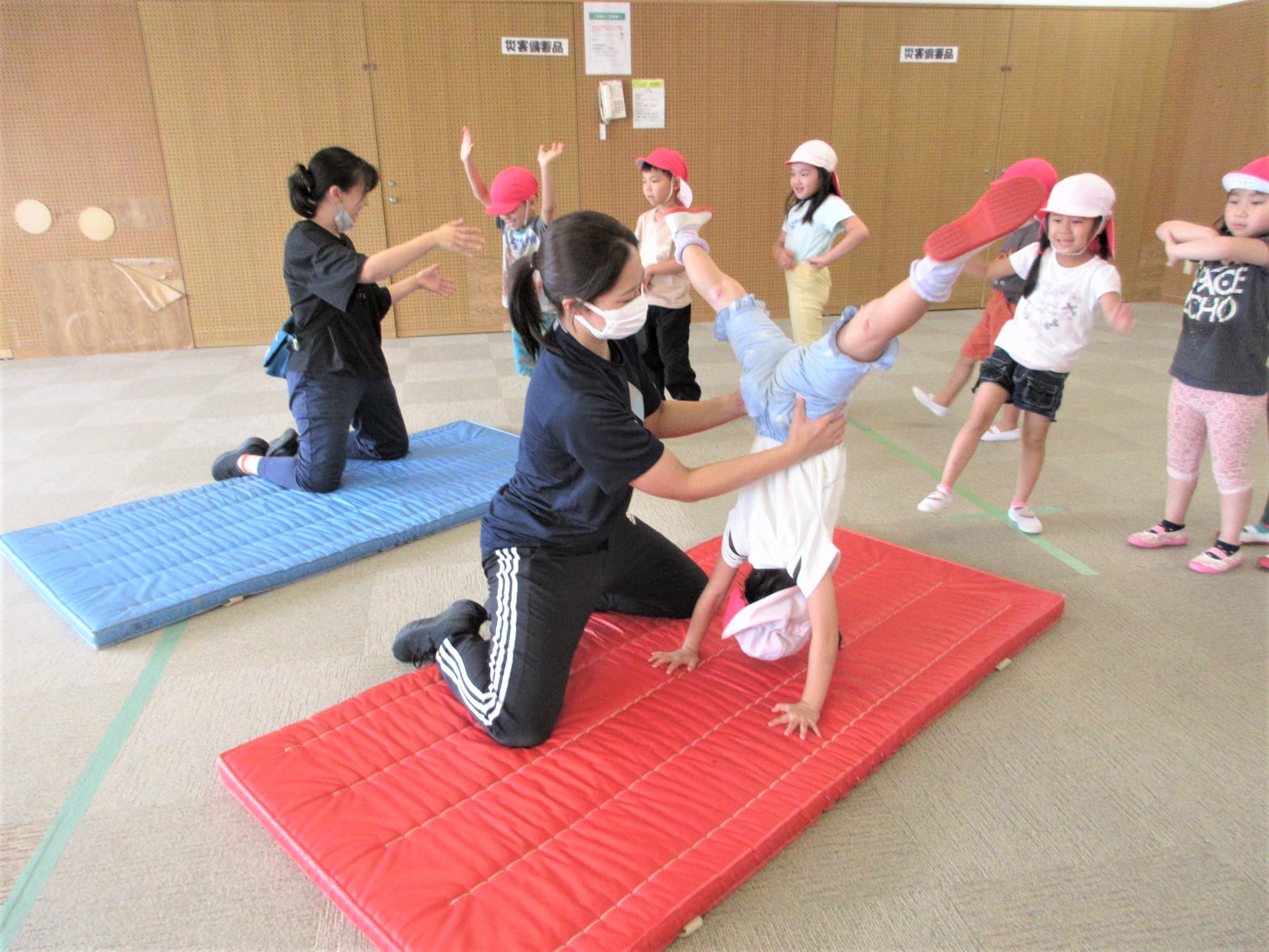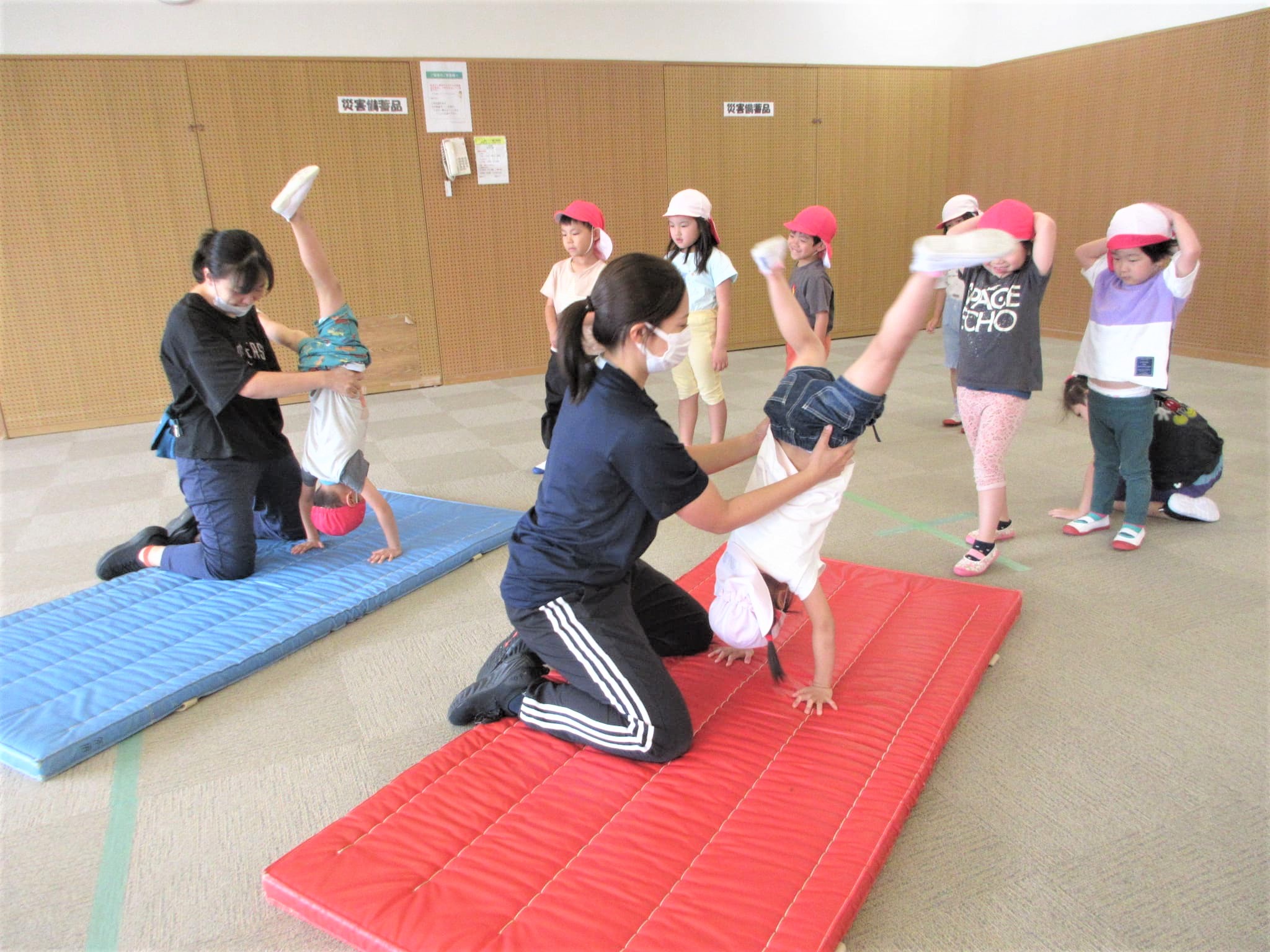 倒立と側転に分かれて取り組んでいました!!