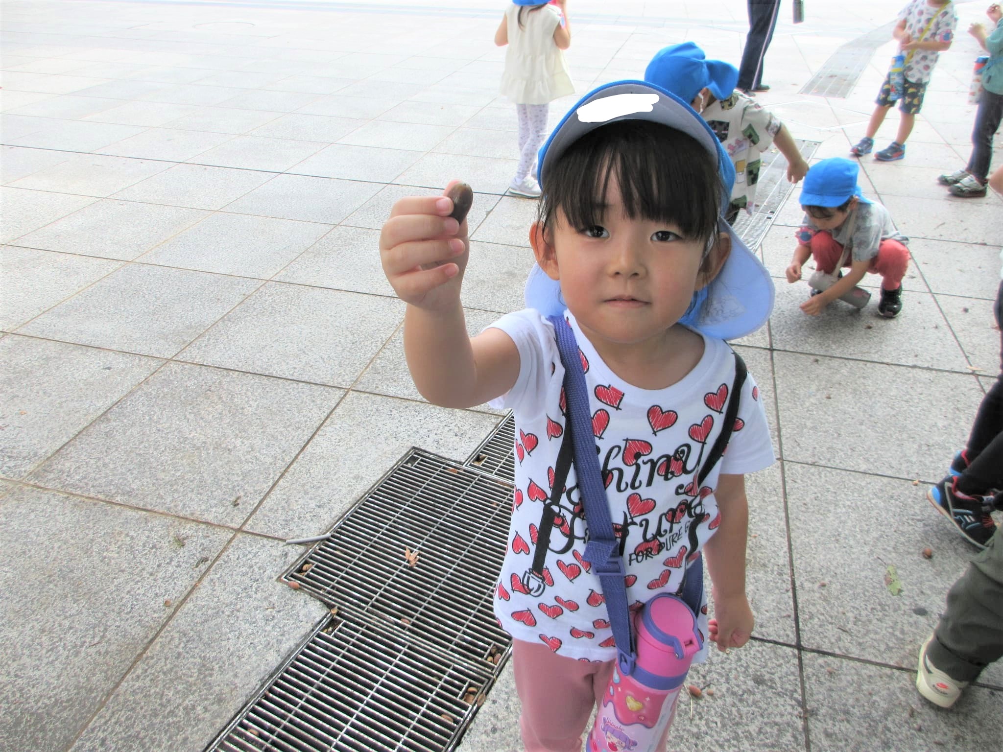 バス乗り場近くで、どんぐりがたくさん落ちているのを発見!!
