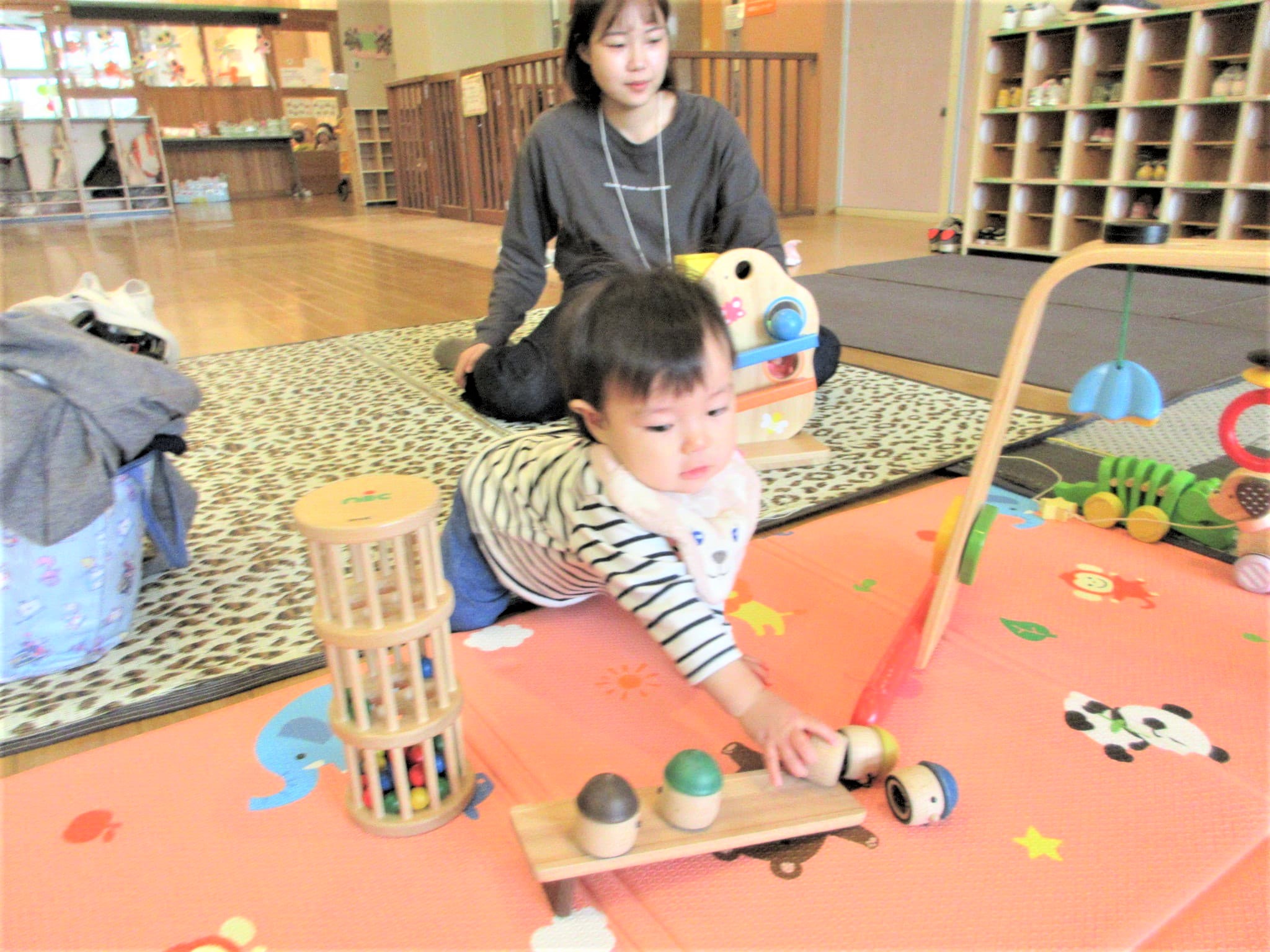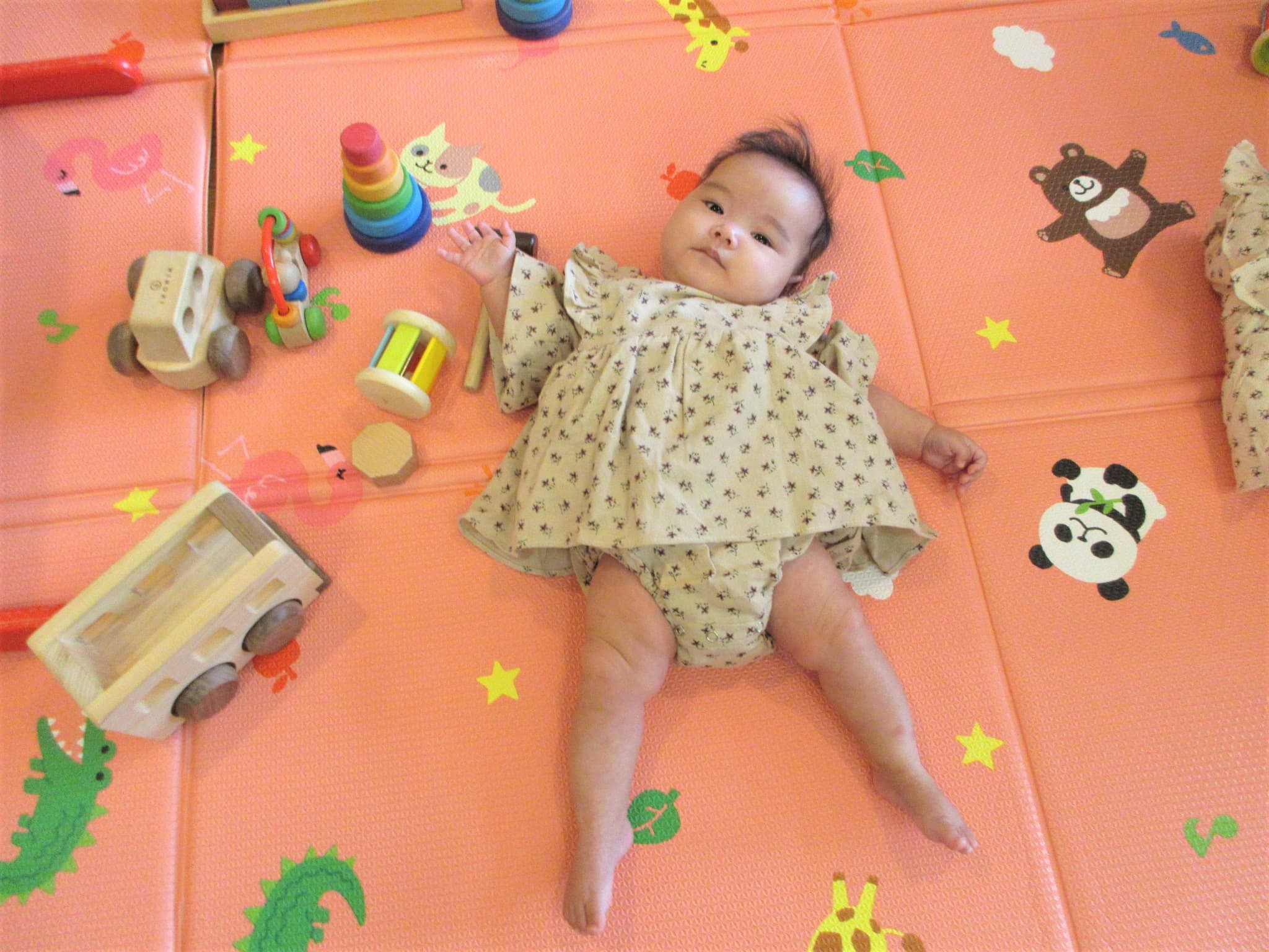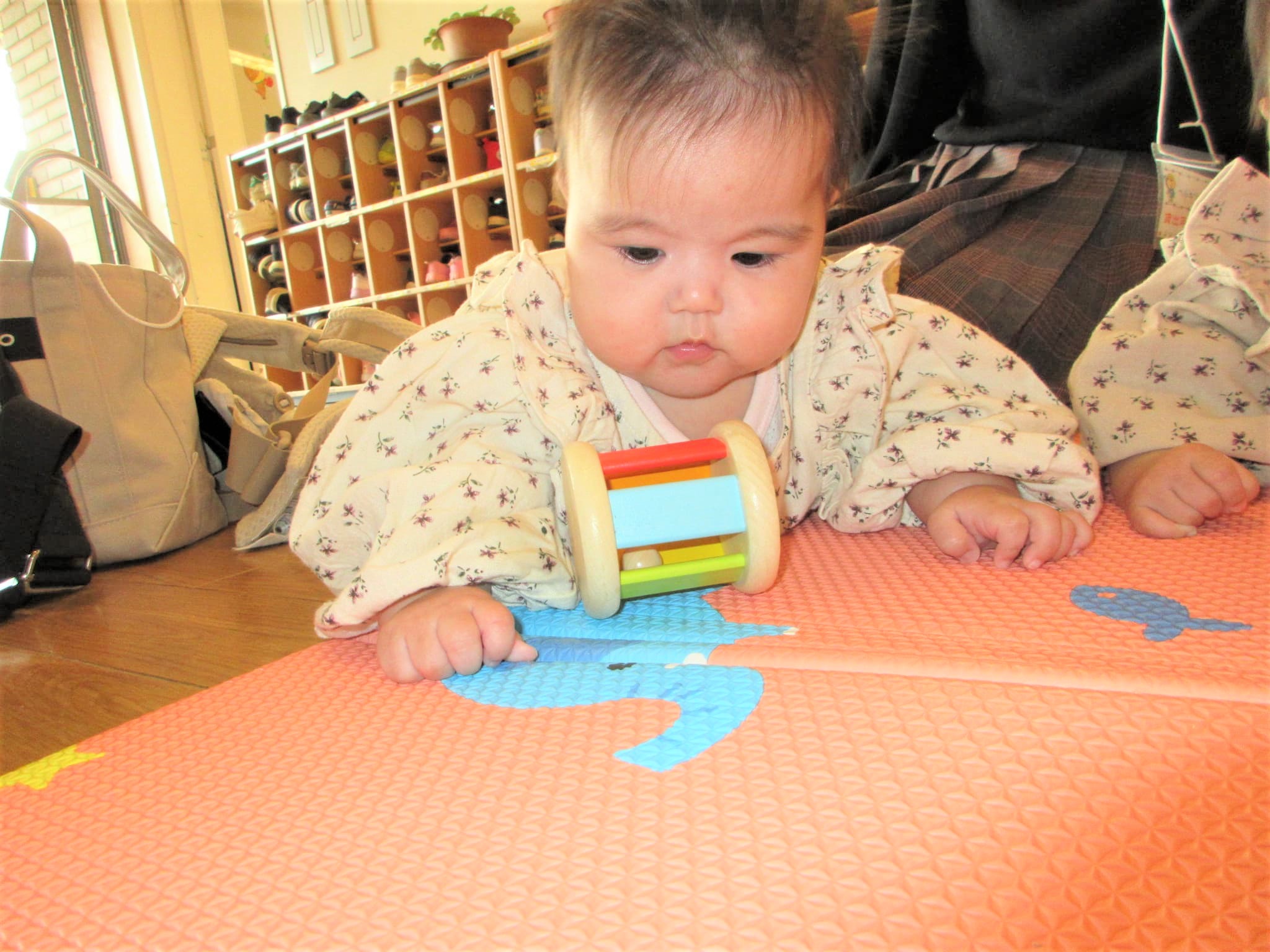 今日は、自ら寝返りをして転がる玩具を目で追って遊ぶ姿も・・・♪