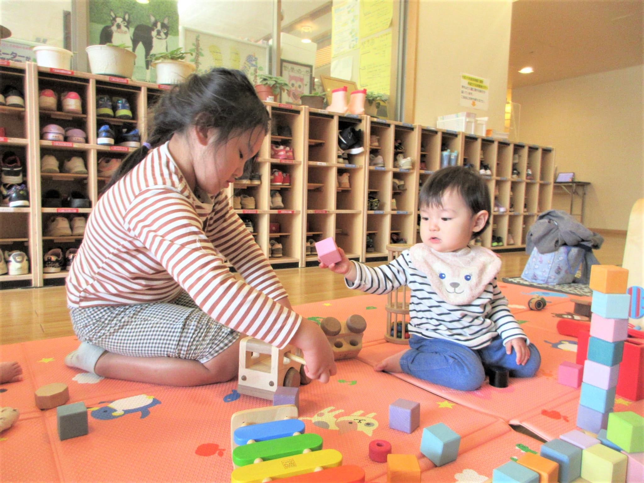7月の園庭開放で初めて来てくれた双子の姉妹(Iちゃん・Uちゃん)