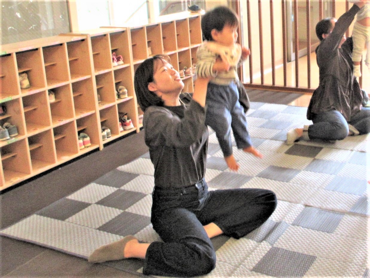 たろうに勝ったら・・・“たかい たかい”をして、子どもと喜び合い