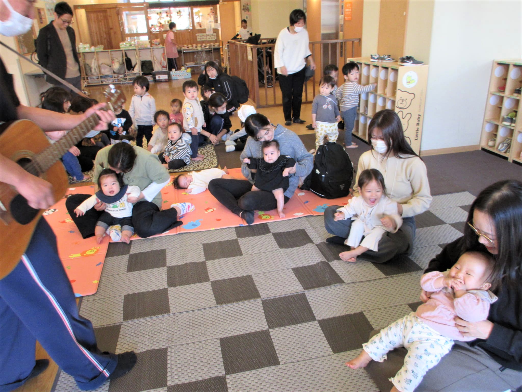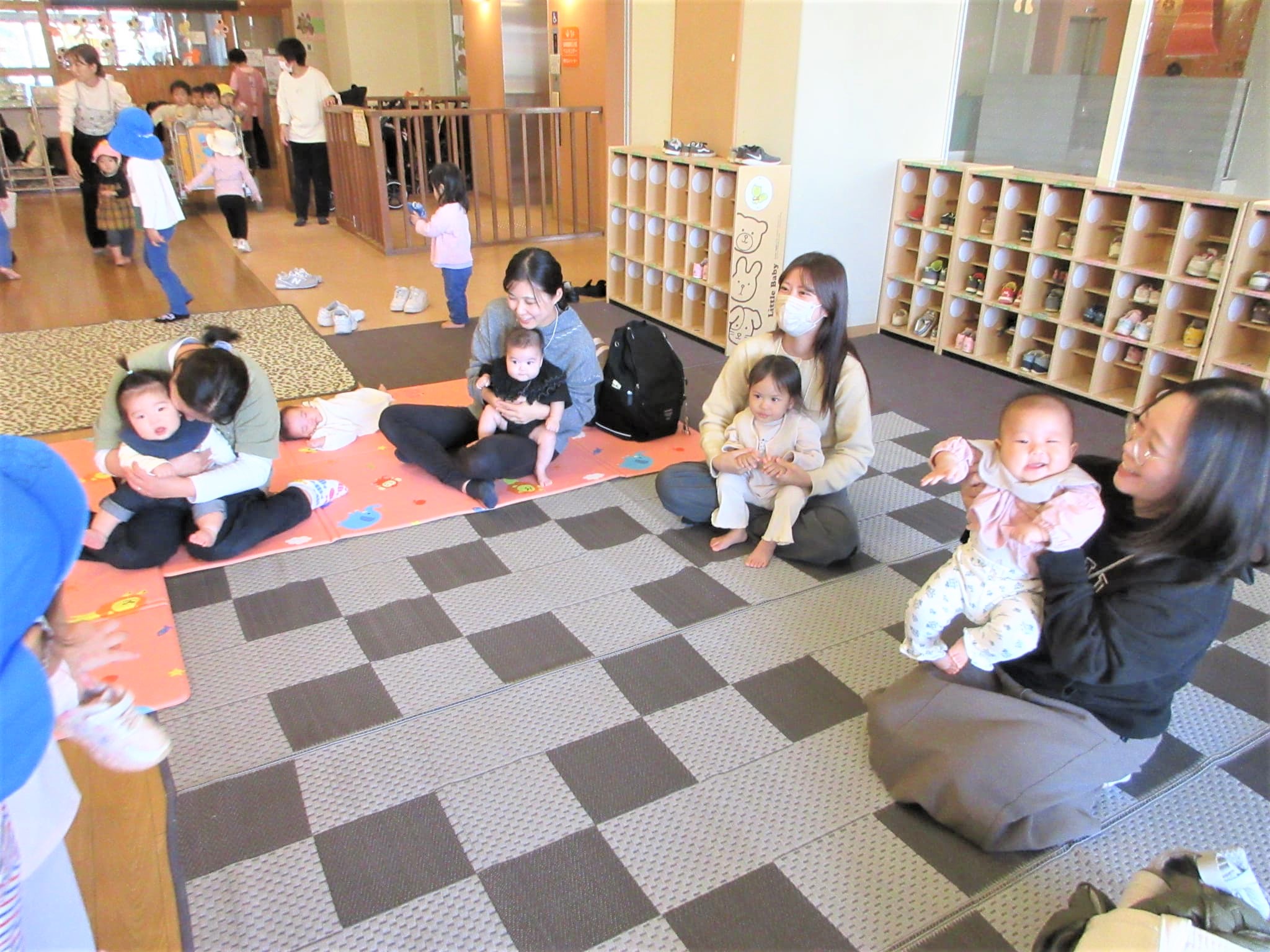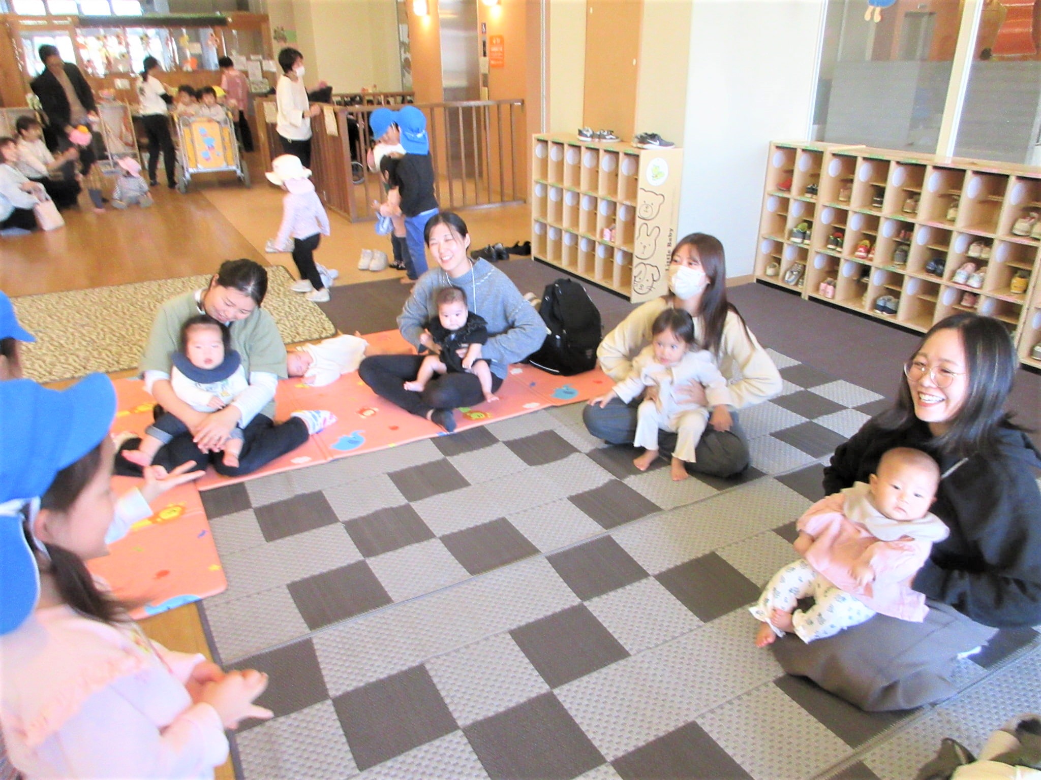 散歩帰りのりす組も加わって、にぎやかにふれあい遊びを楽しむことができました♪