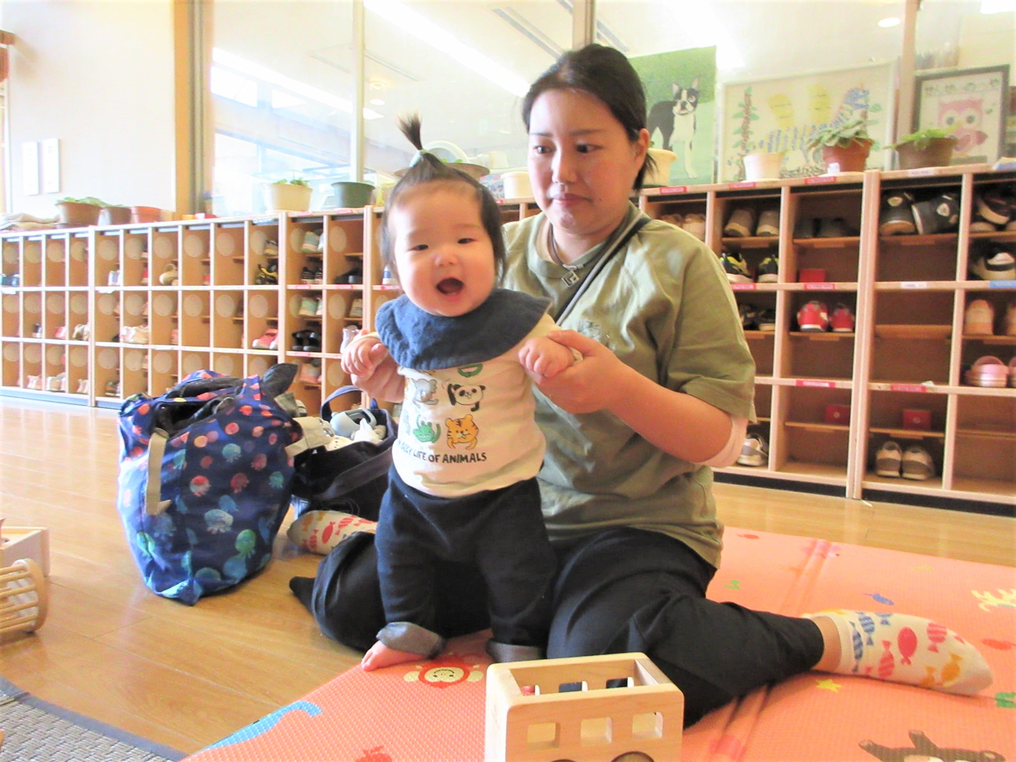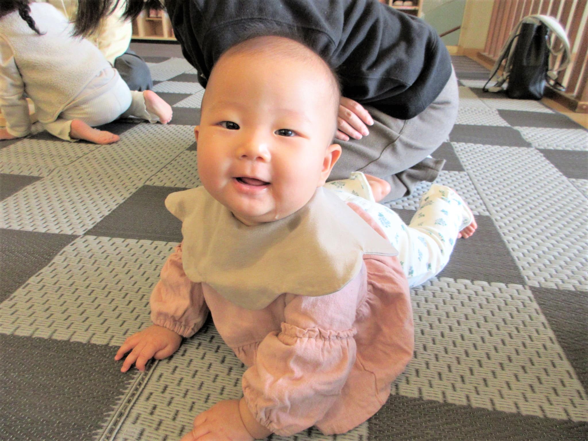 寝返りやずりばい・つかまり立ち…お母さんを安心基地にしながら「自分でやってみよう!」とする姿など