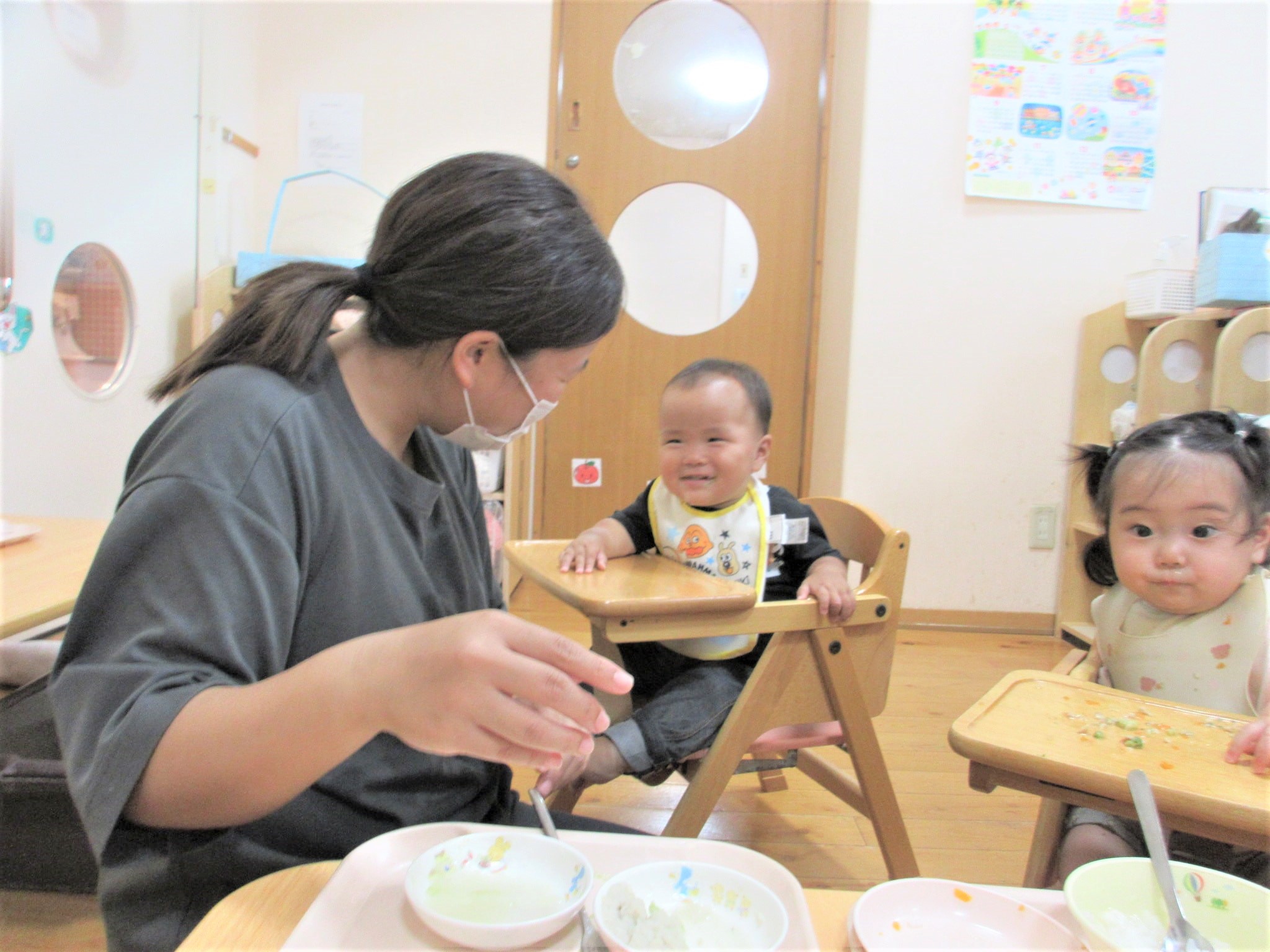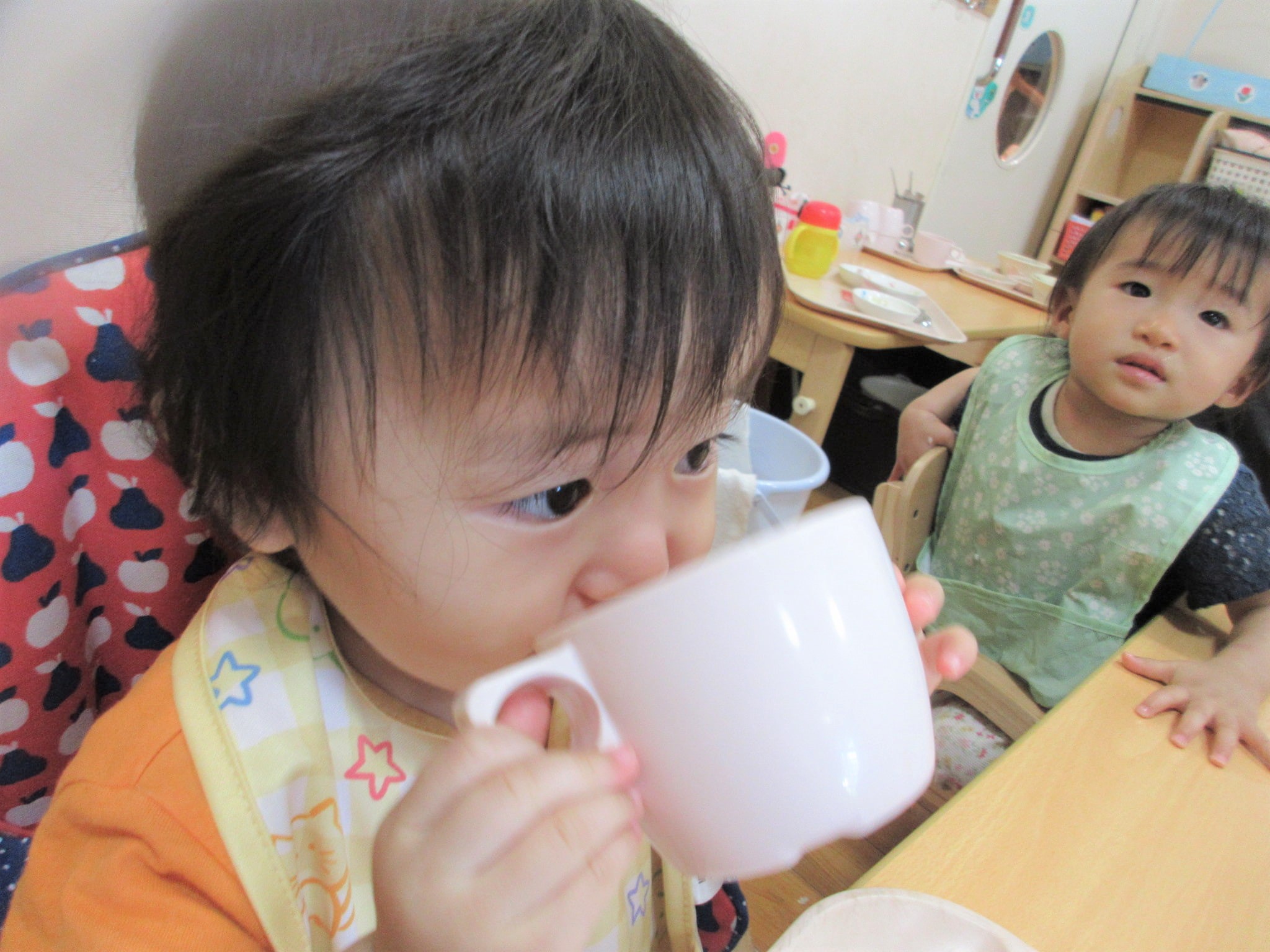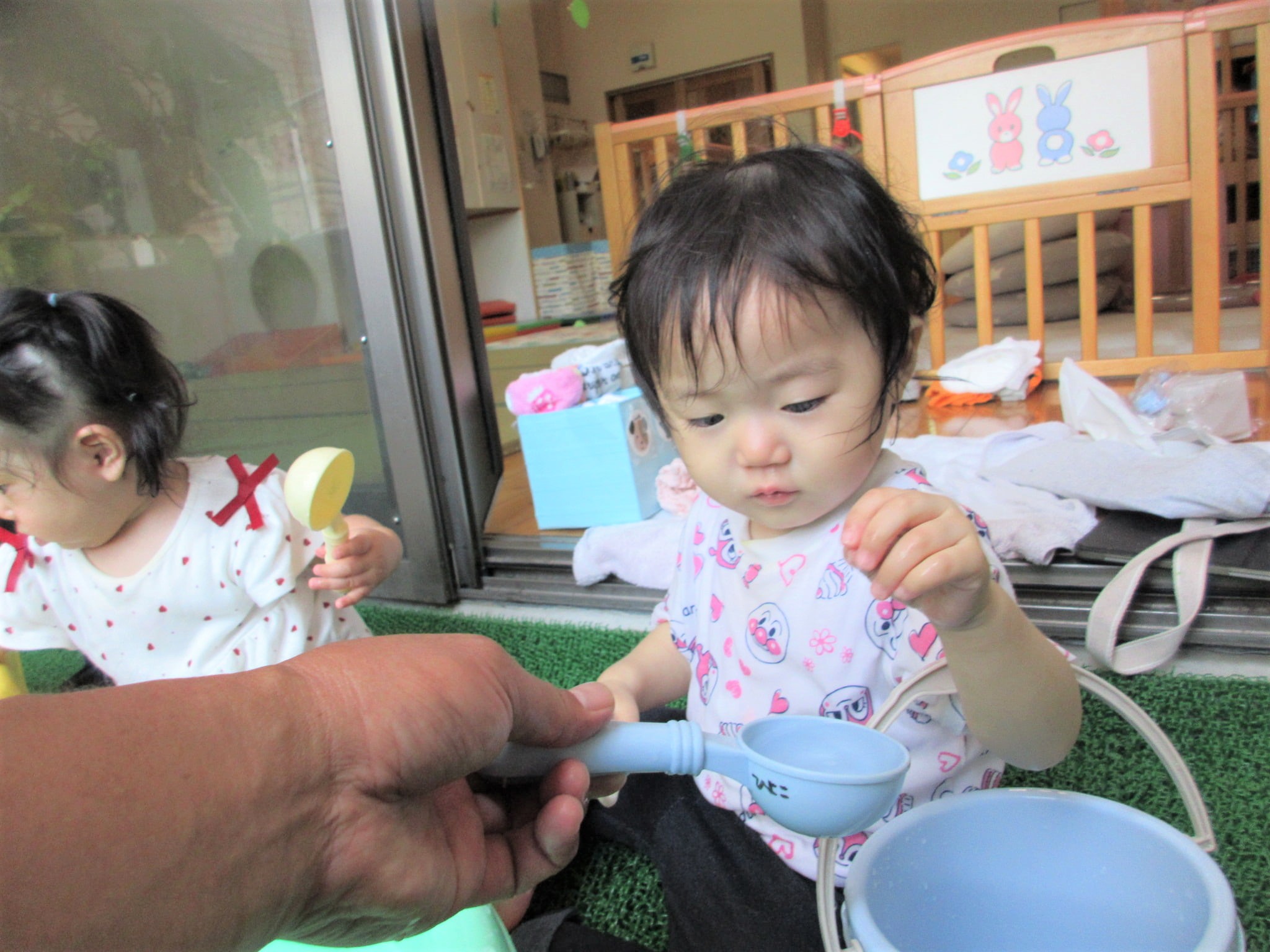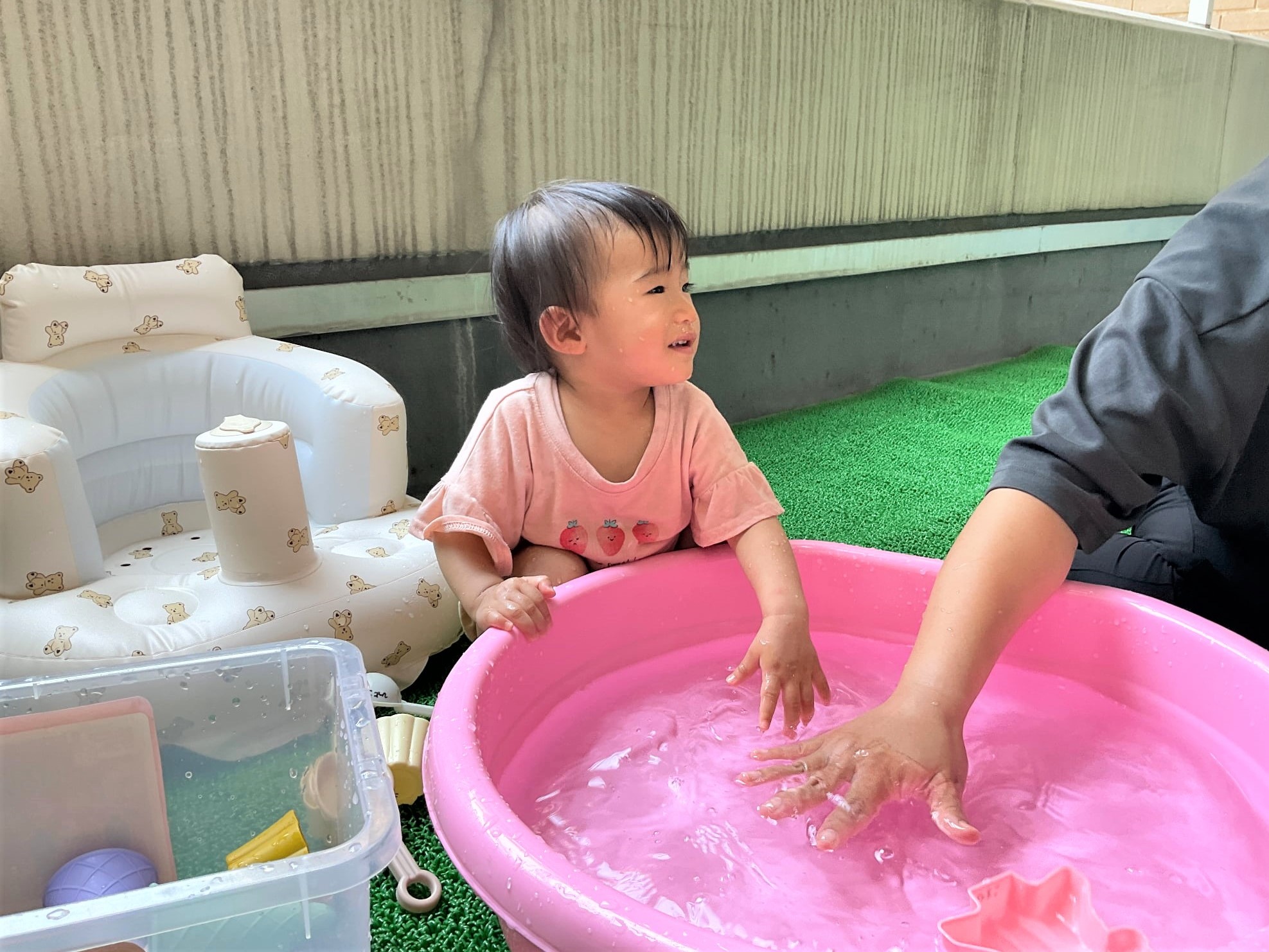 そこから、ひよこ組の部屋をふと見ると、水遊びをしていたので