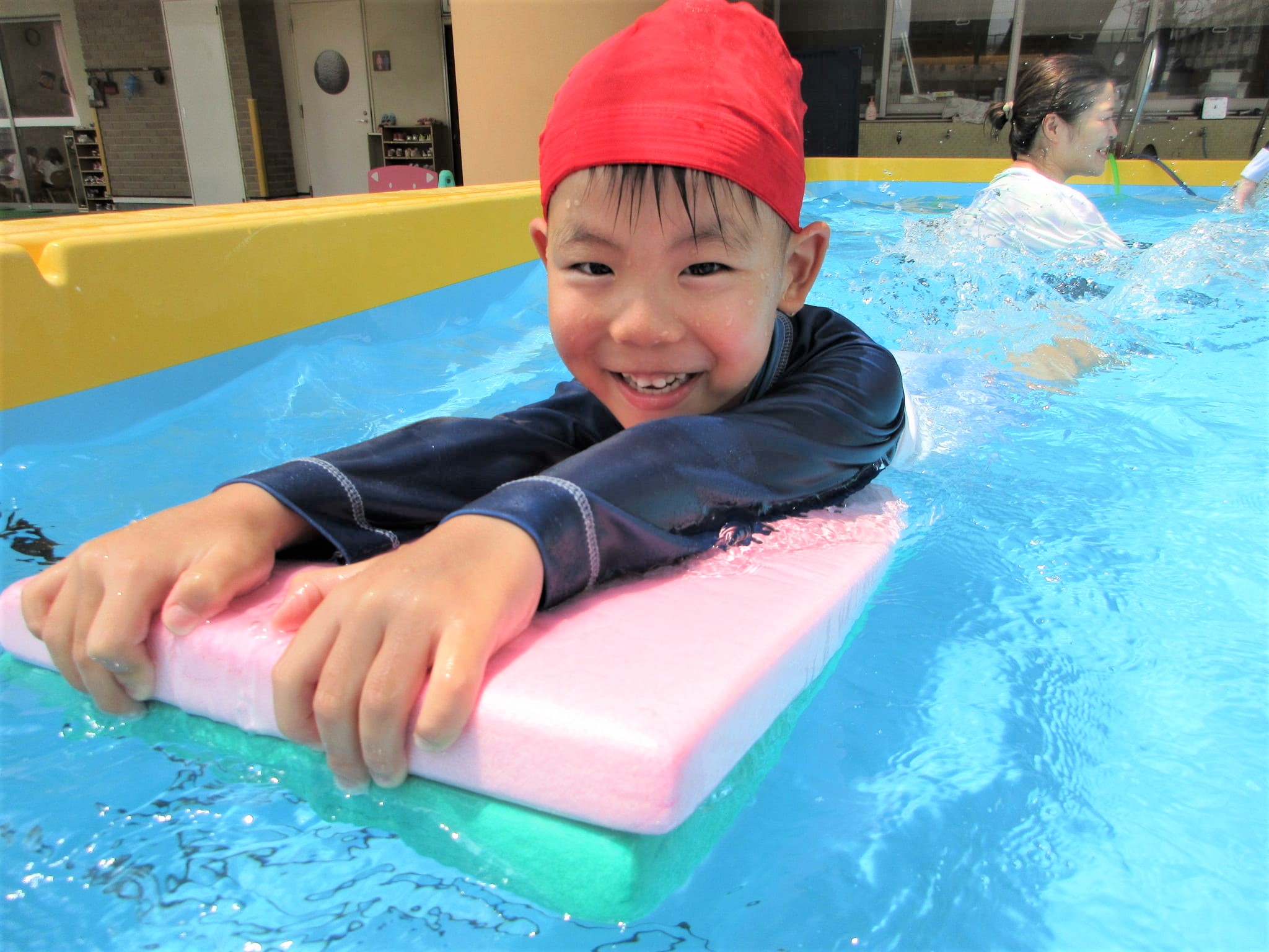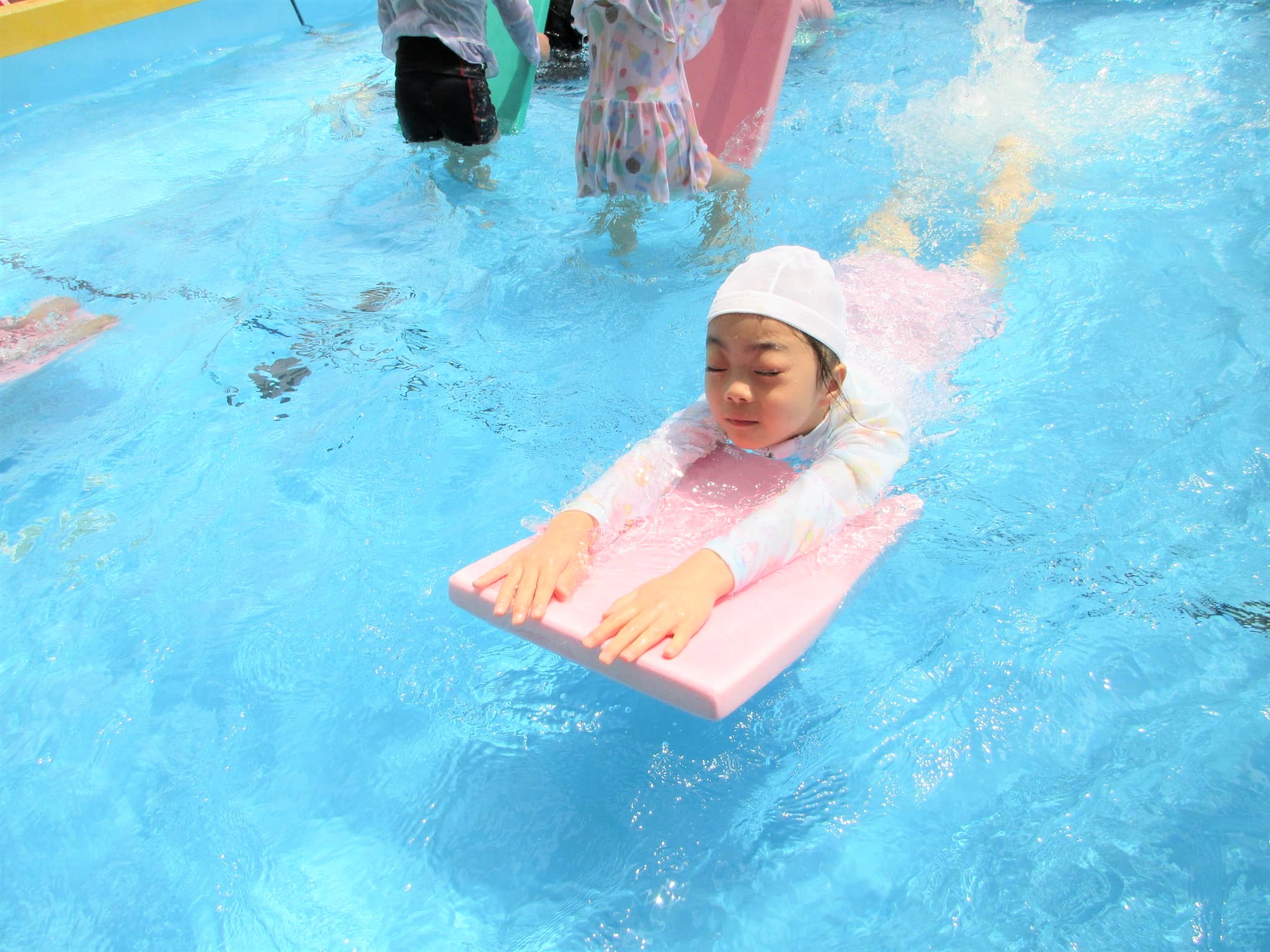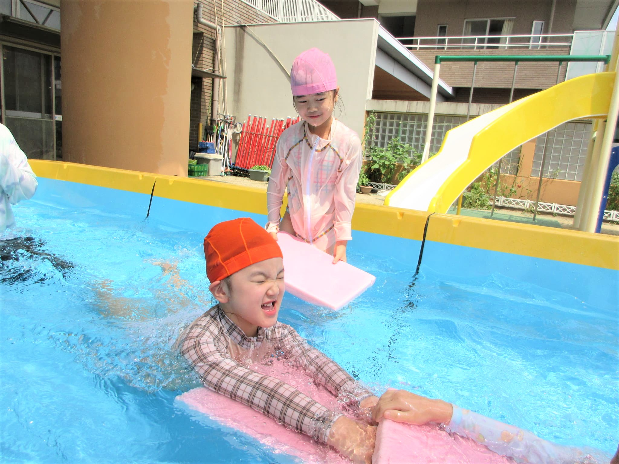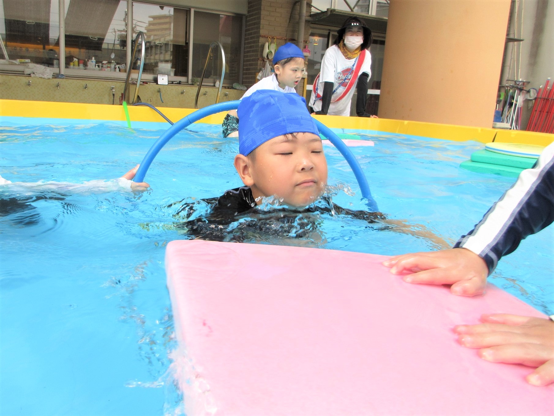ビート板を使って、浮く感覚やバタ足を楽しんでいたり・・・