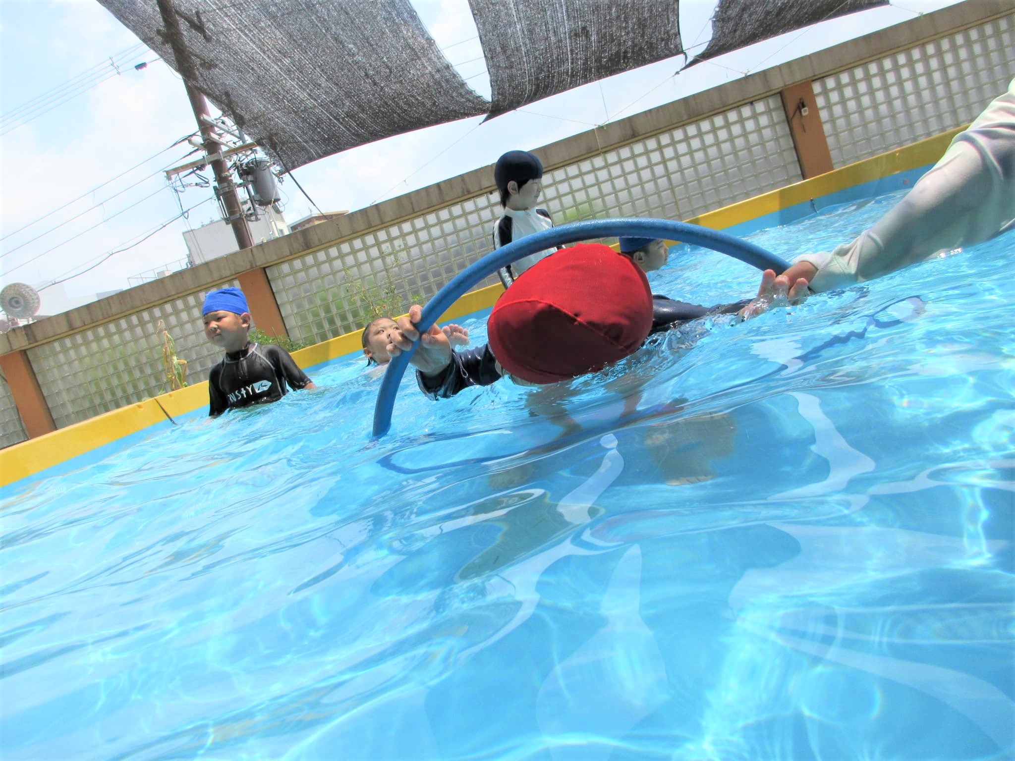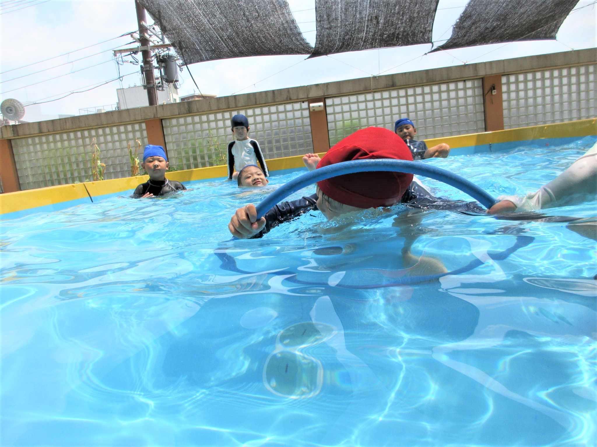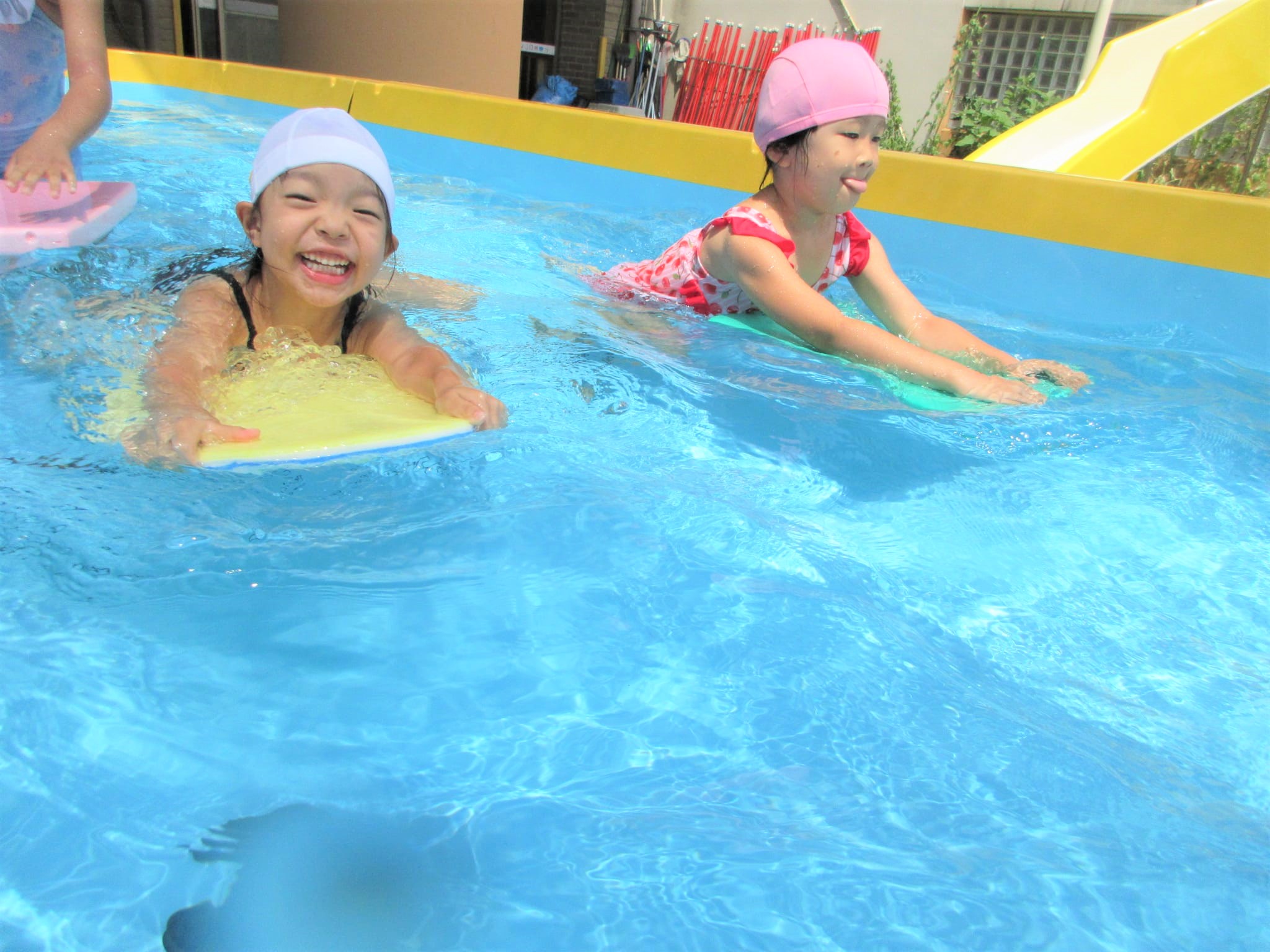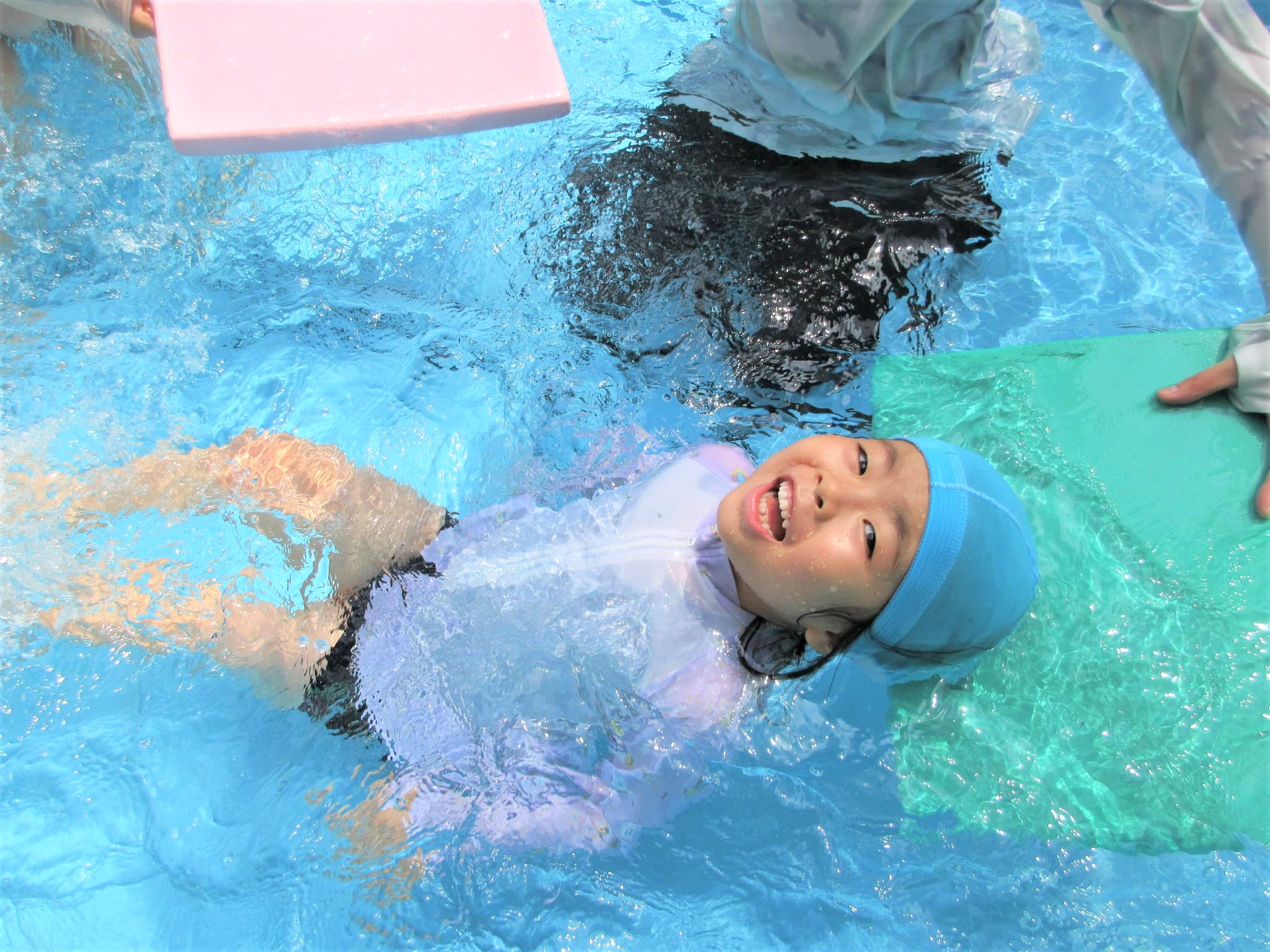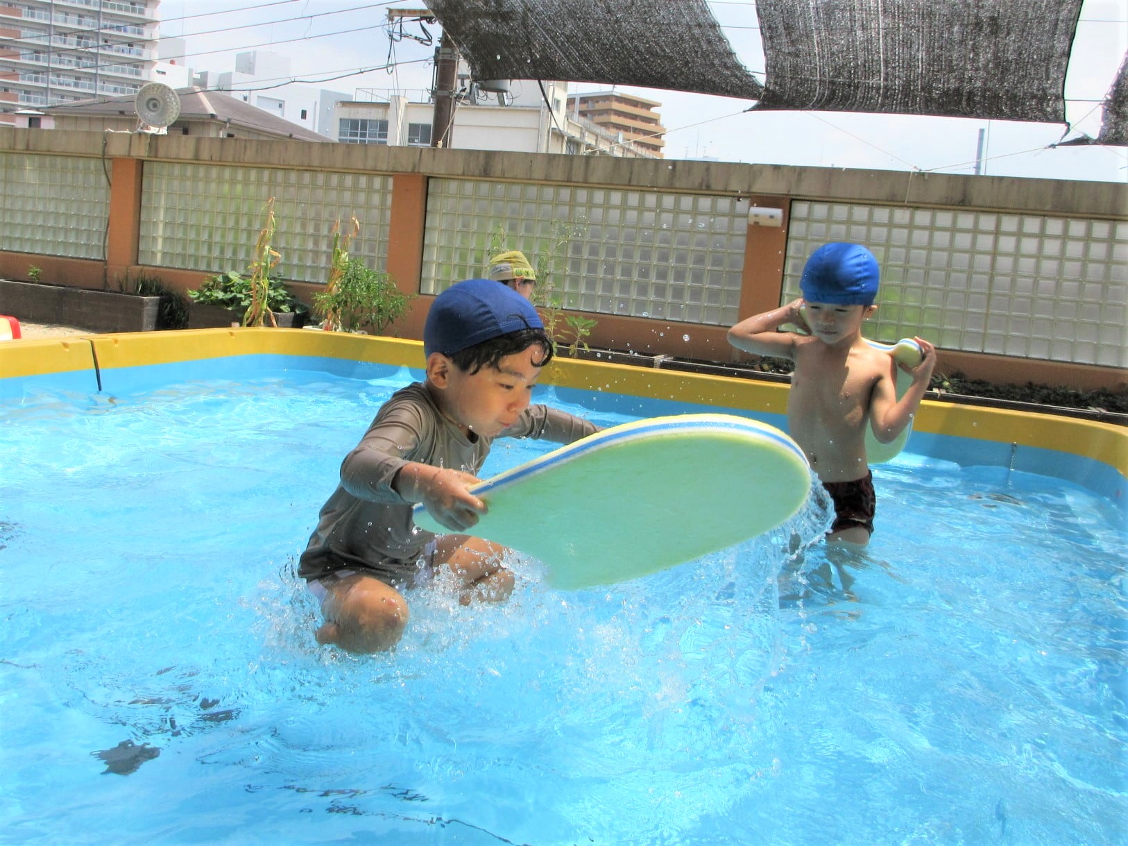 ビート板を使って、浮く感覚やバタ足を楽しんでいたり・・・