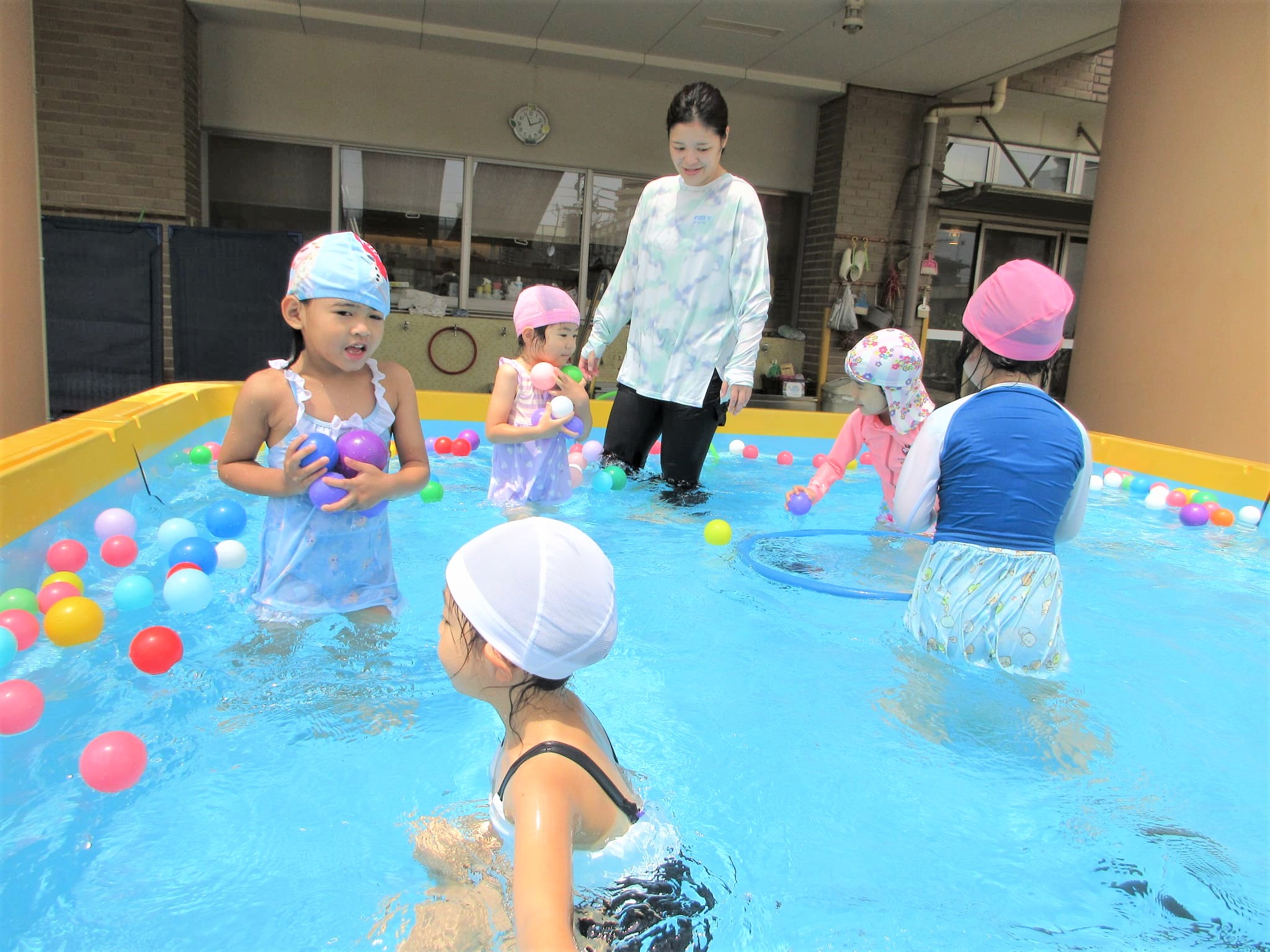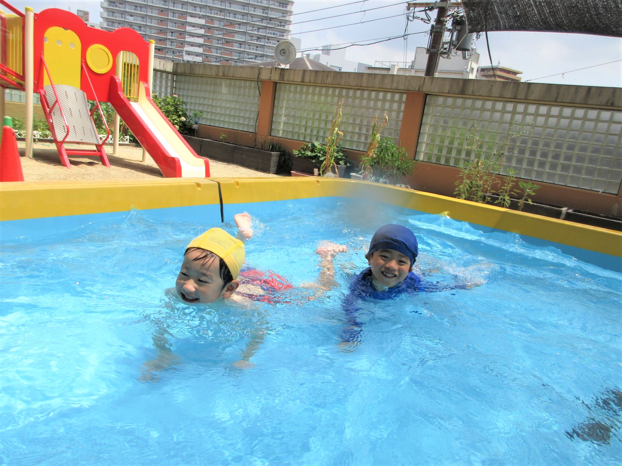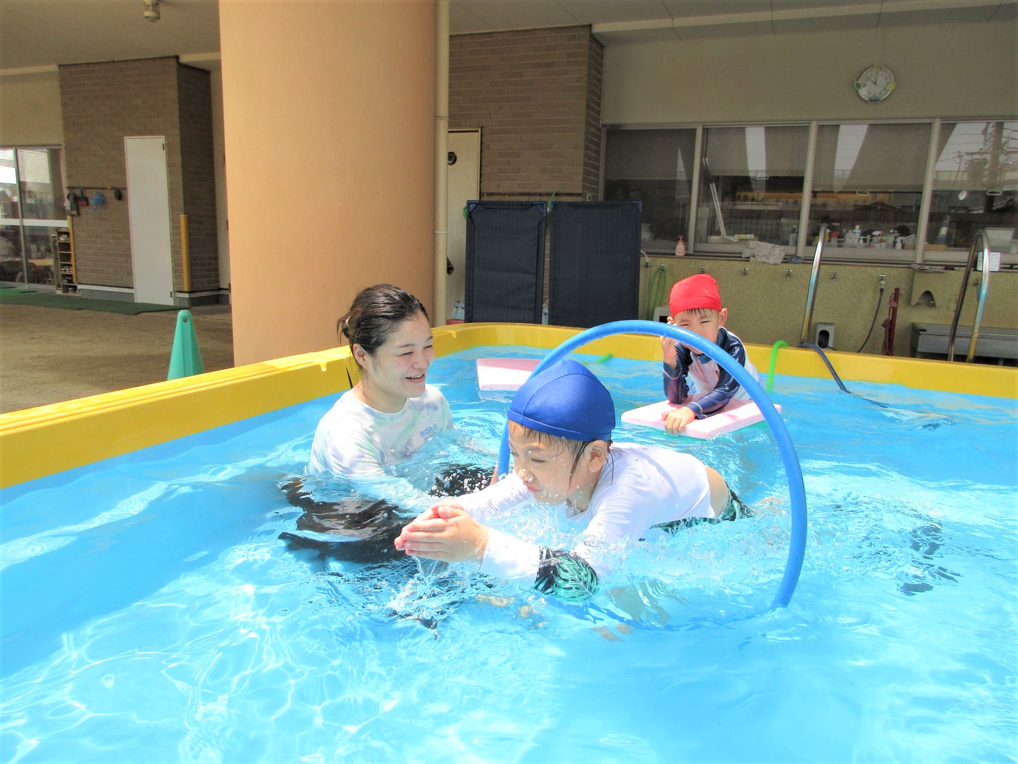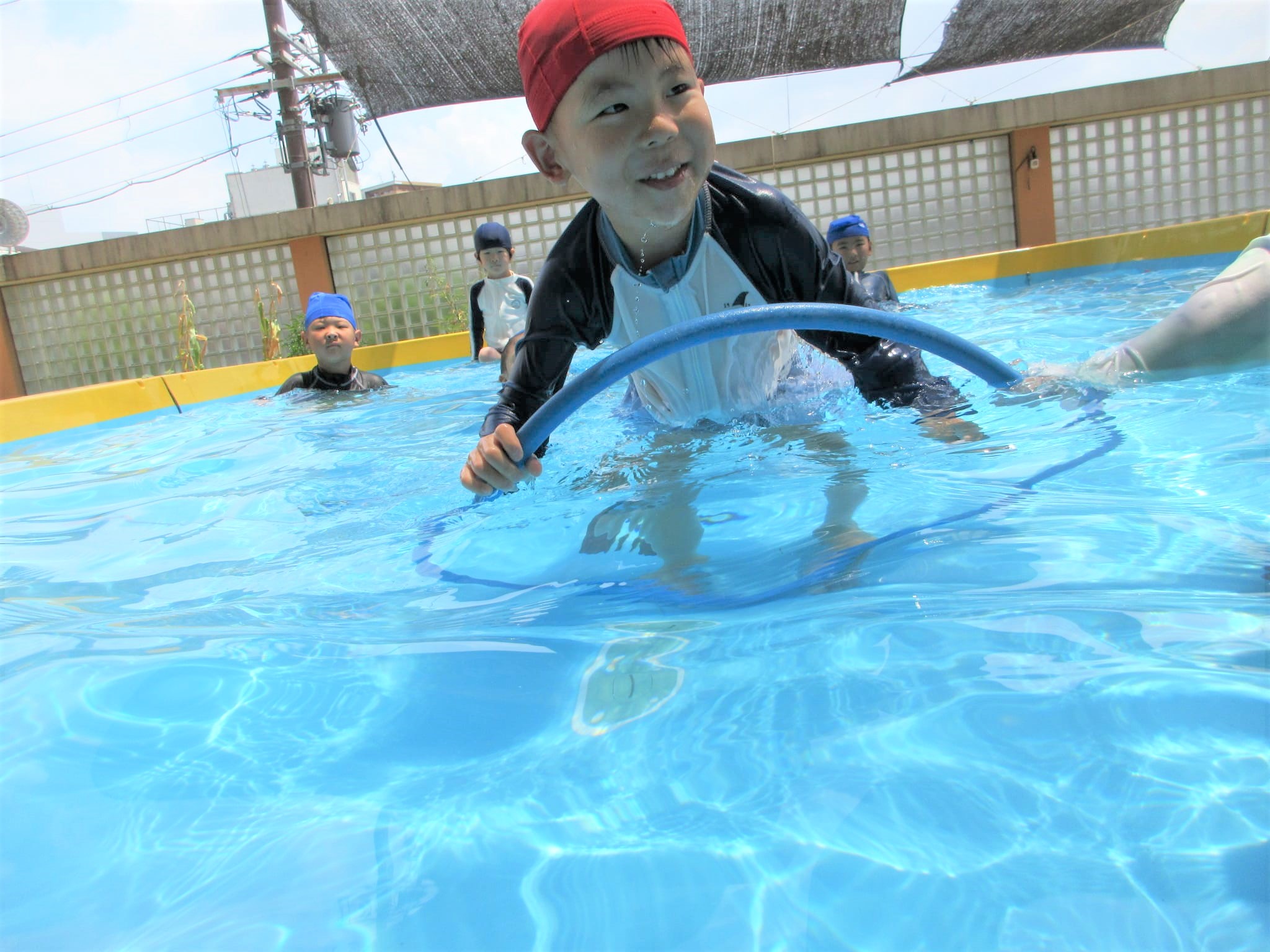 ビート板を使って、浮く感覚やバタ足を楽しんでいたり・・・