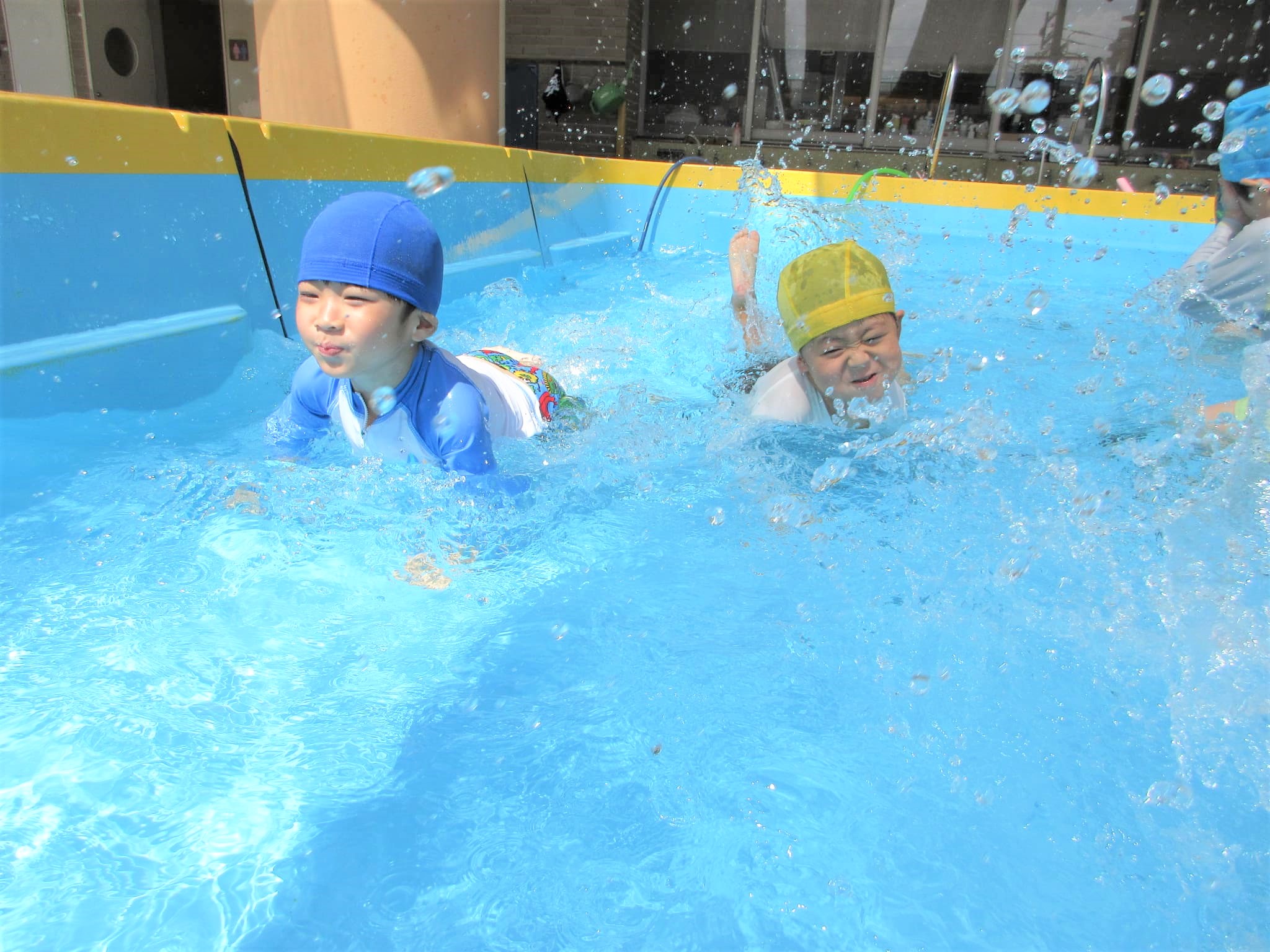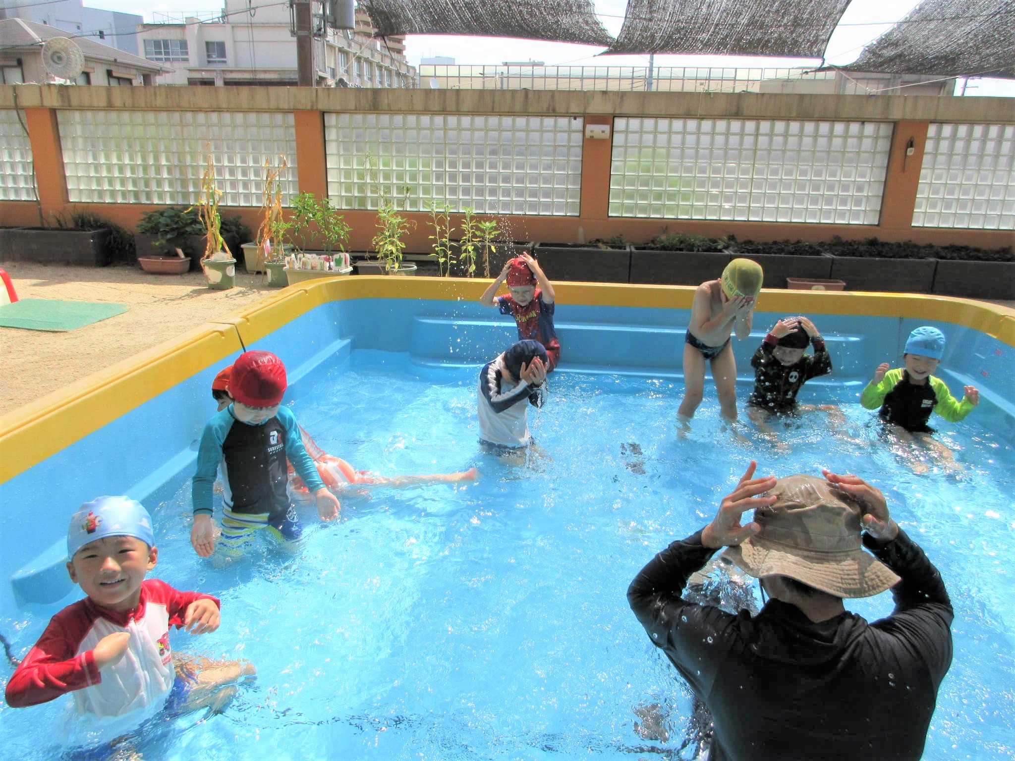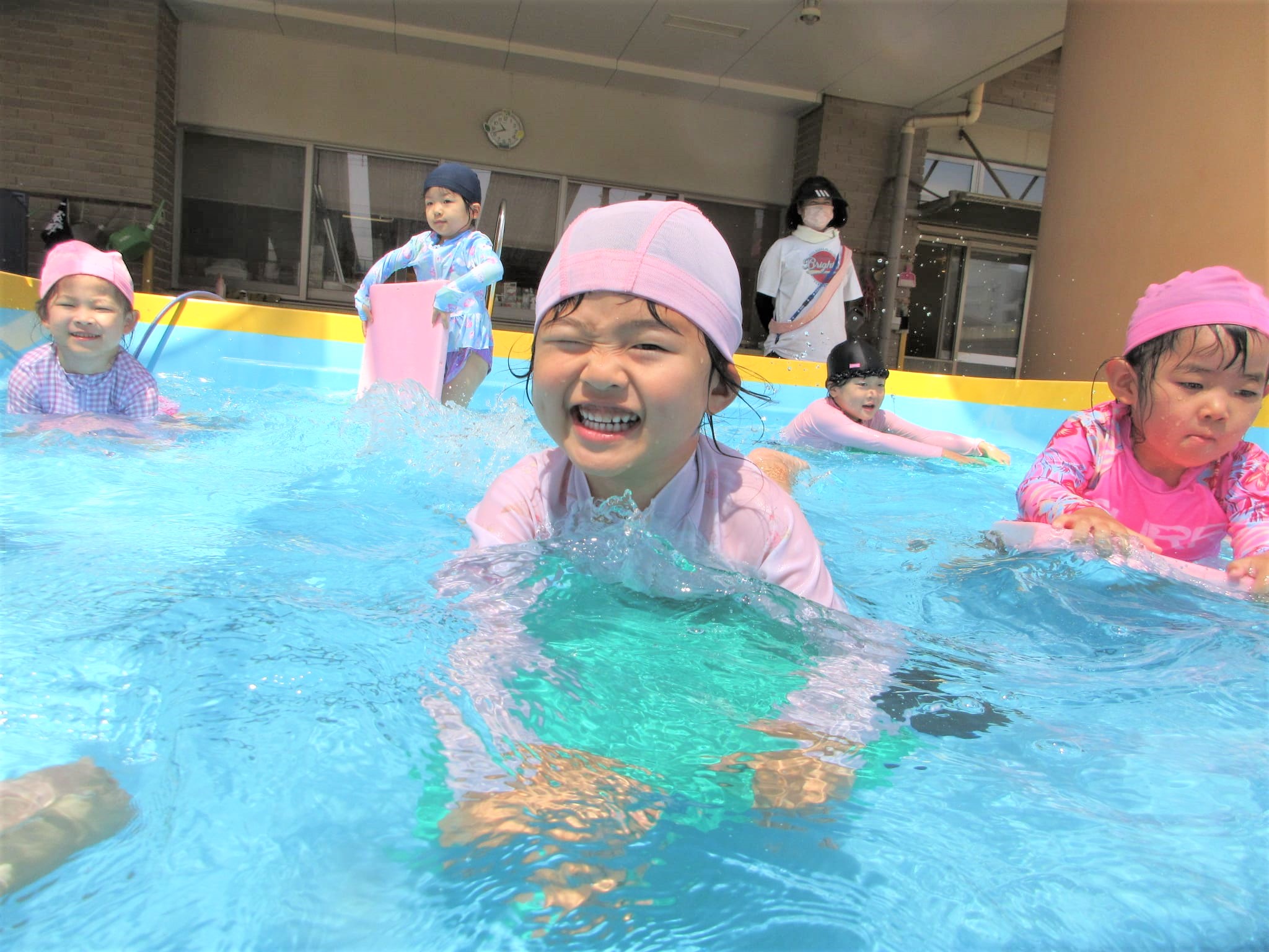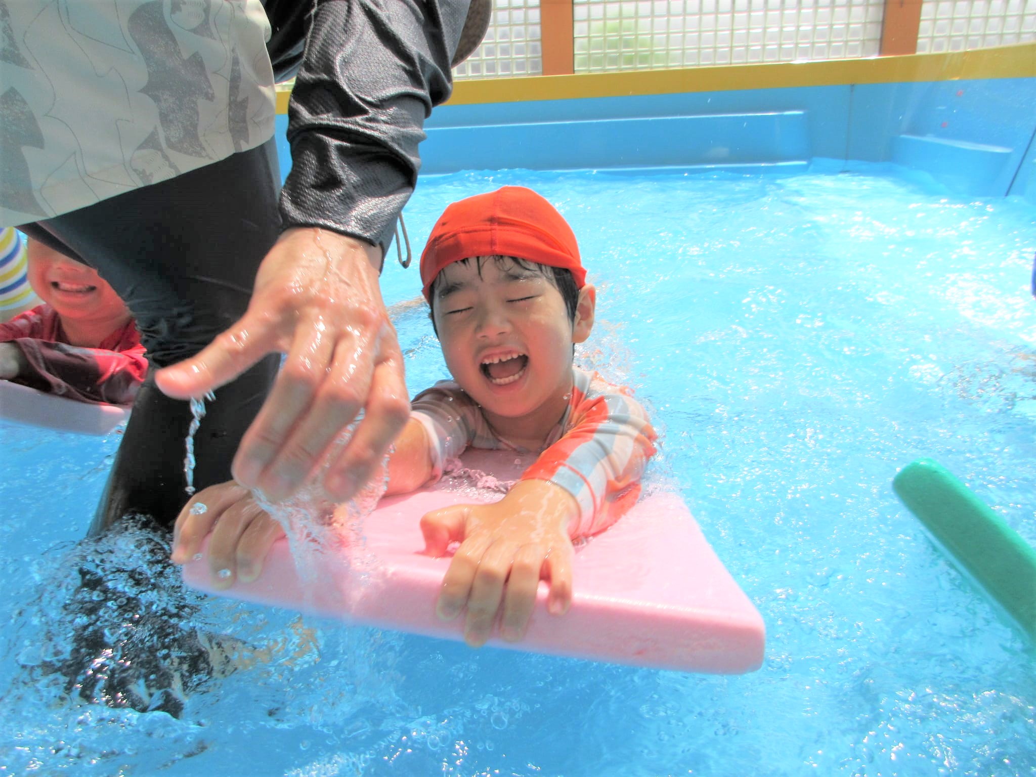 最初、顔に水が掛かるのが嫌だった子どもも、少しずつ慣れてきたようです♪