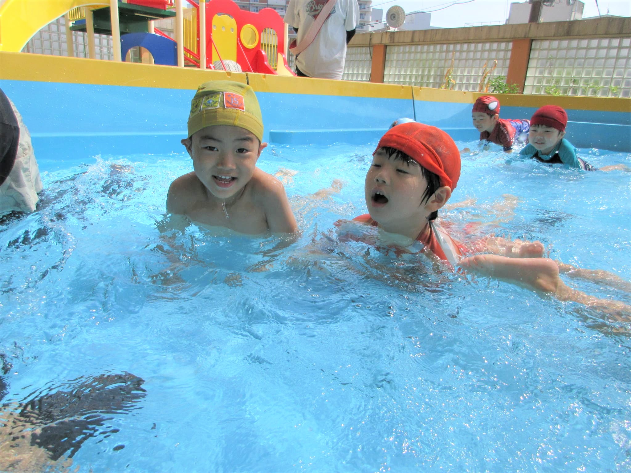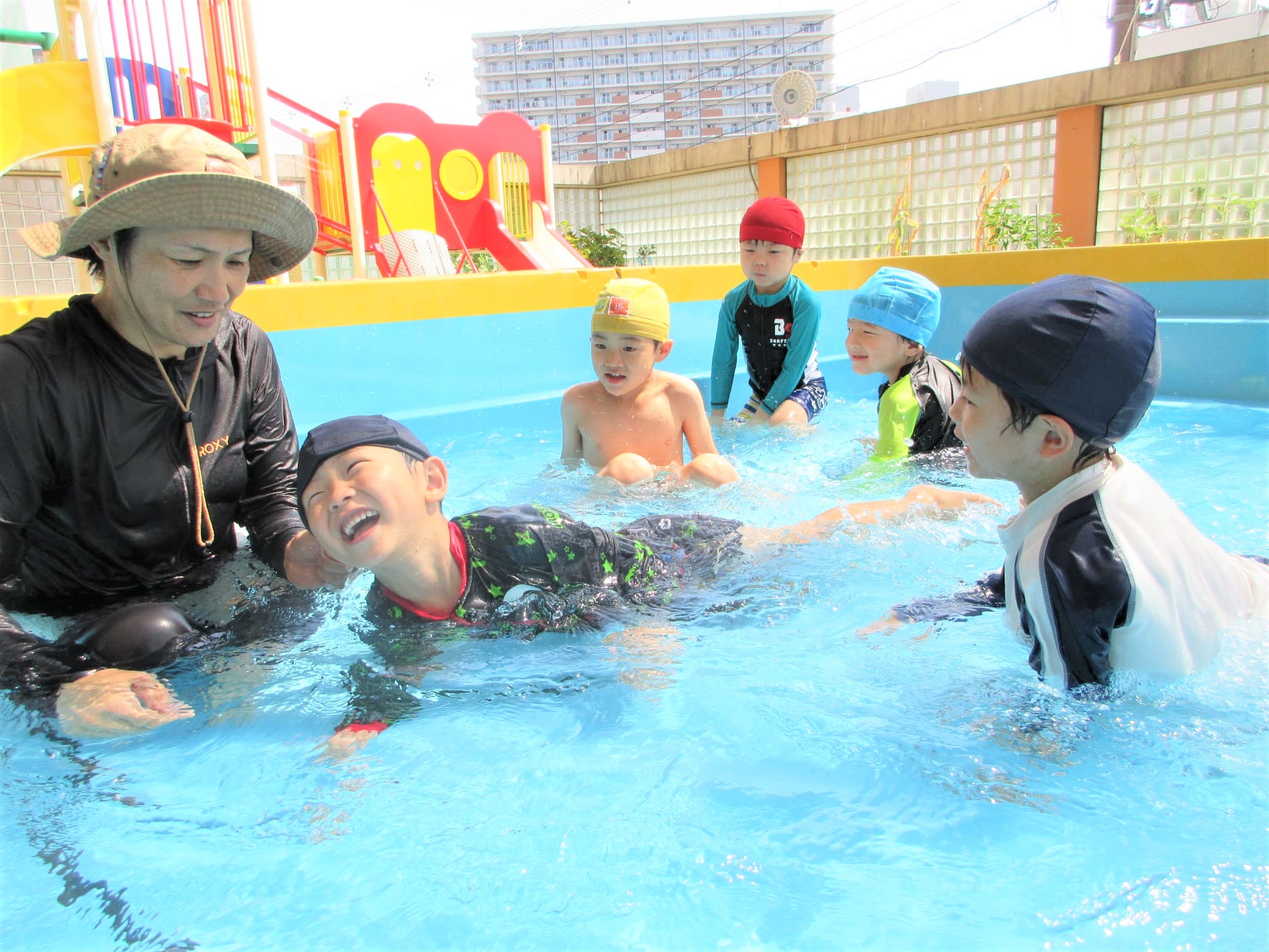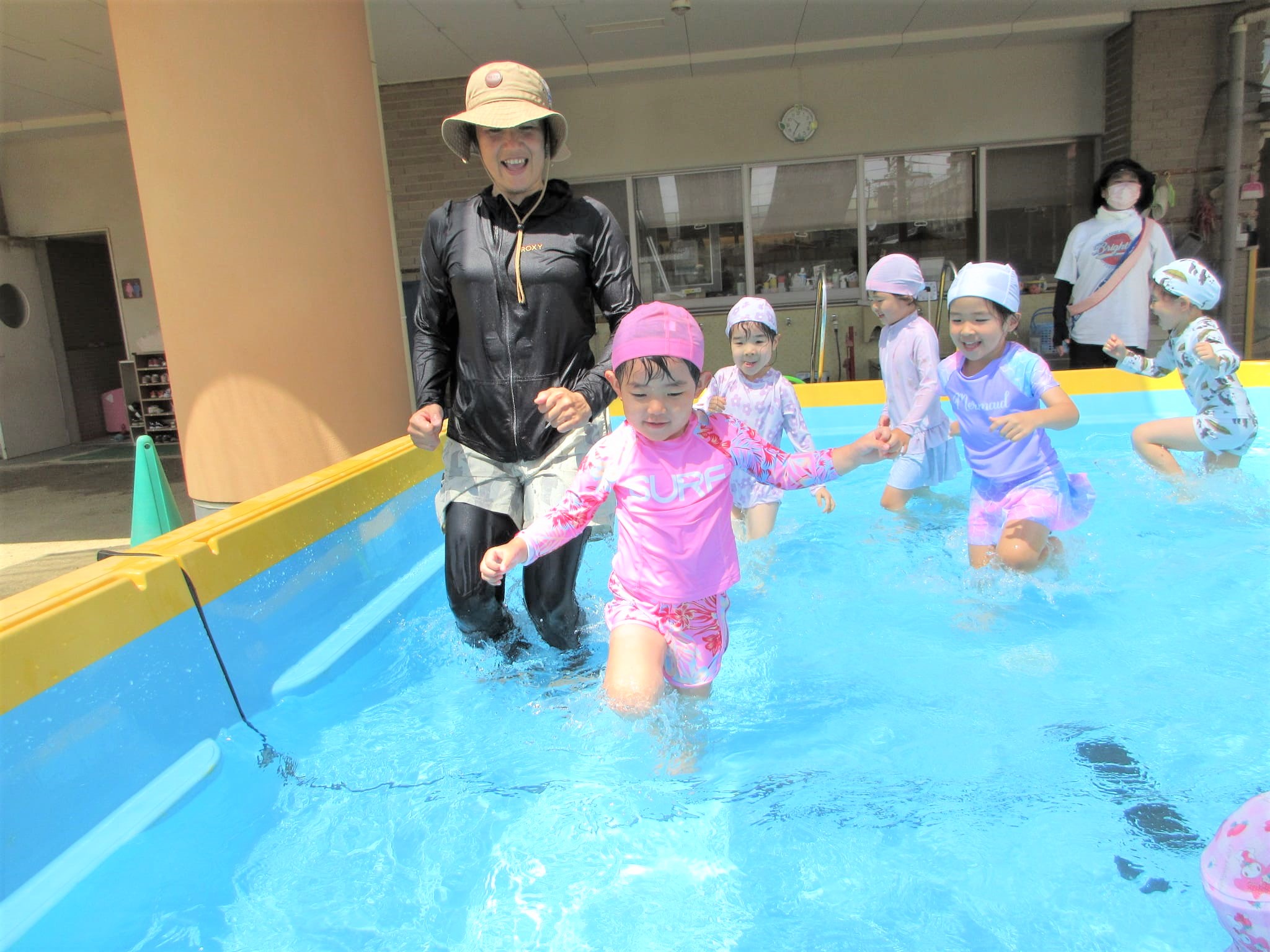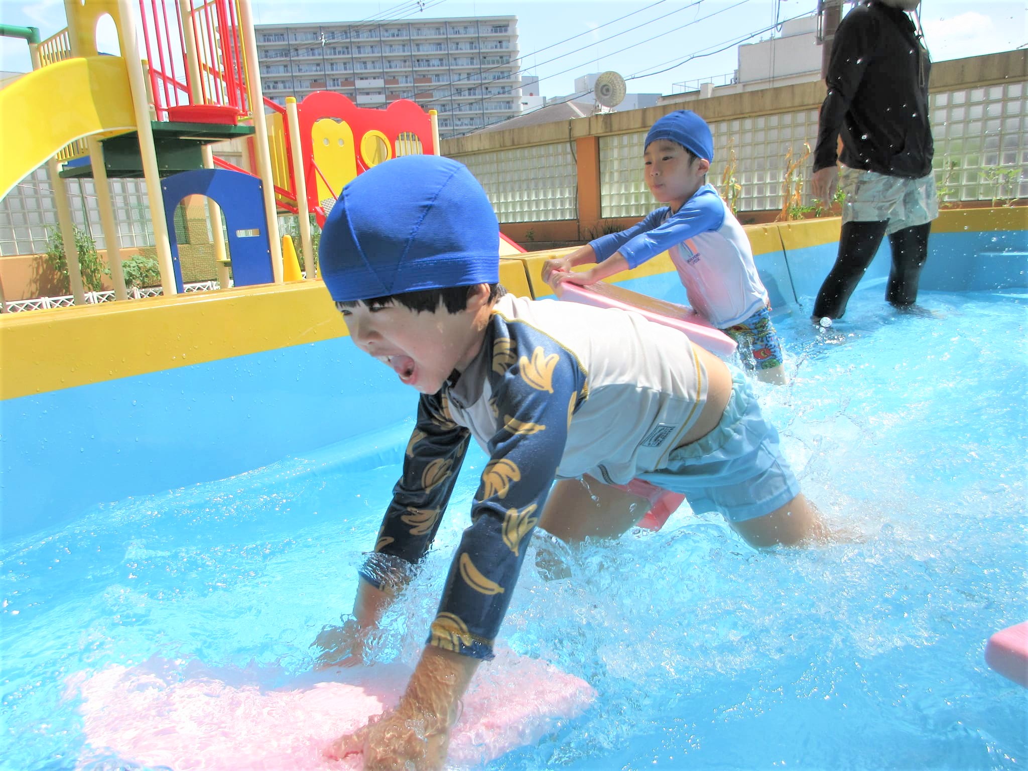 最初、顔に水が掛かるのが嫌だった子どもも、少しずつ慣れてきたようです♪