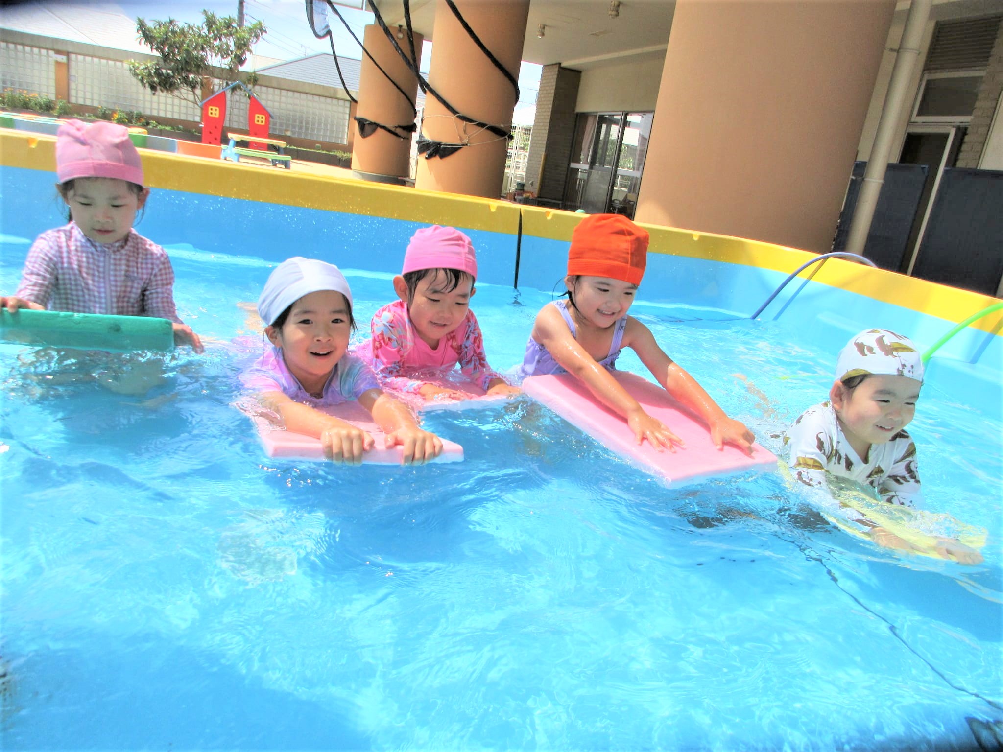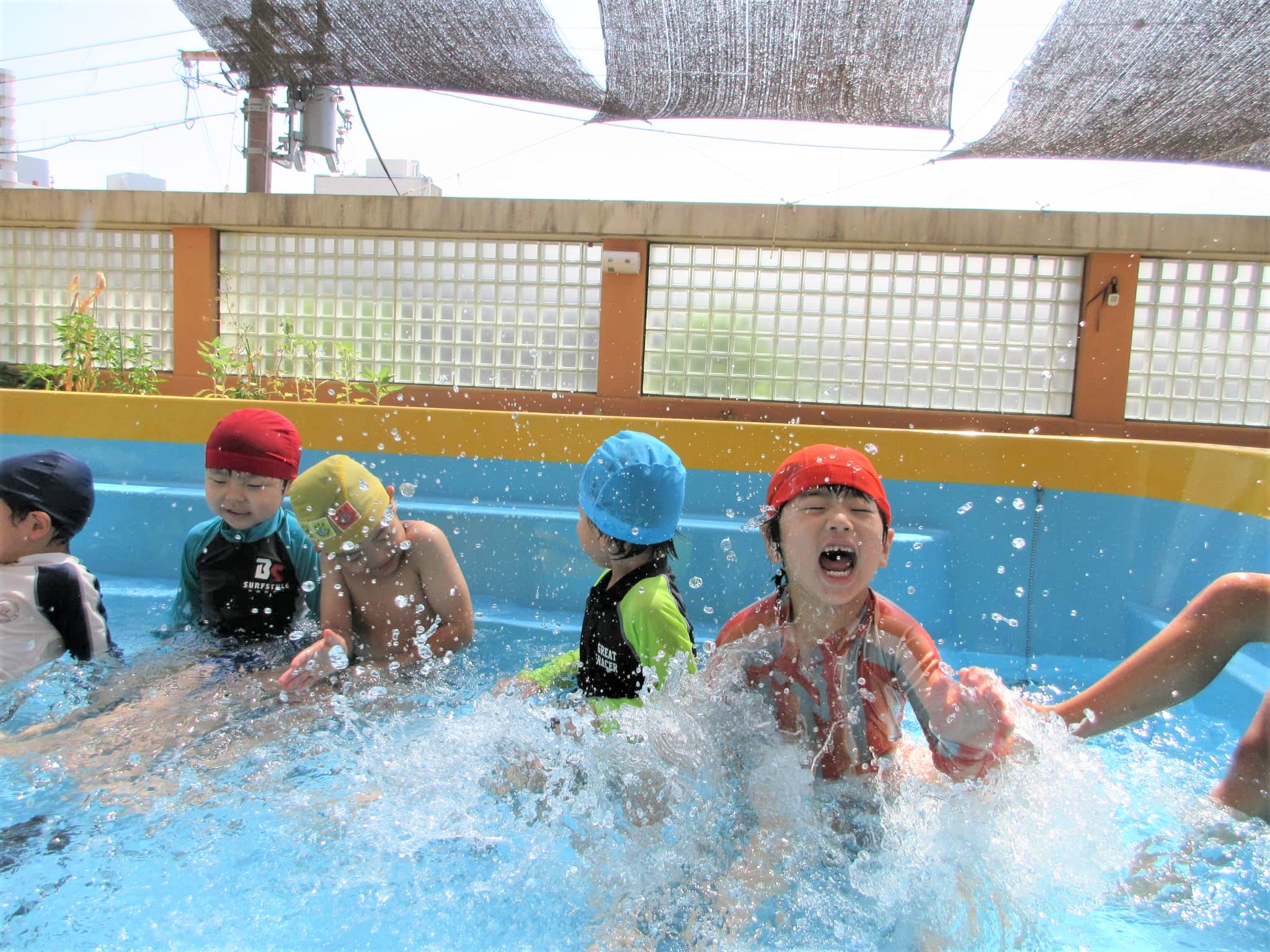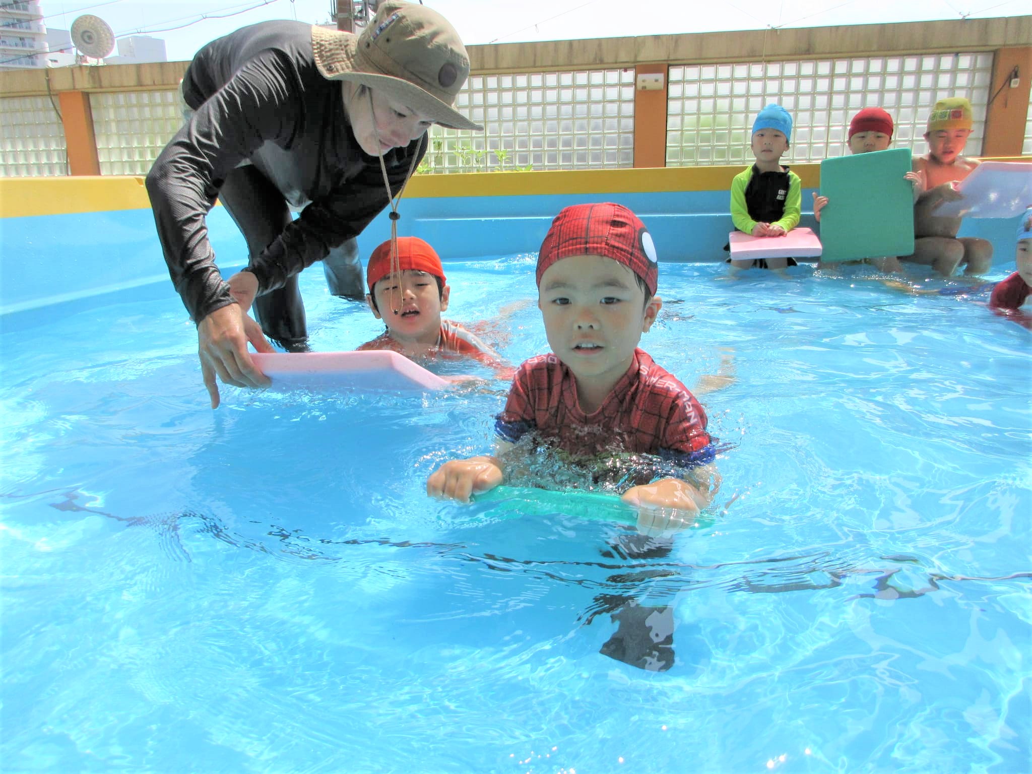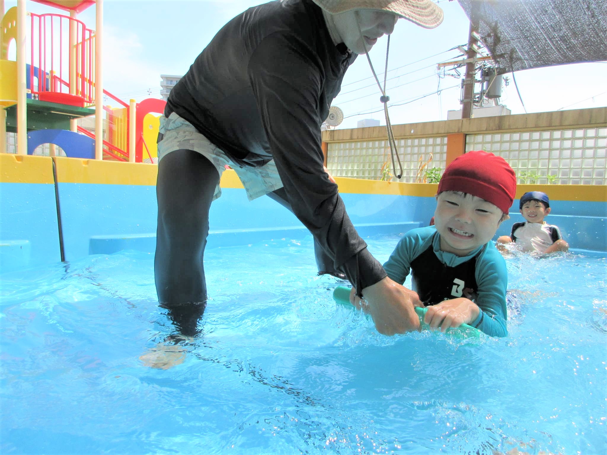 最初、顔に水が掛かるのが嫌だった子どもも、少しずつ慣れてきたようです♪