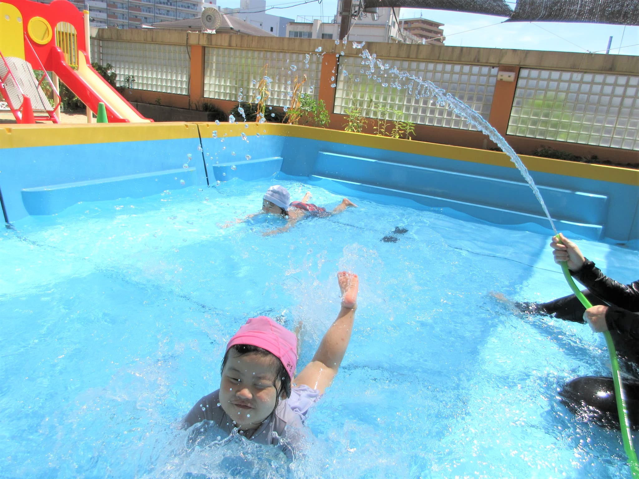 そんな中・・・子どもたちは、元気いっぱいにプールを楽しみました♪