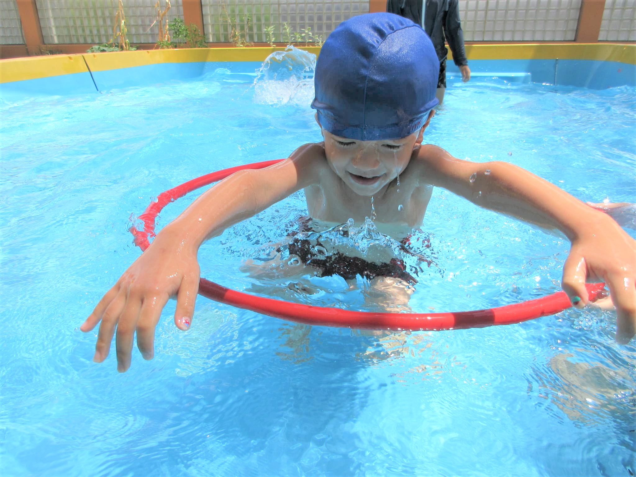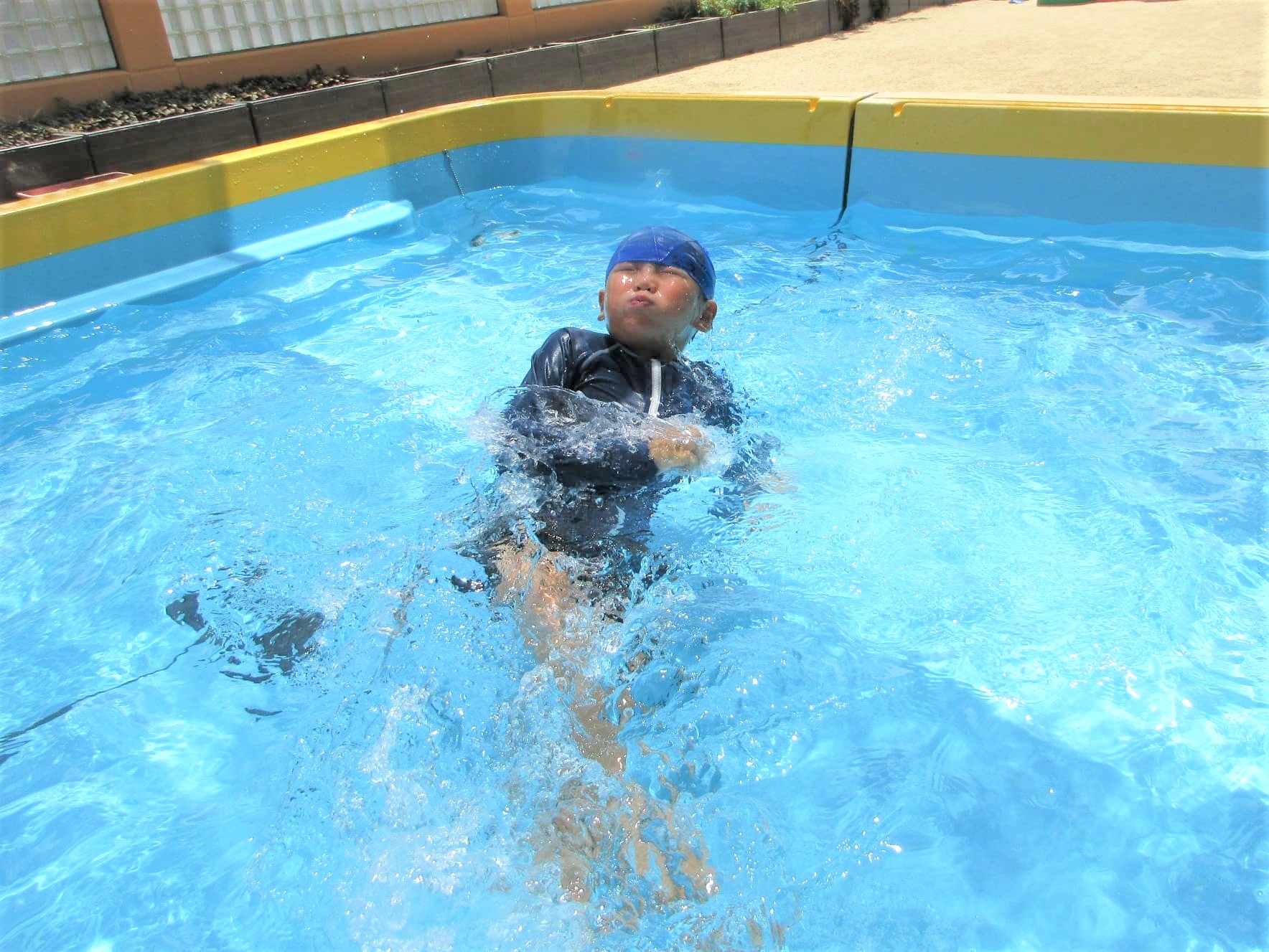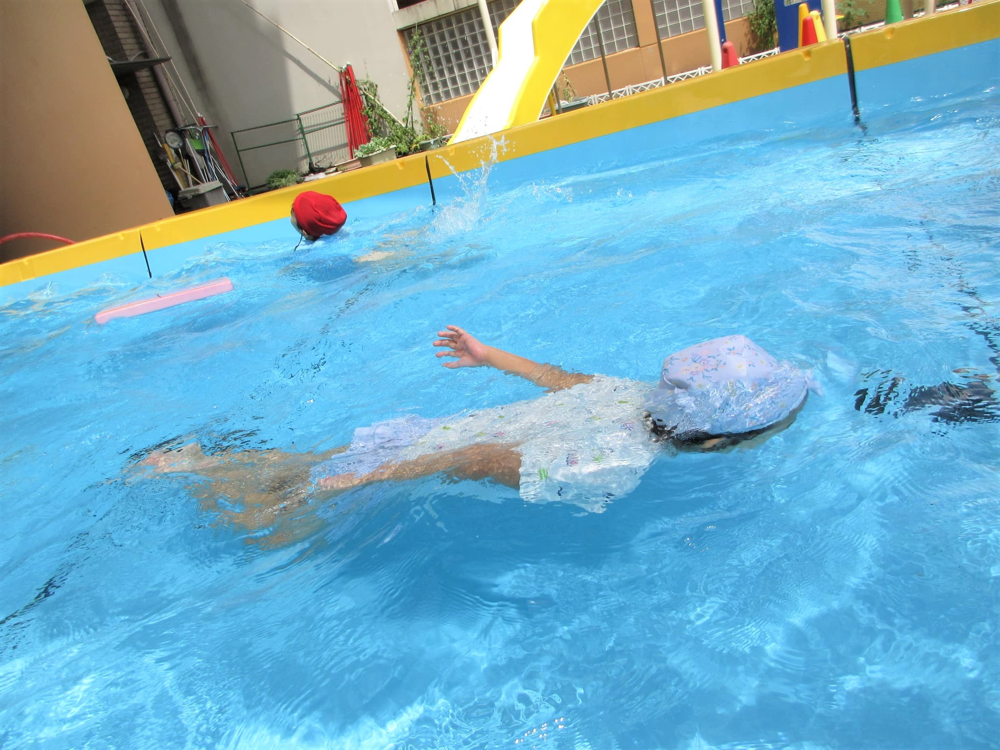「ぷーるの むこうまで およぐ!」と、自分で決めて何度もチャレンジしていました!