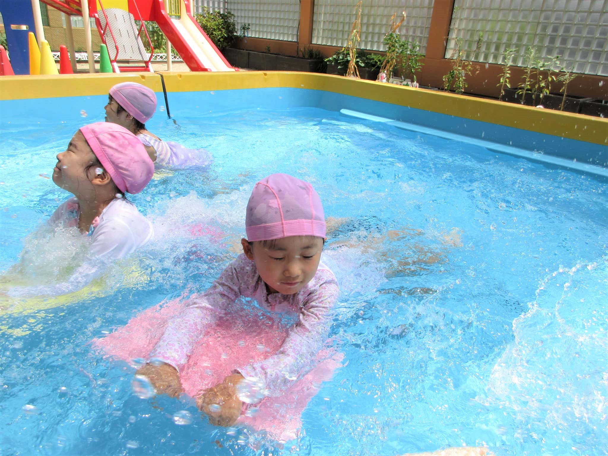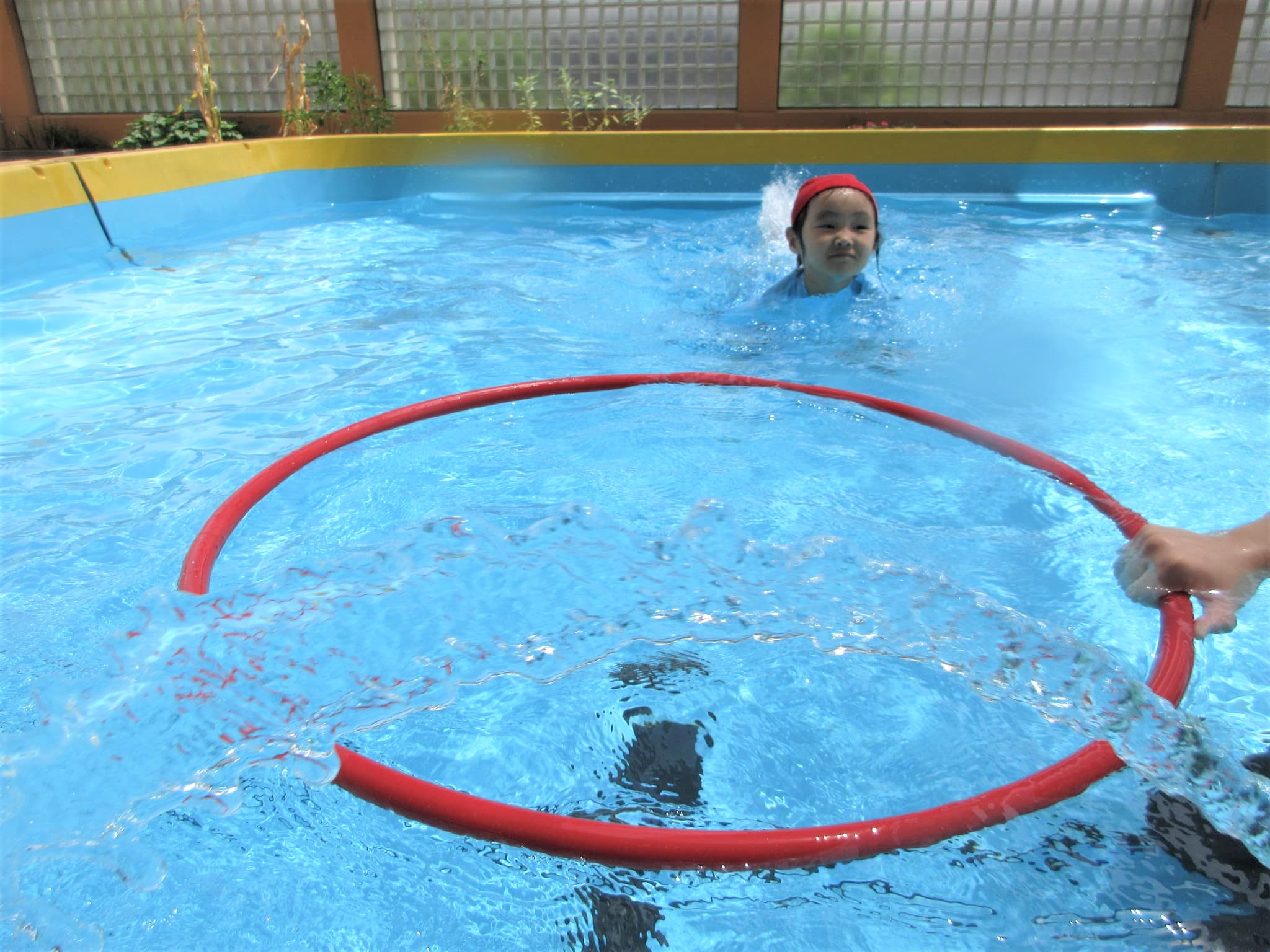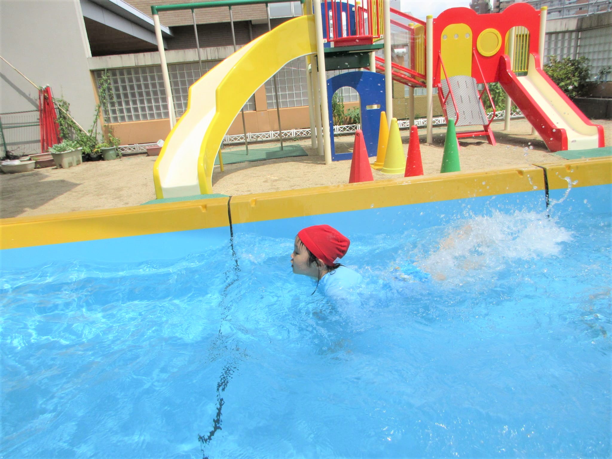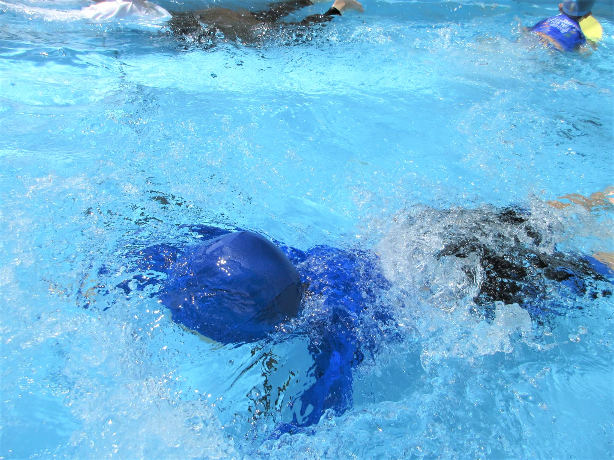 「ぷーるの むこうまで およぐ!」と、自分で決めて何度もチャレンジしていました!