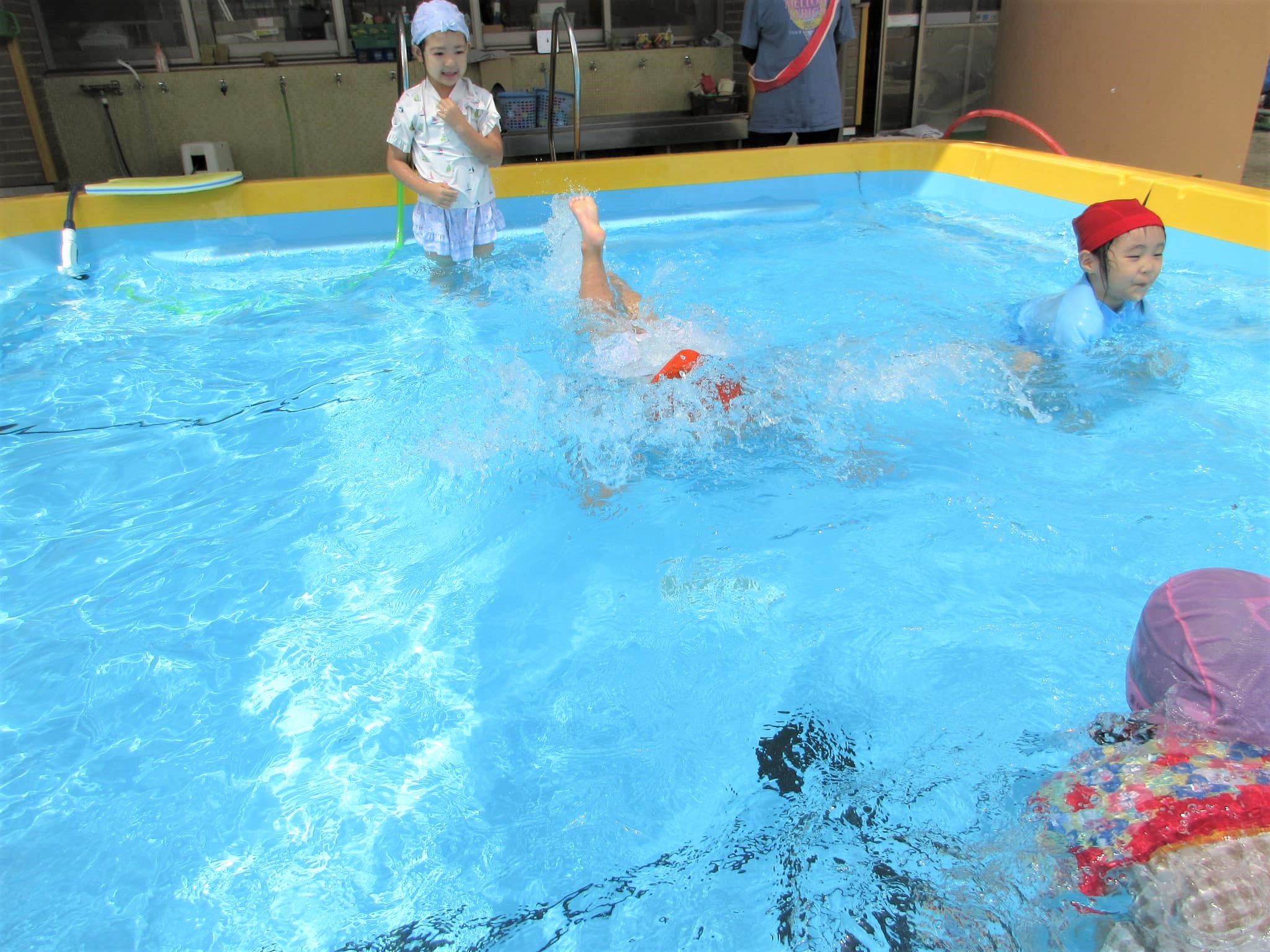 先程の「ぷーるの むこうまで およぐ!」と決めて、頑張っていた子どもたちを含めて…