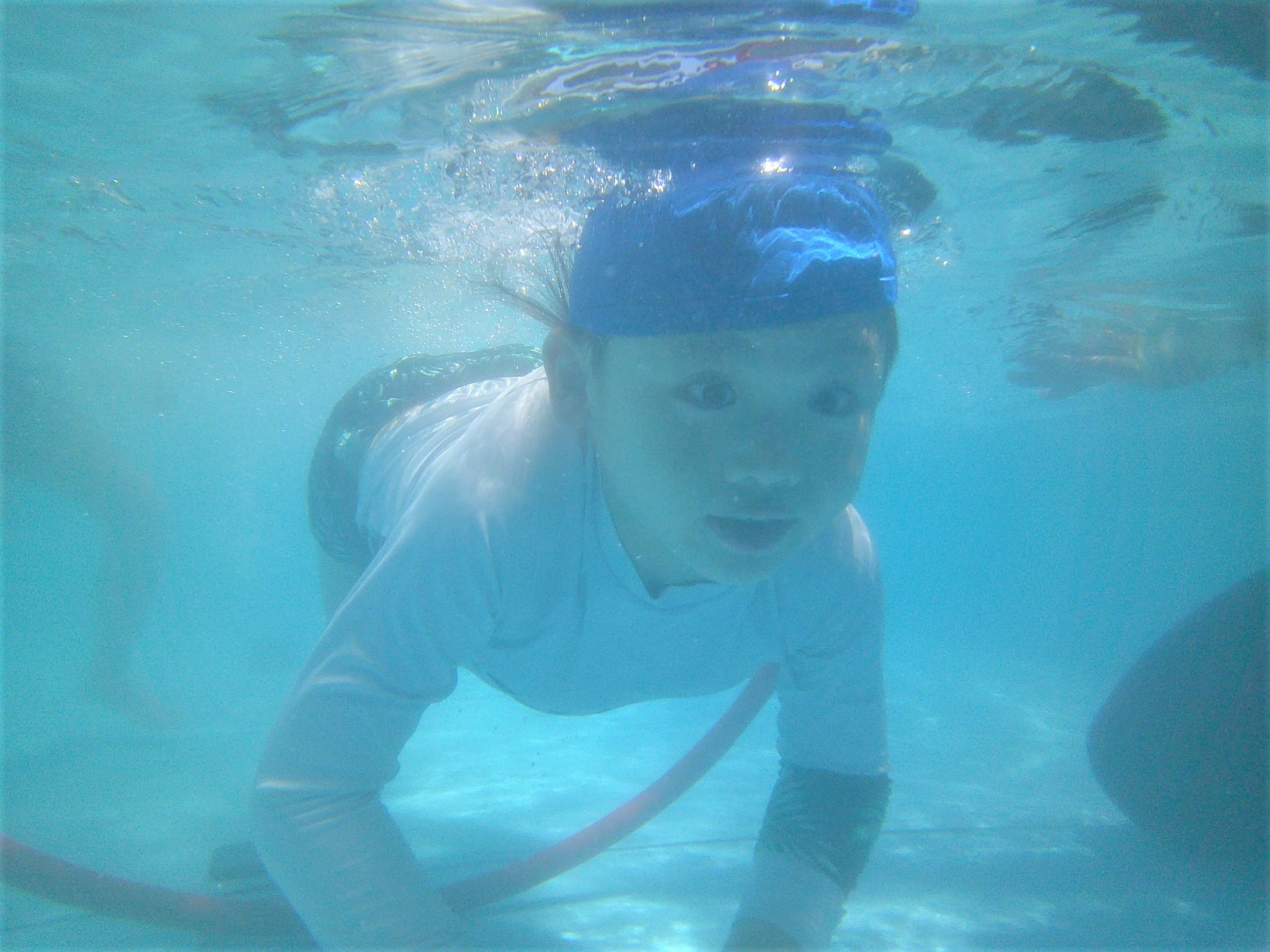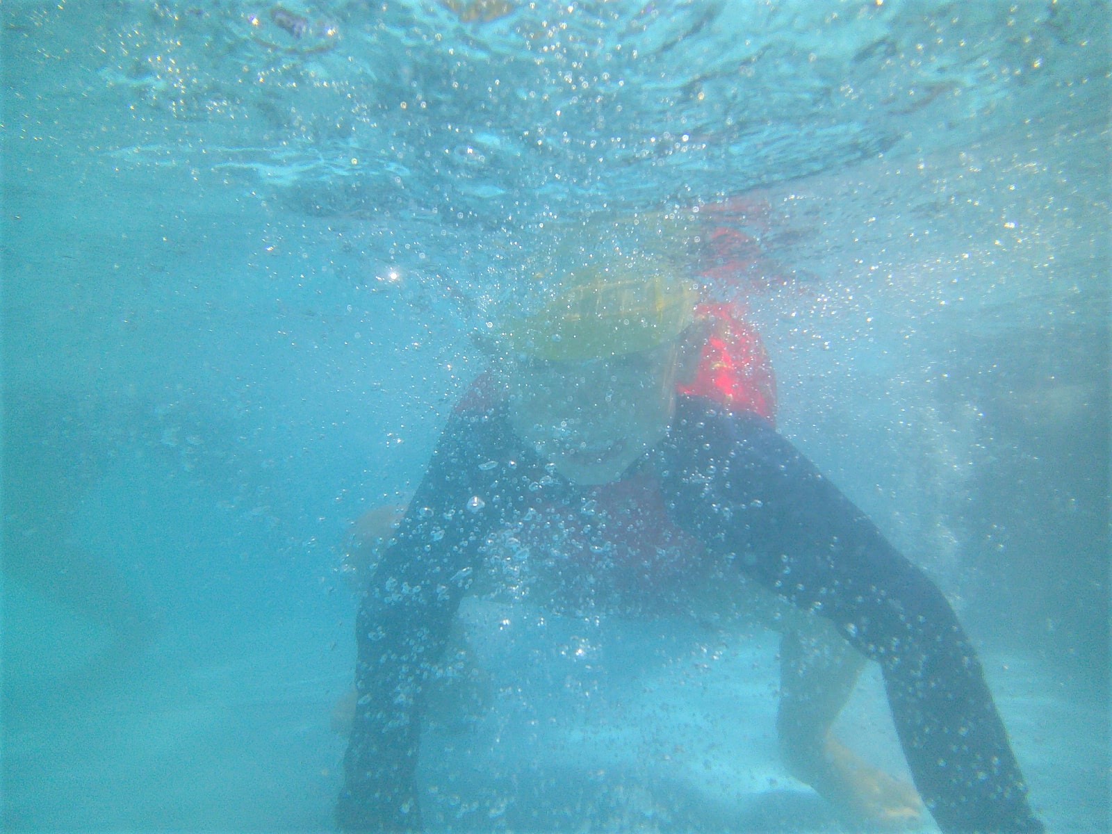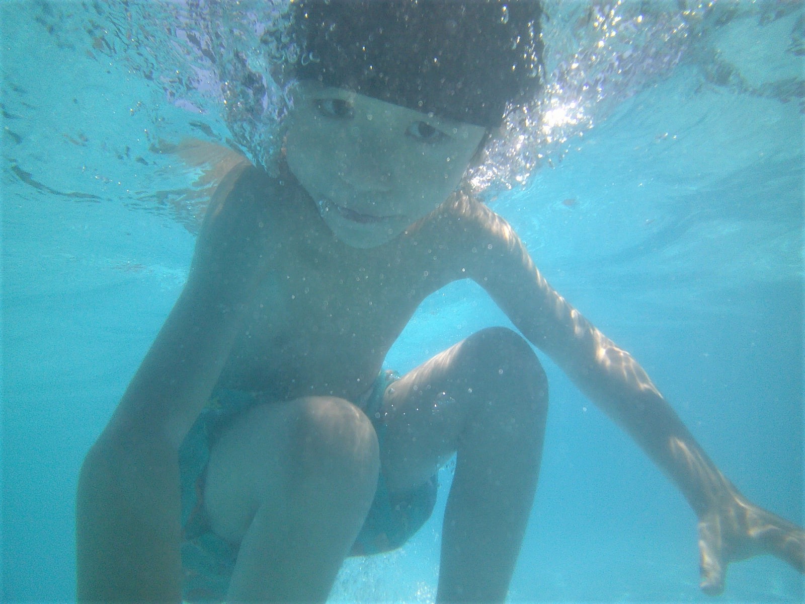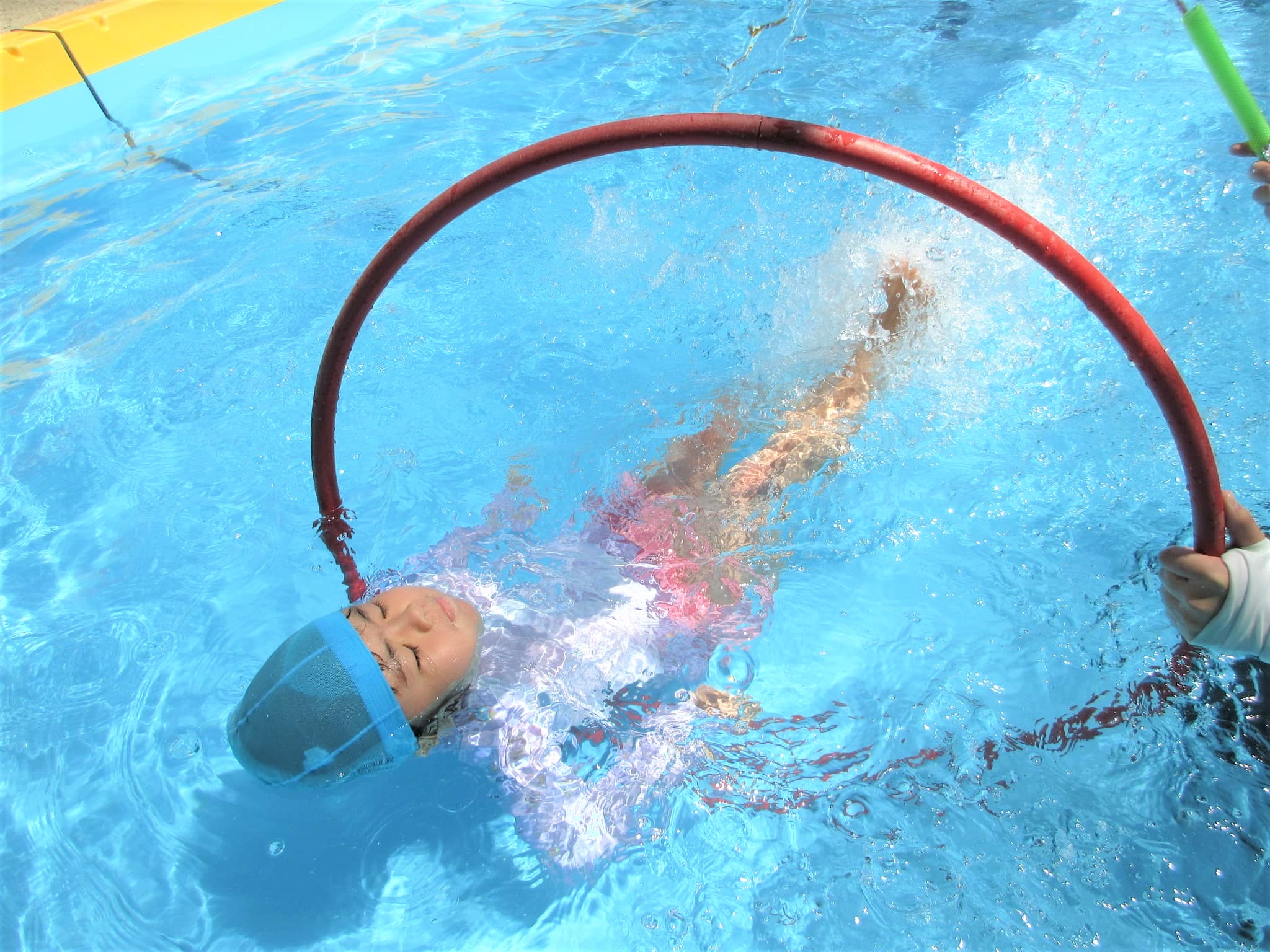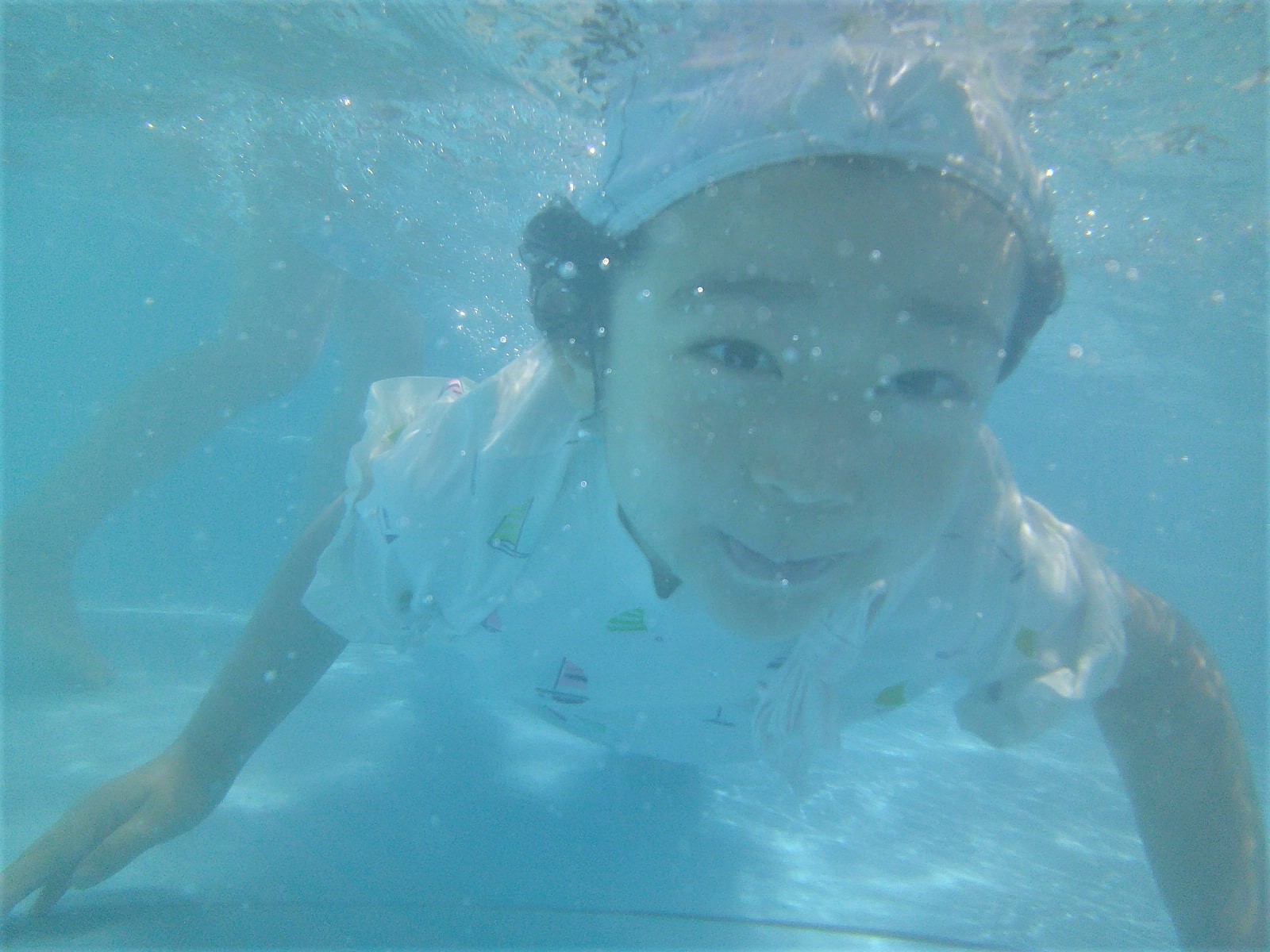 あお向けになって泳いでくぐったり、ぐるぐる回りながらくぐったり…