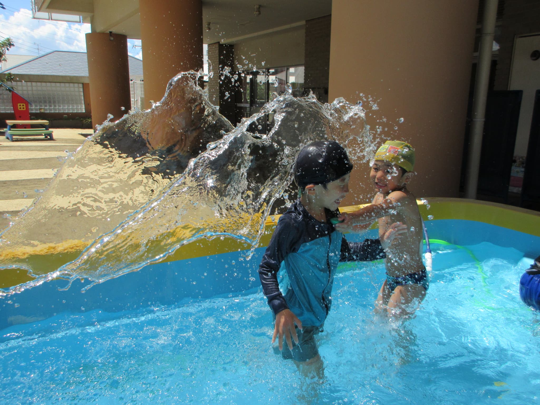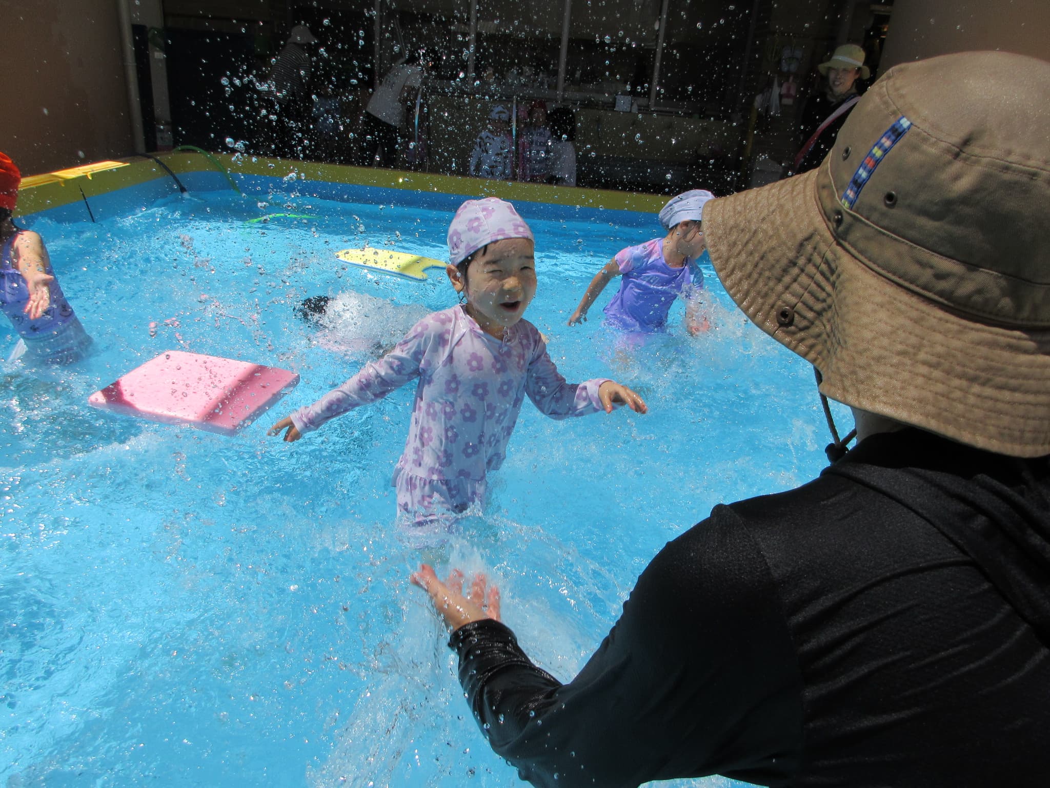 ぱんだ組の時には、水を思う存分に楽しんでいた、きりん組の子どもたちが