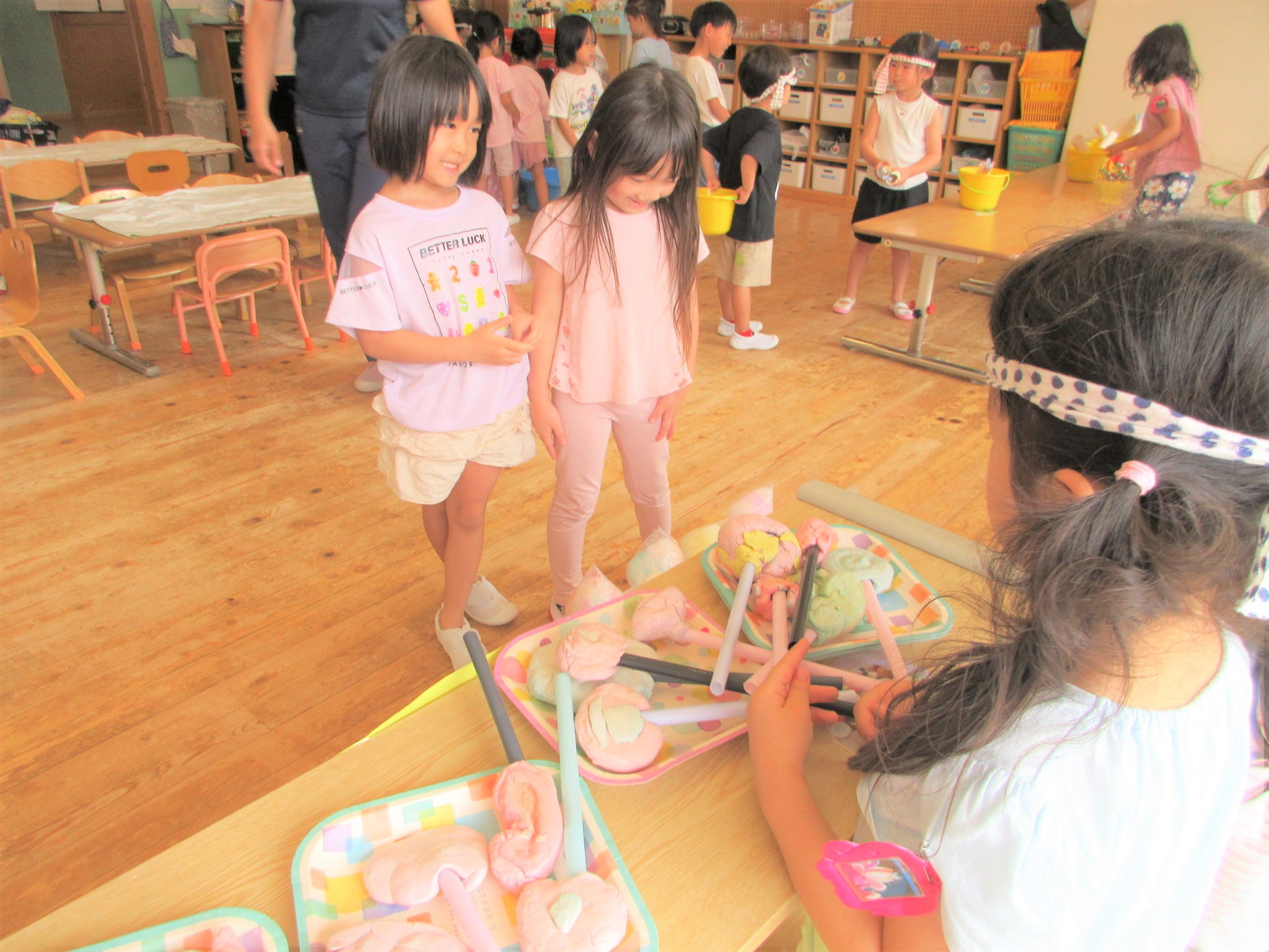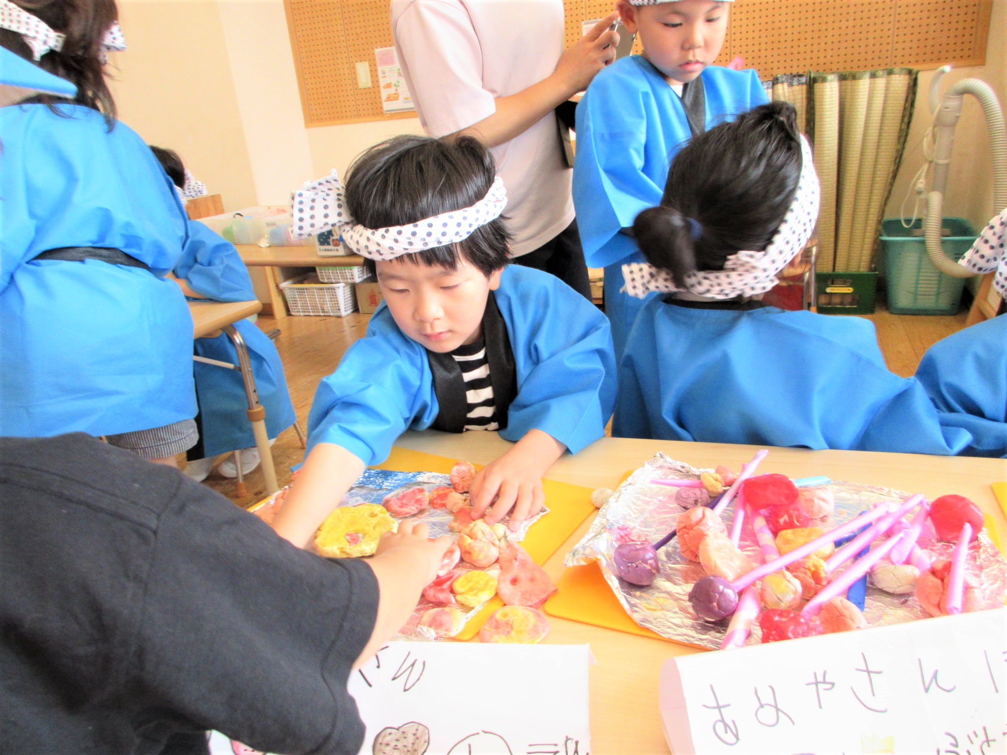 『飴・ドーナツ・クッキー・チョコバナナ・団子』の食べ物屋さん♪