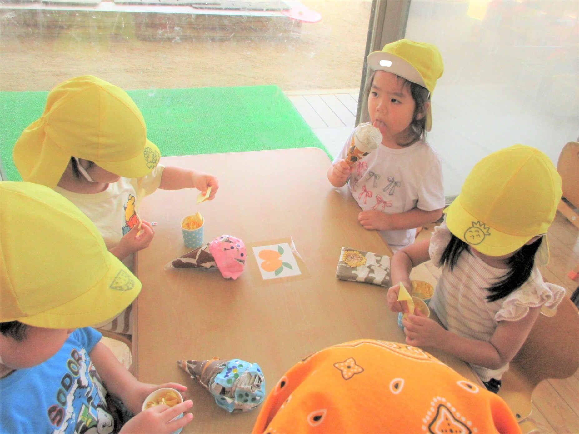 きりん組の子どもたちが分かりやすいように、お金は全て“1円玉”になったそうです☆