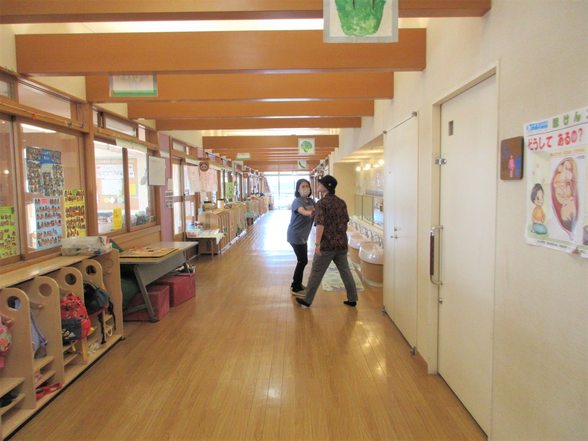 「廊下にハチが飛んできました!お部屋に入りましょう」