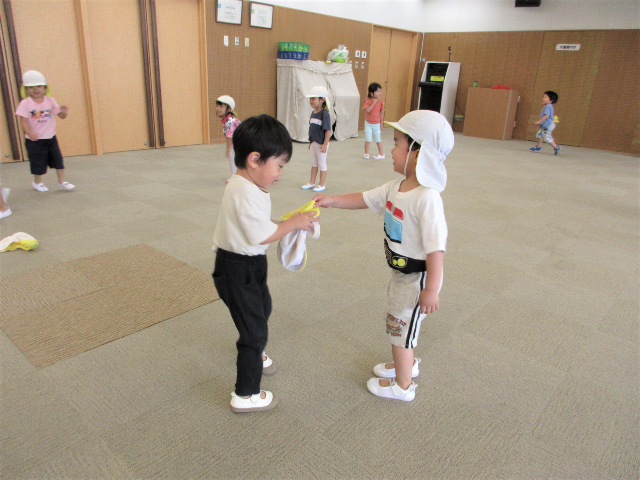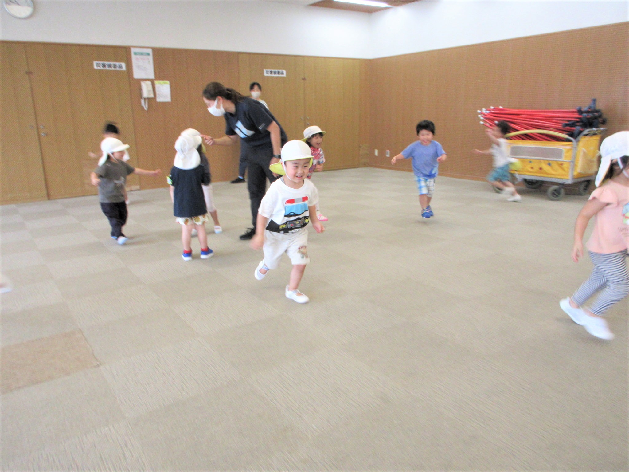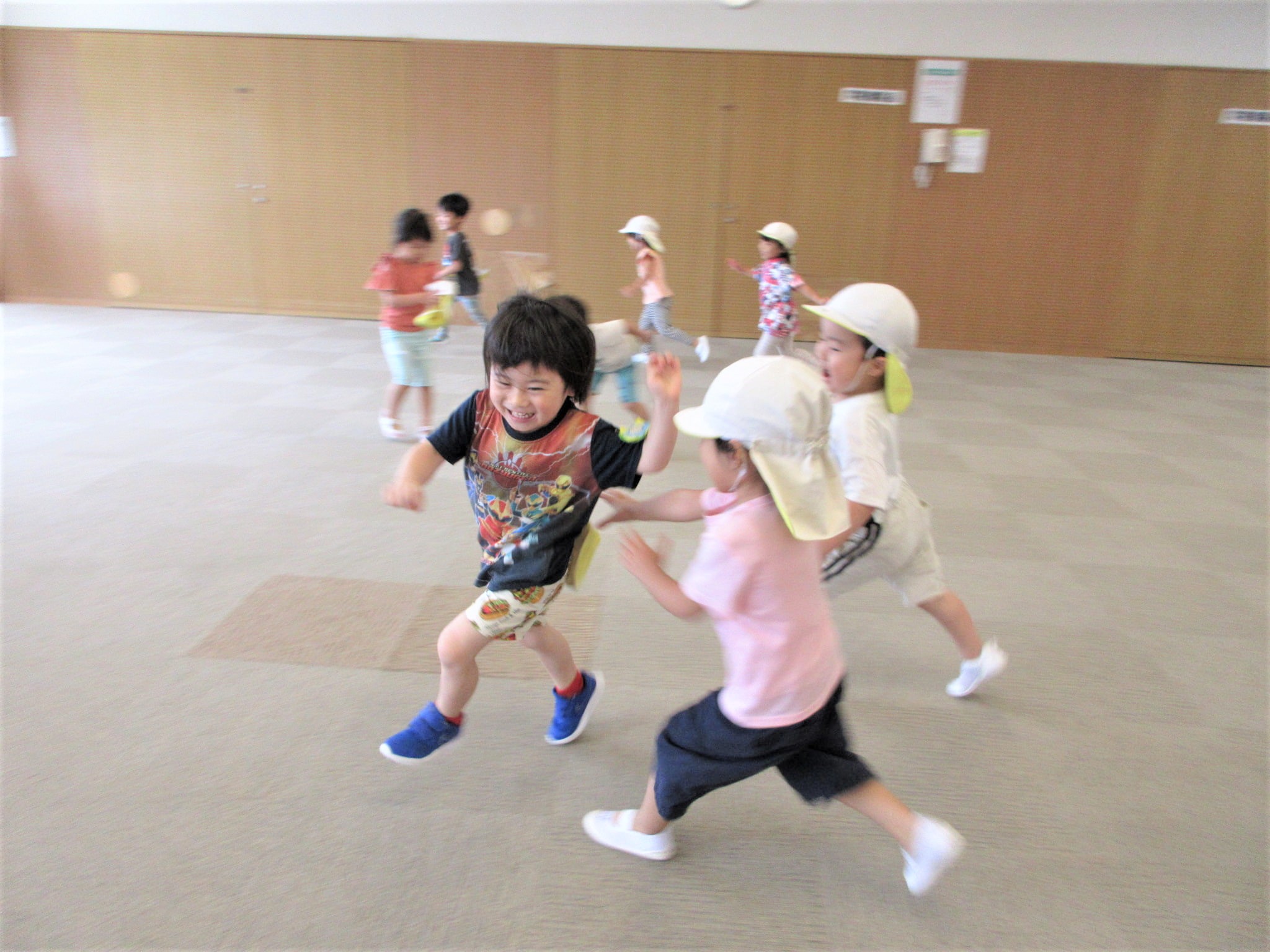 帽子をかぶっている子どもたちもしっぽを取りに行くようです!!