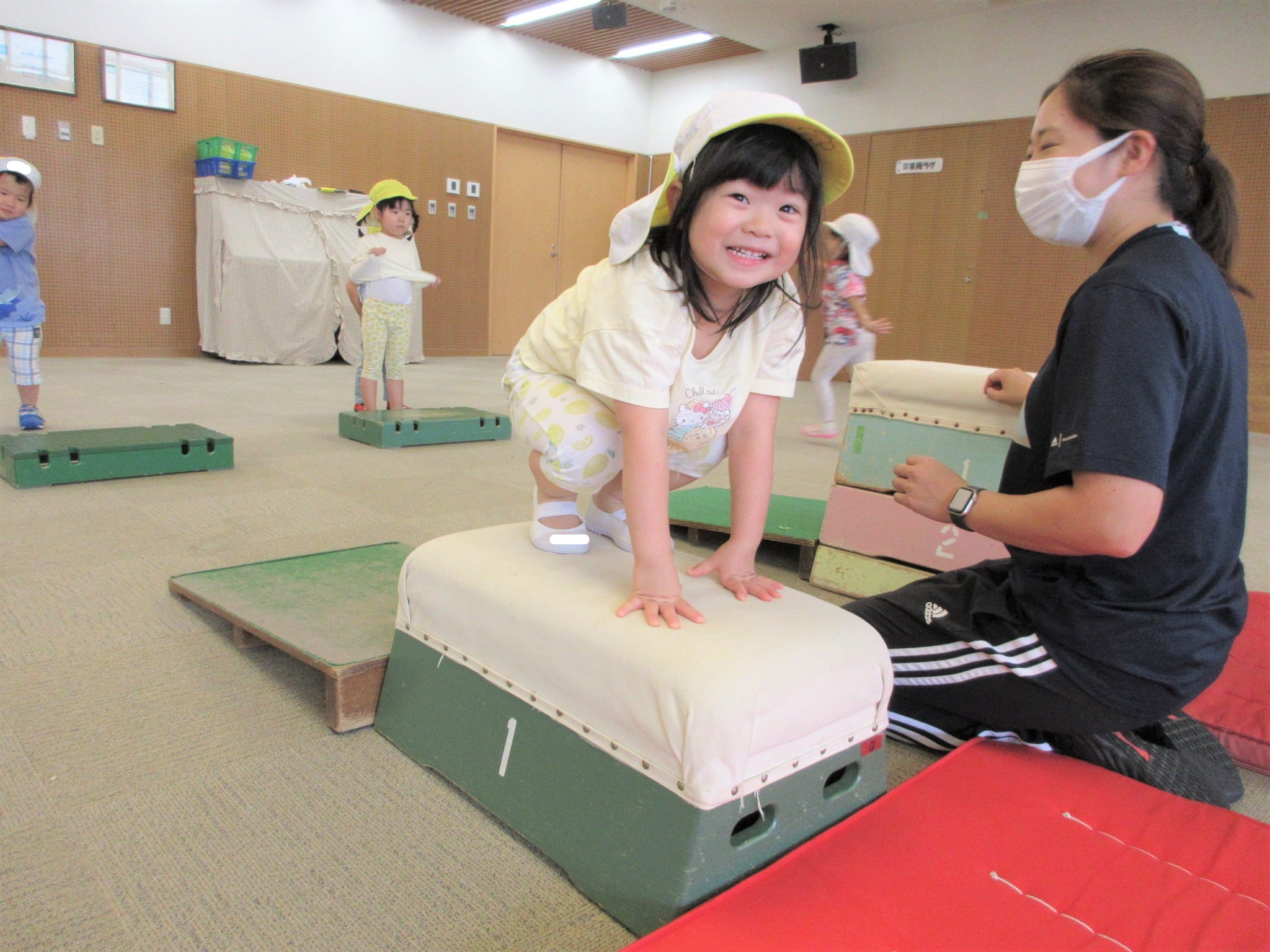 これらの動きが、次にお伝えするきりん組の開脚跳びに繋がっていきます♪
