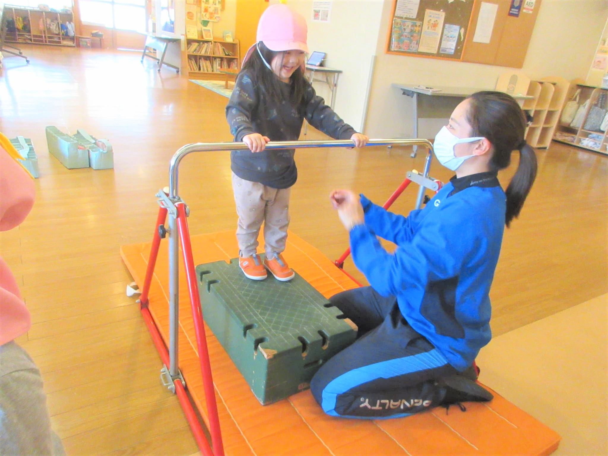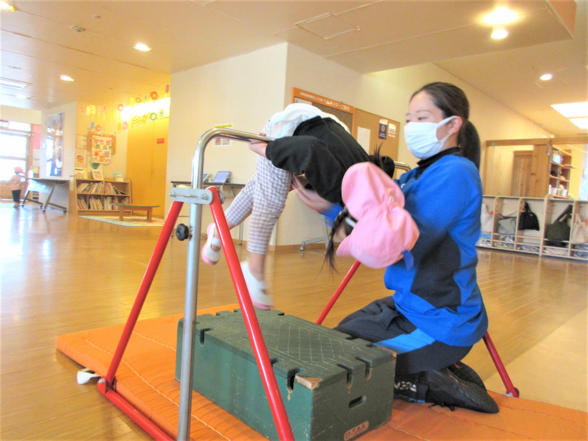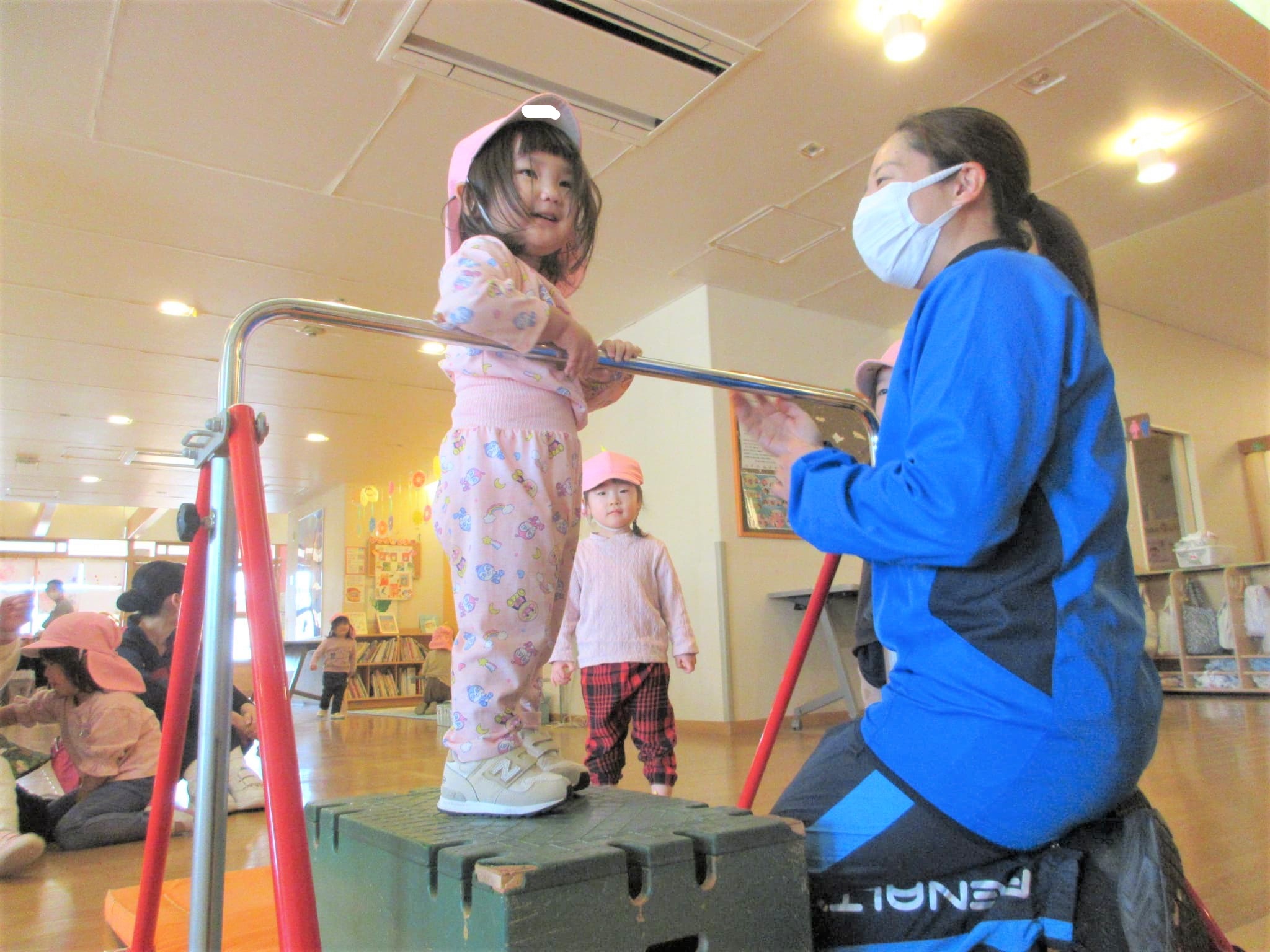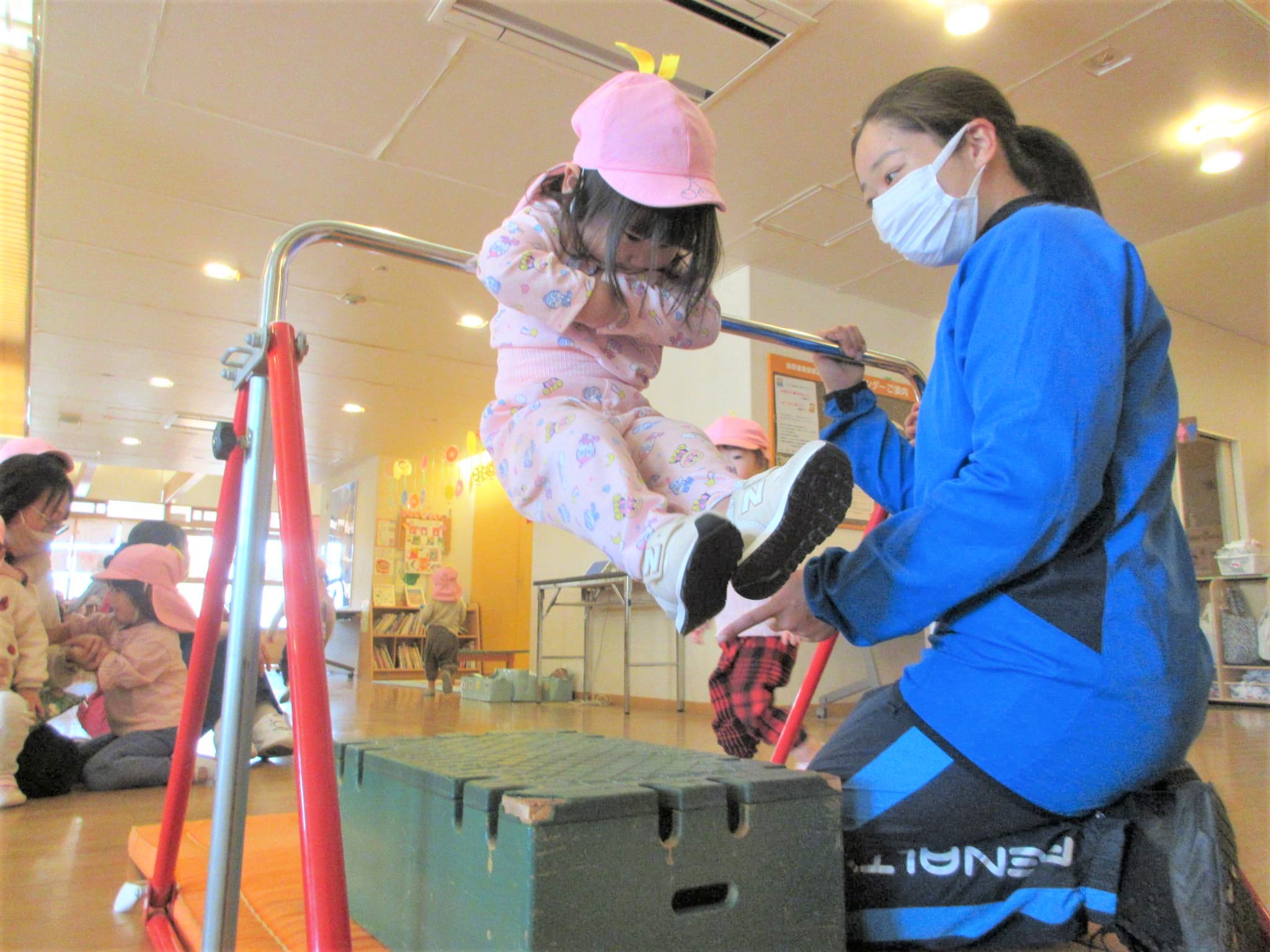 ↑写真のように、鉄棒を初めて取り組む『Mちゃん』を見ることができました♪