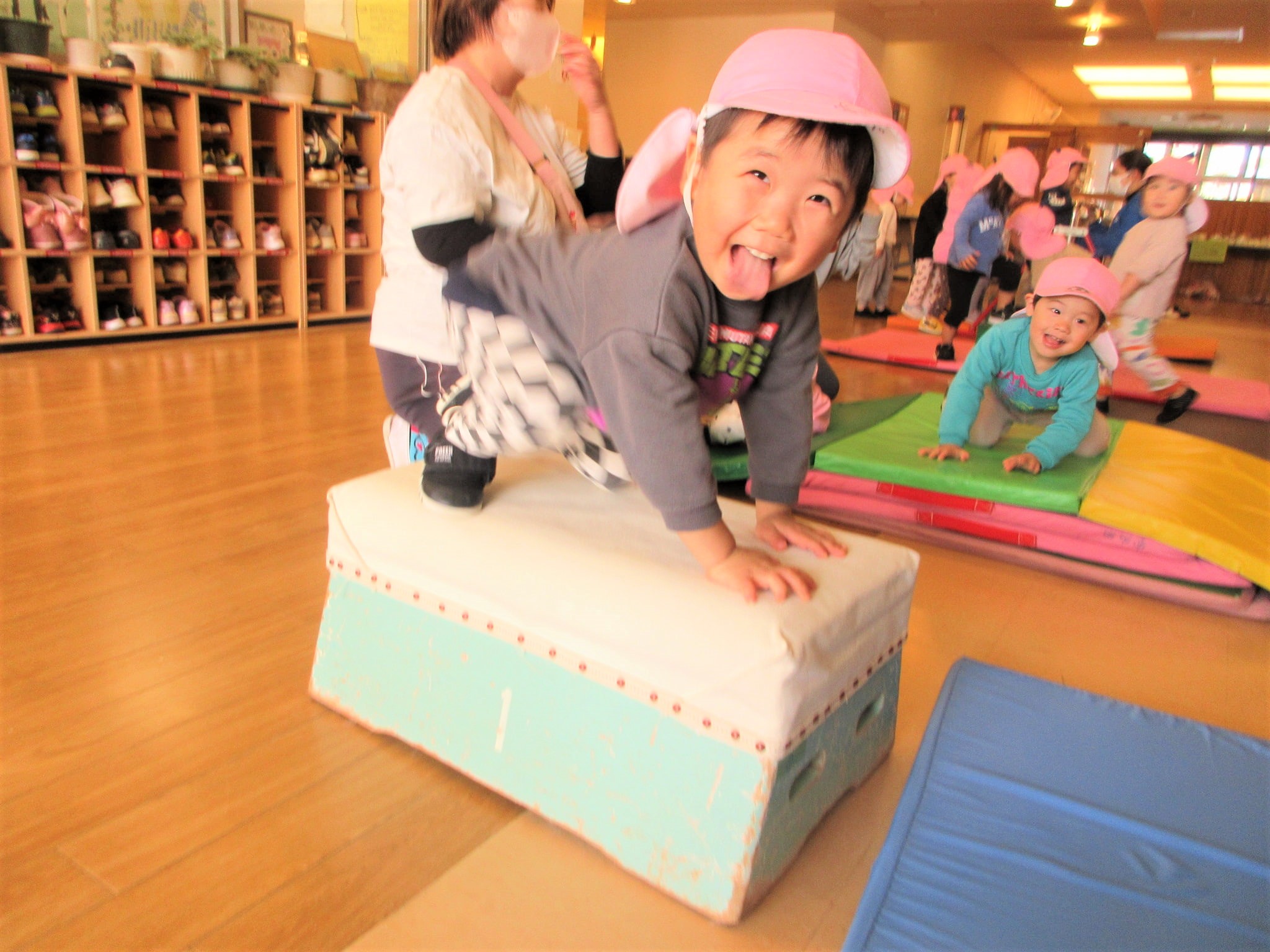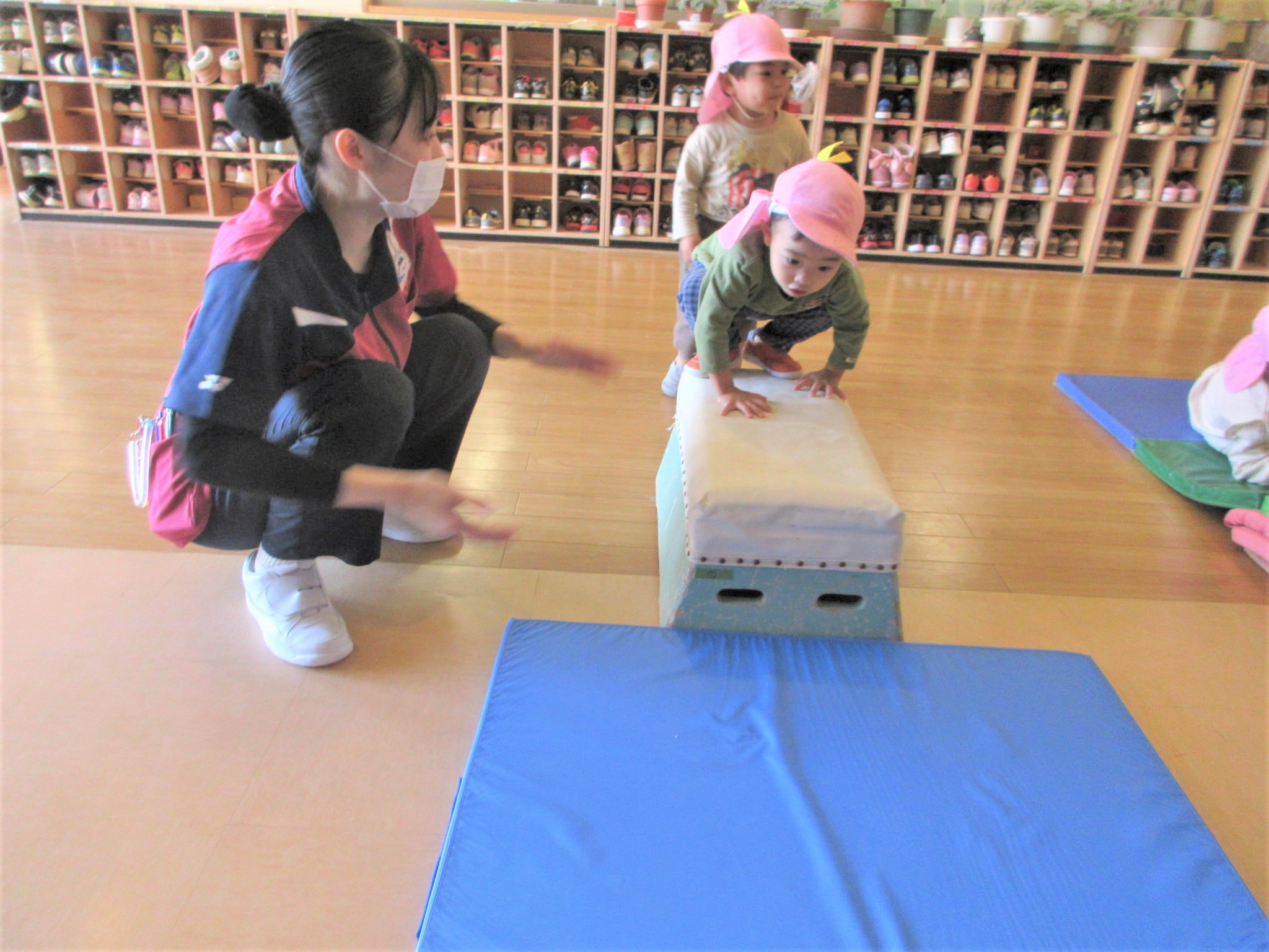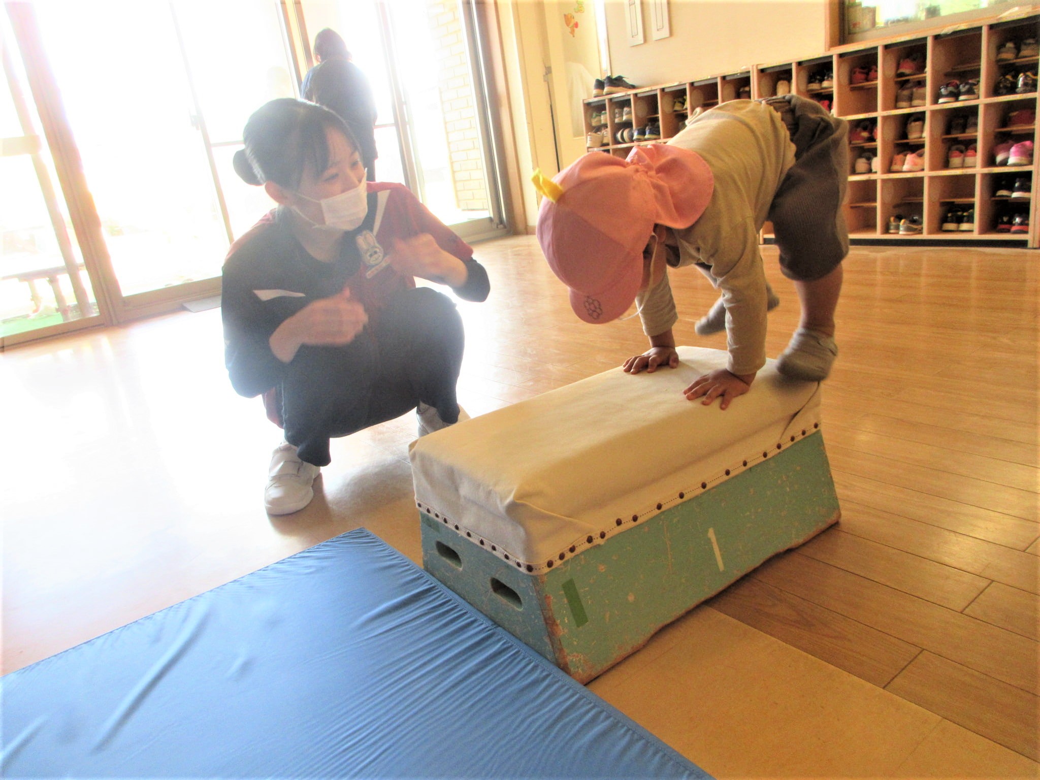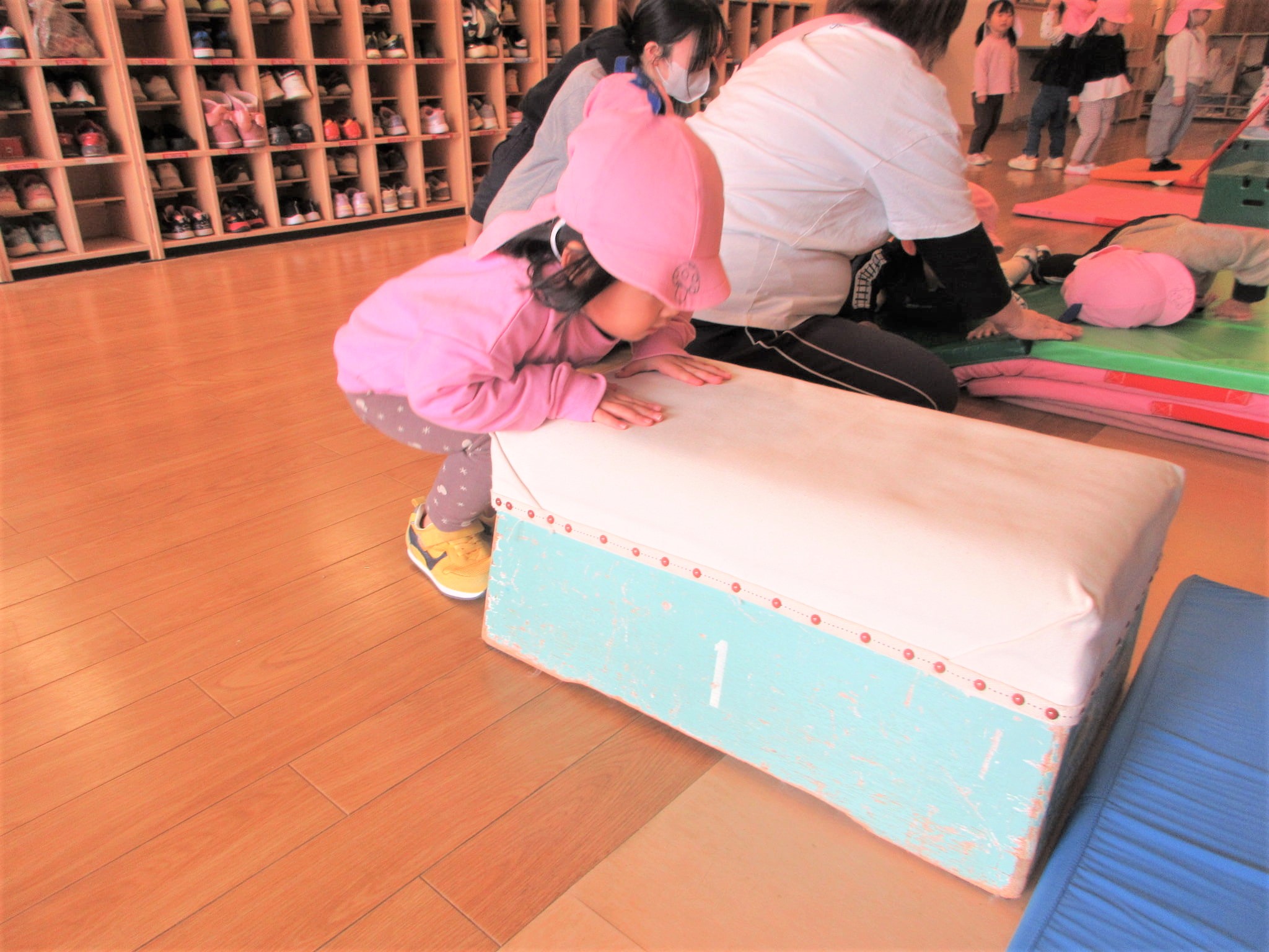 手をついた“まま”跳び箱に跳び乗るコツも少しずつ少しずつ・・・♪