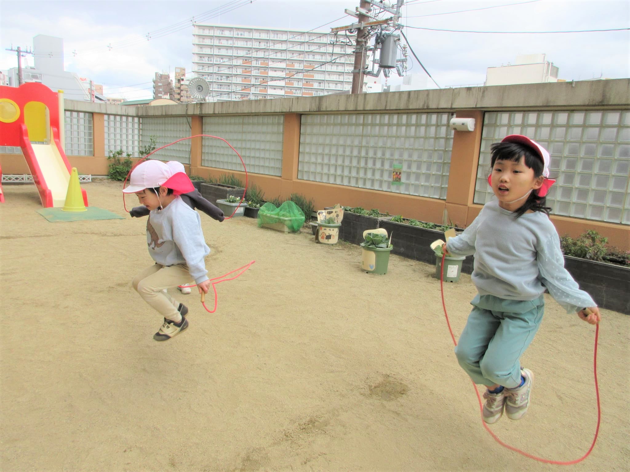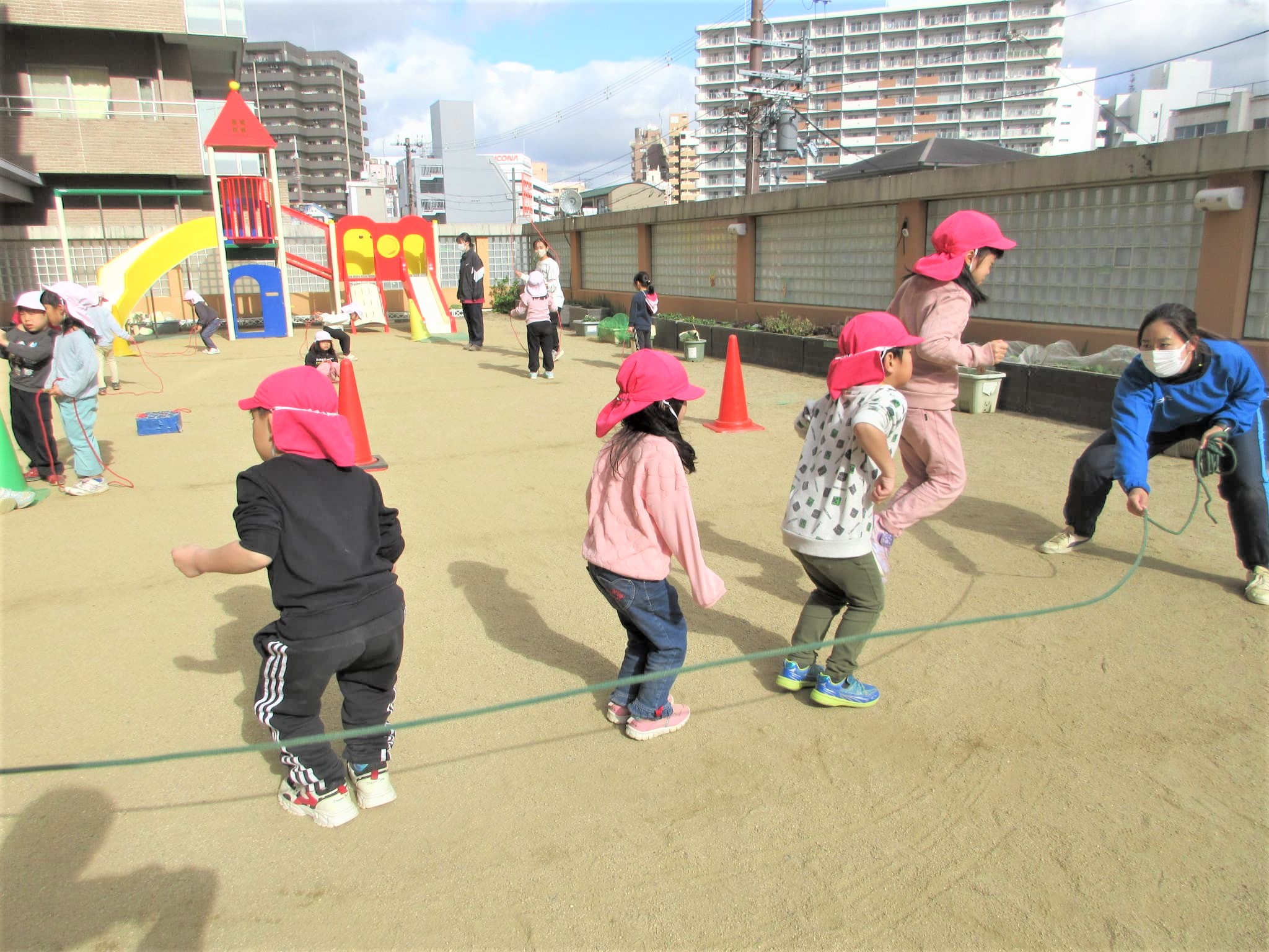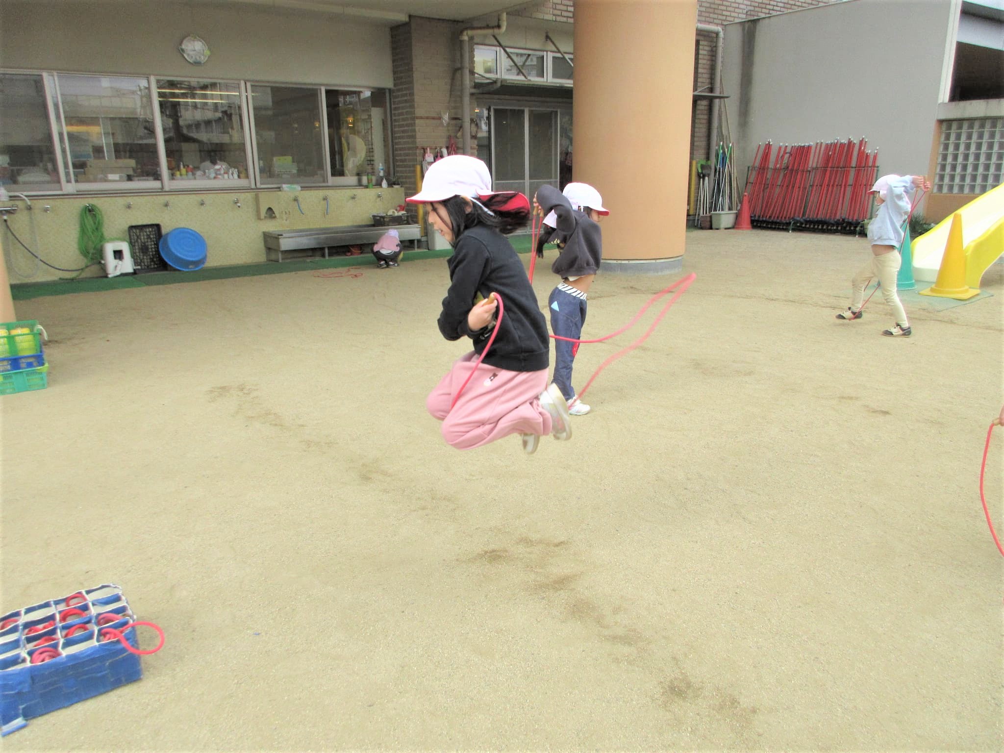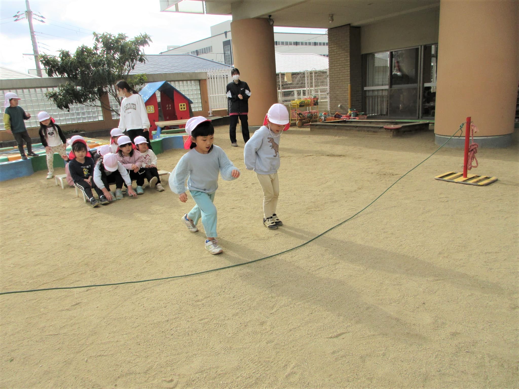5回跳んだ子どもに「次何回跳んでみる?」と聞くと