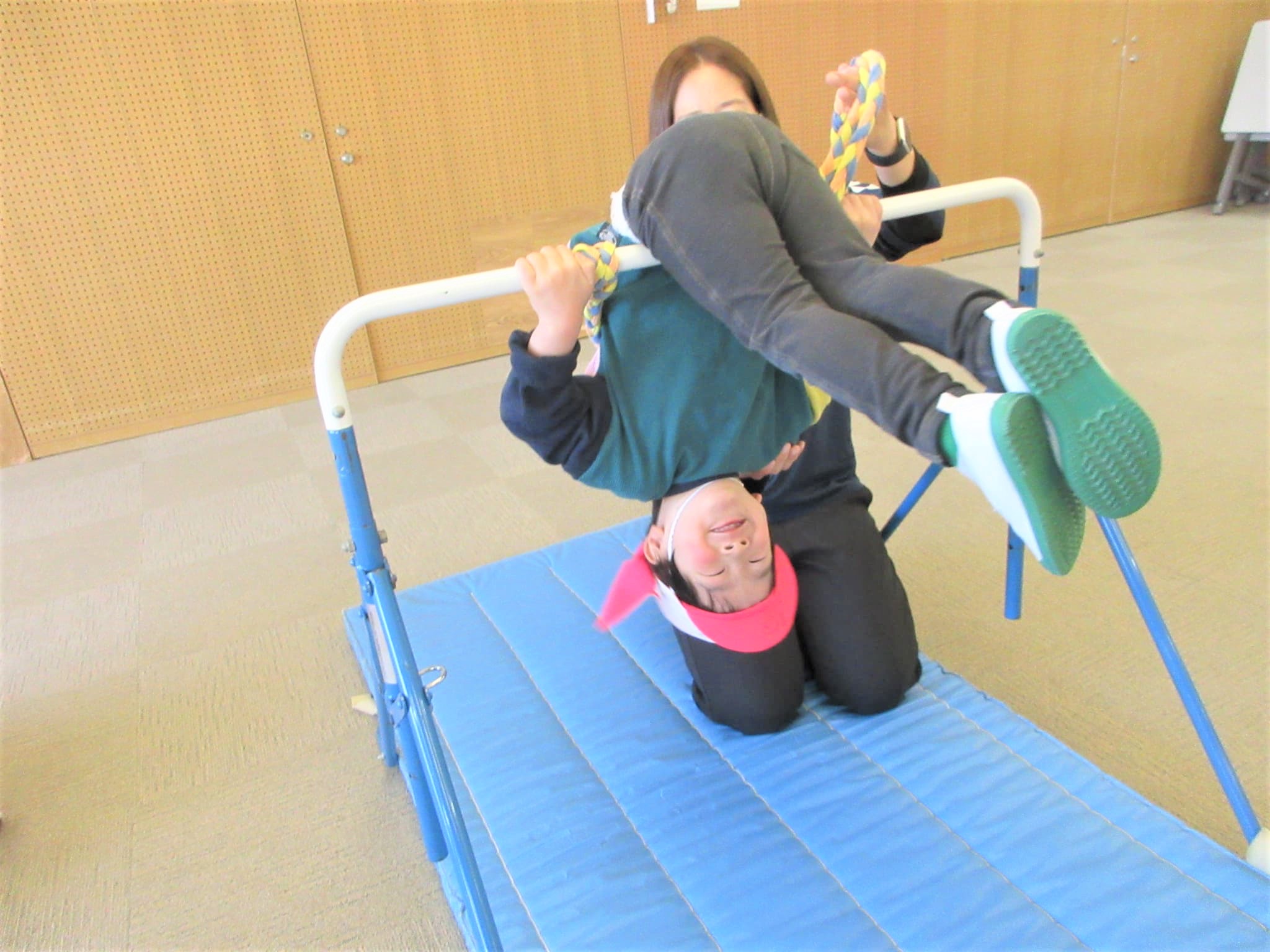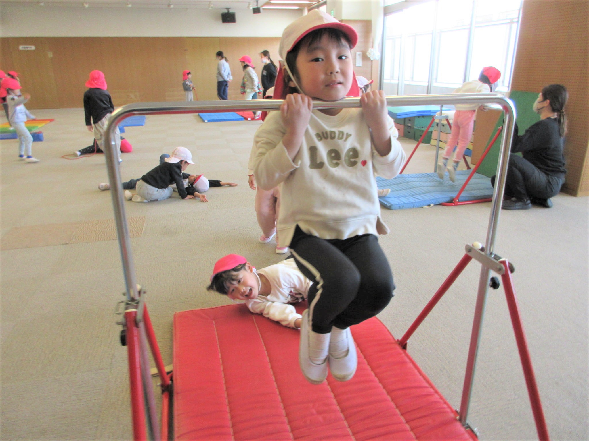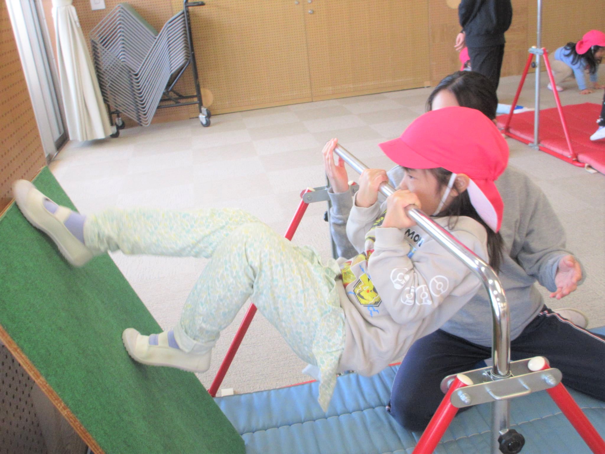 逆上がりの補助の板を力強く蹴って、クルっと回ることができるようになってきた