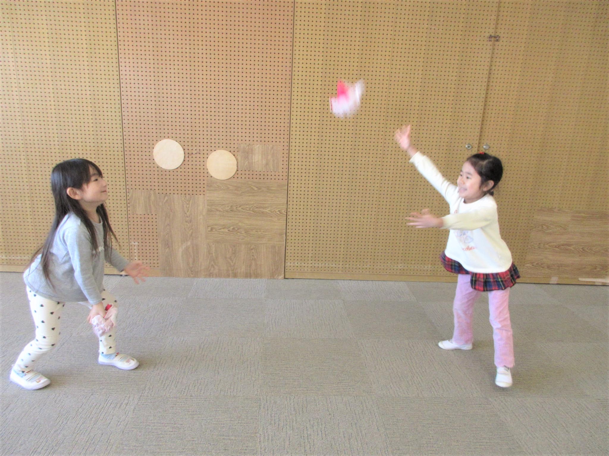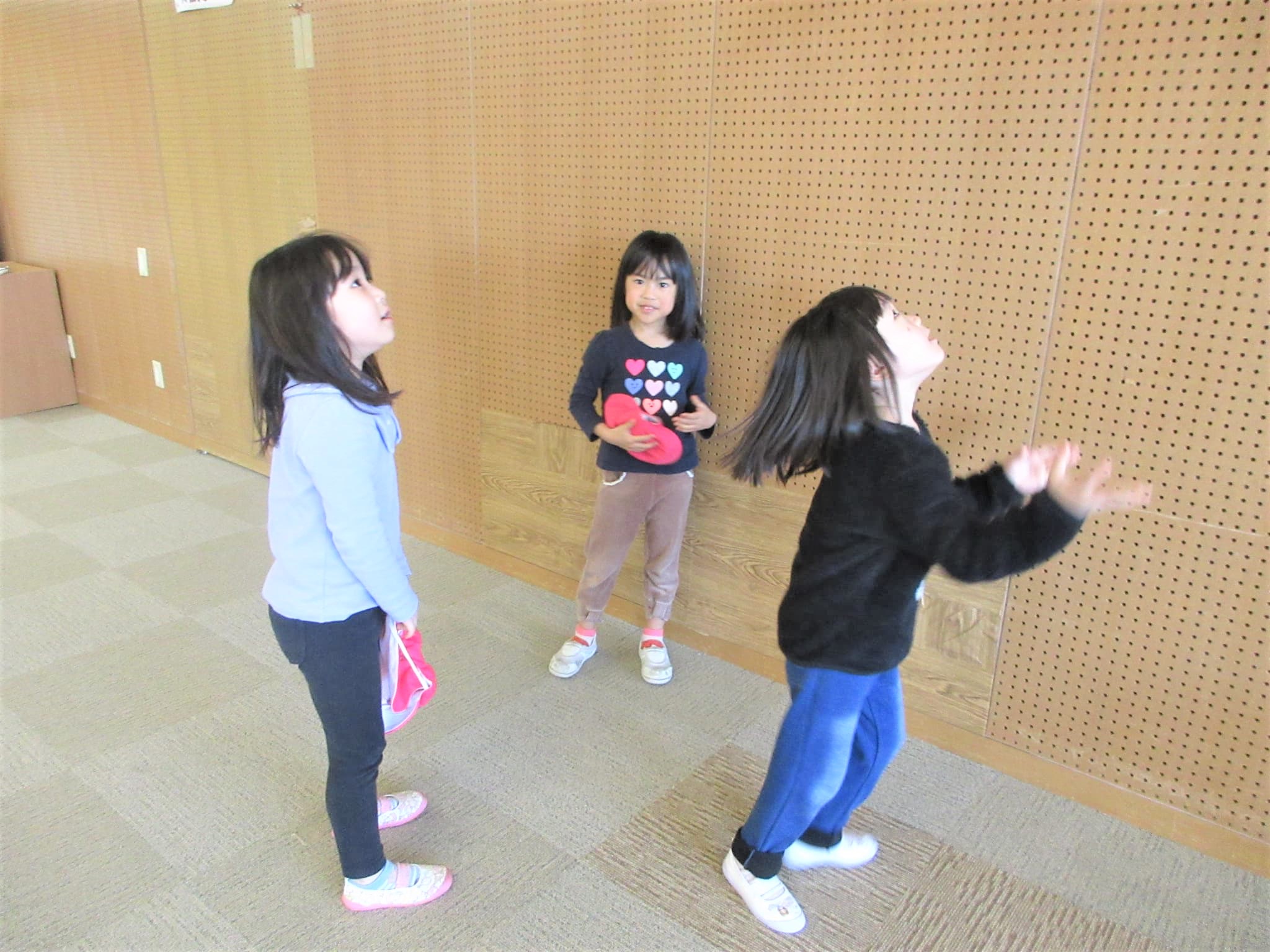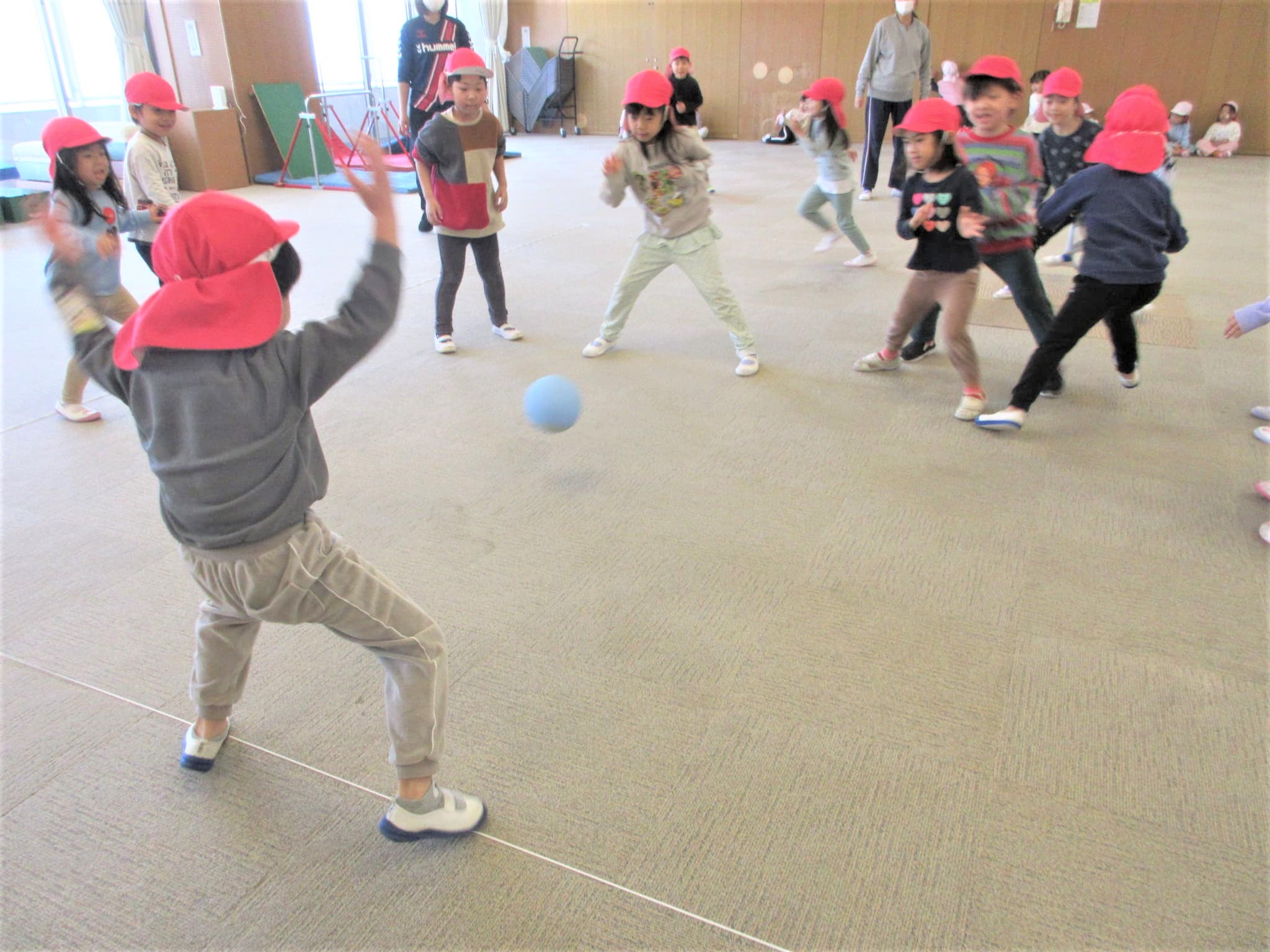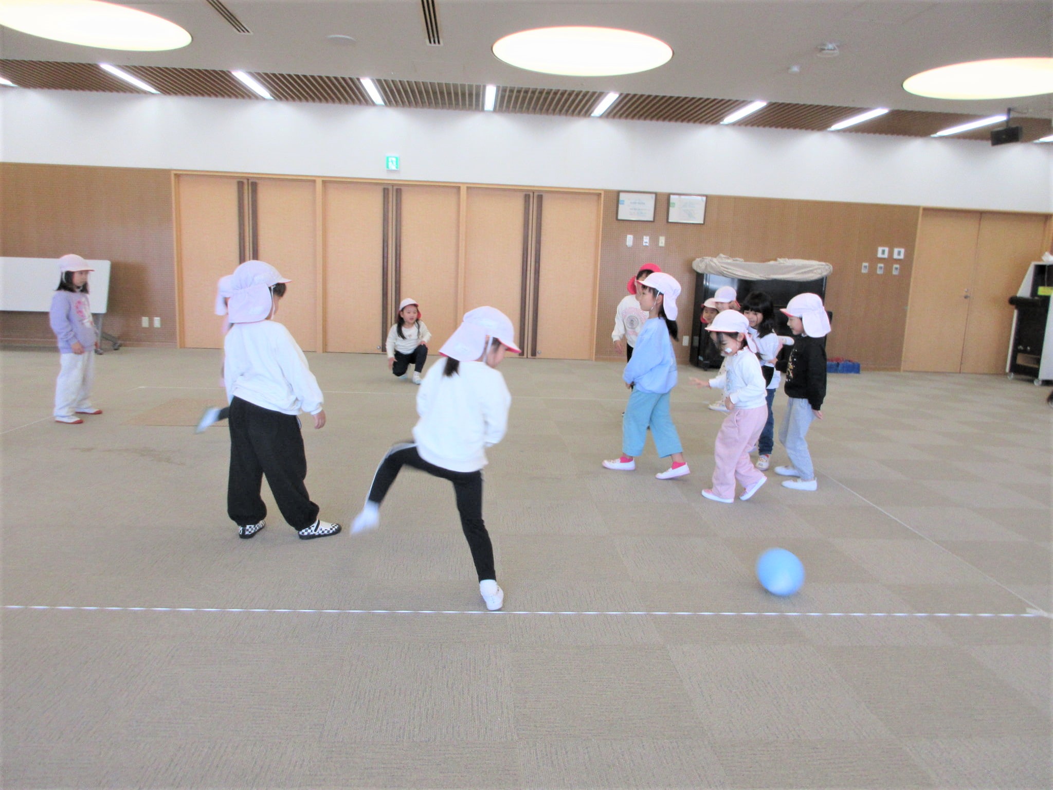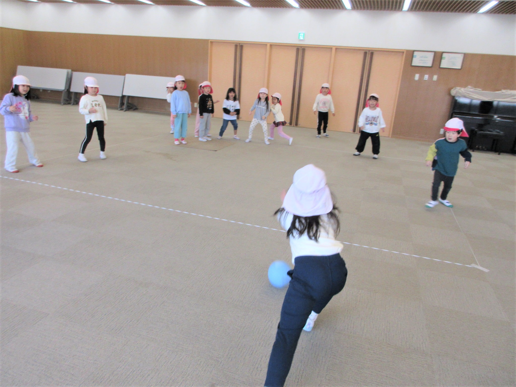 外に出ている子どもが、対角線に向かい合ってボールを転がすようにもなってきました♪