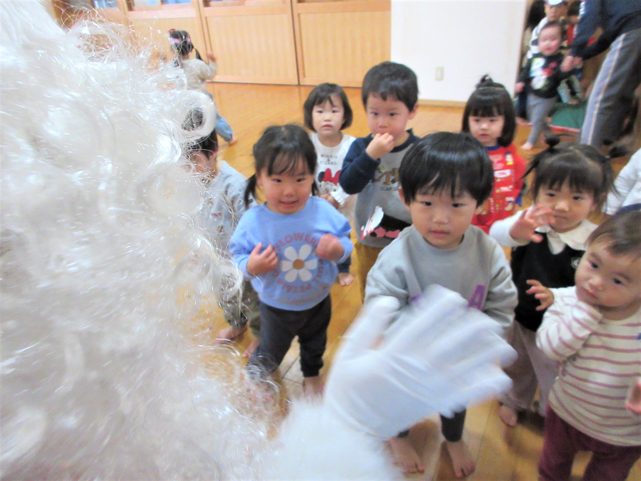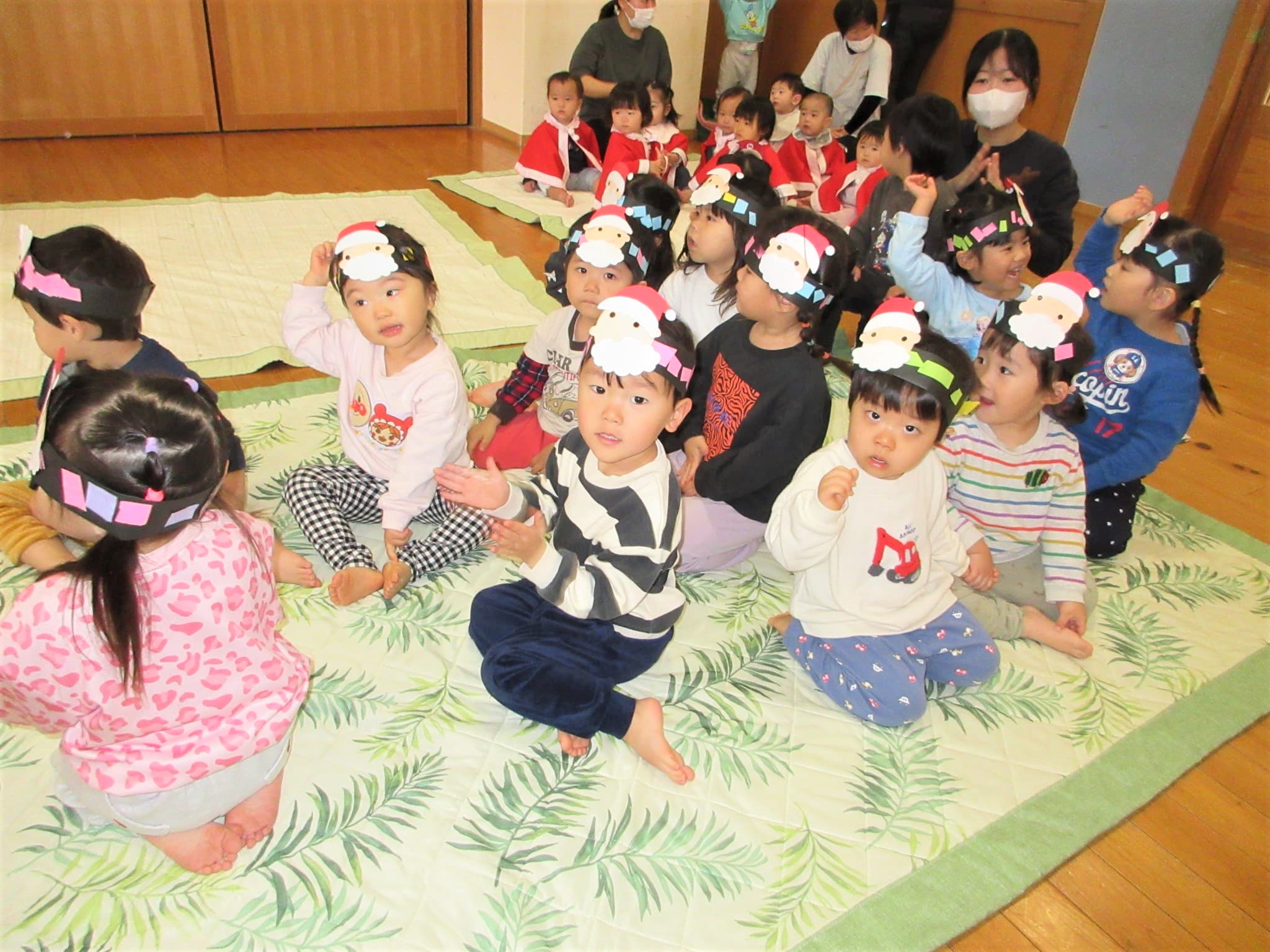 うさぎ組の子どもたちが、サンタさんの袋を見つめていました(笑)