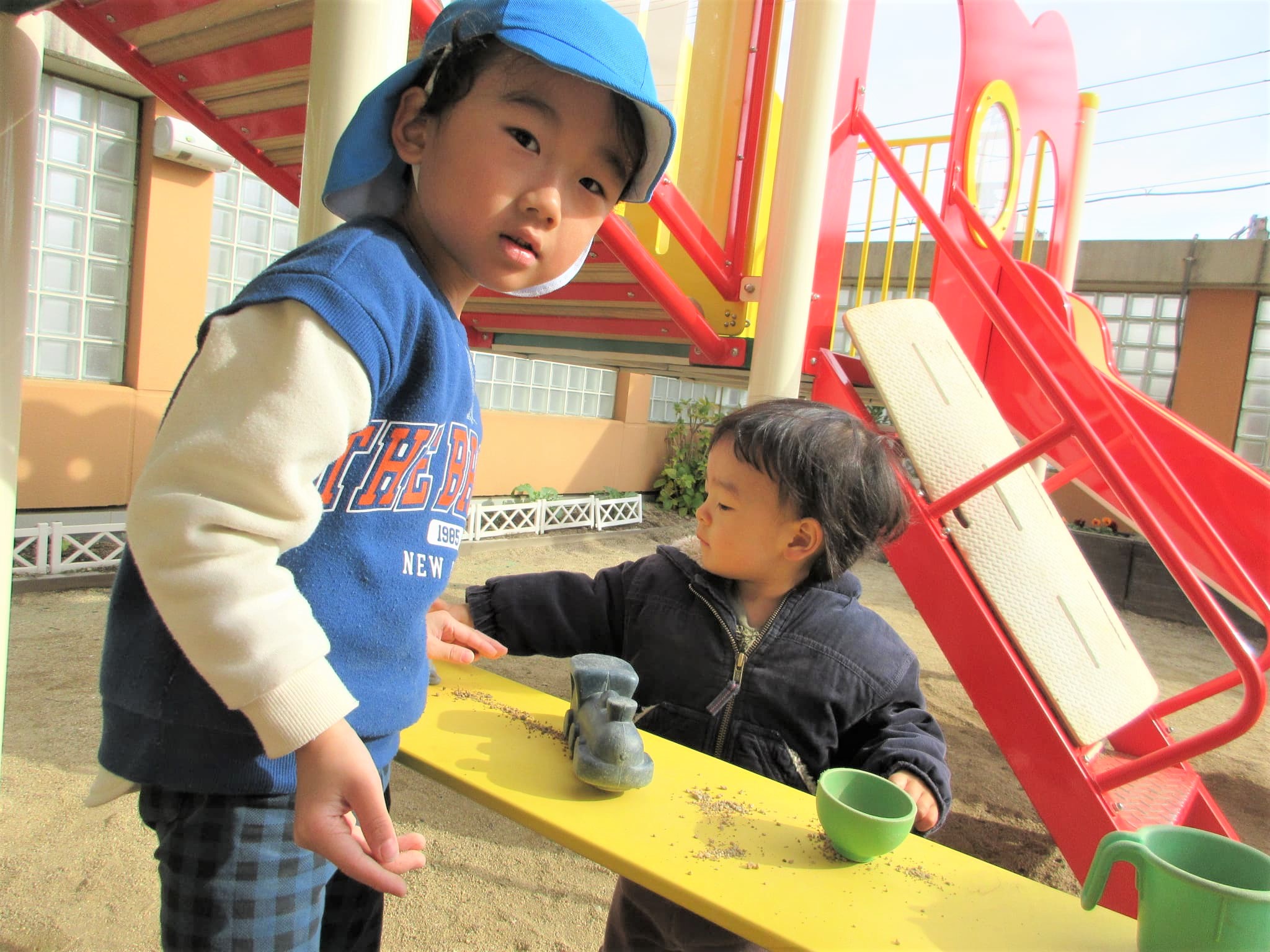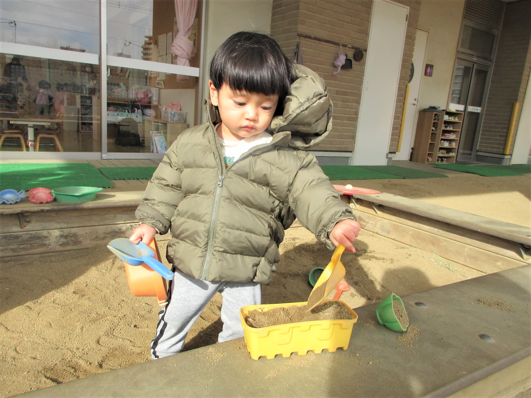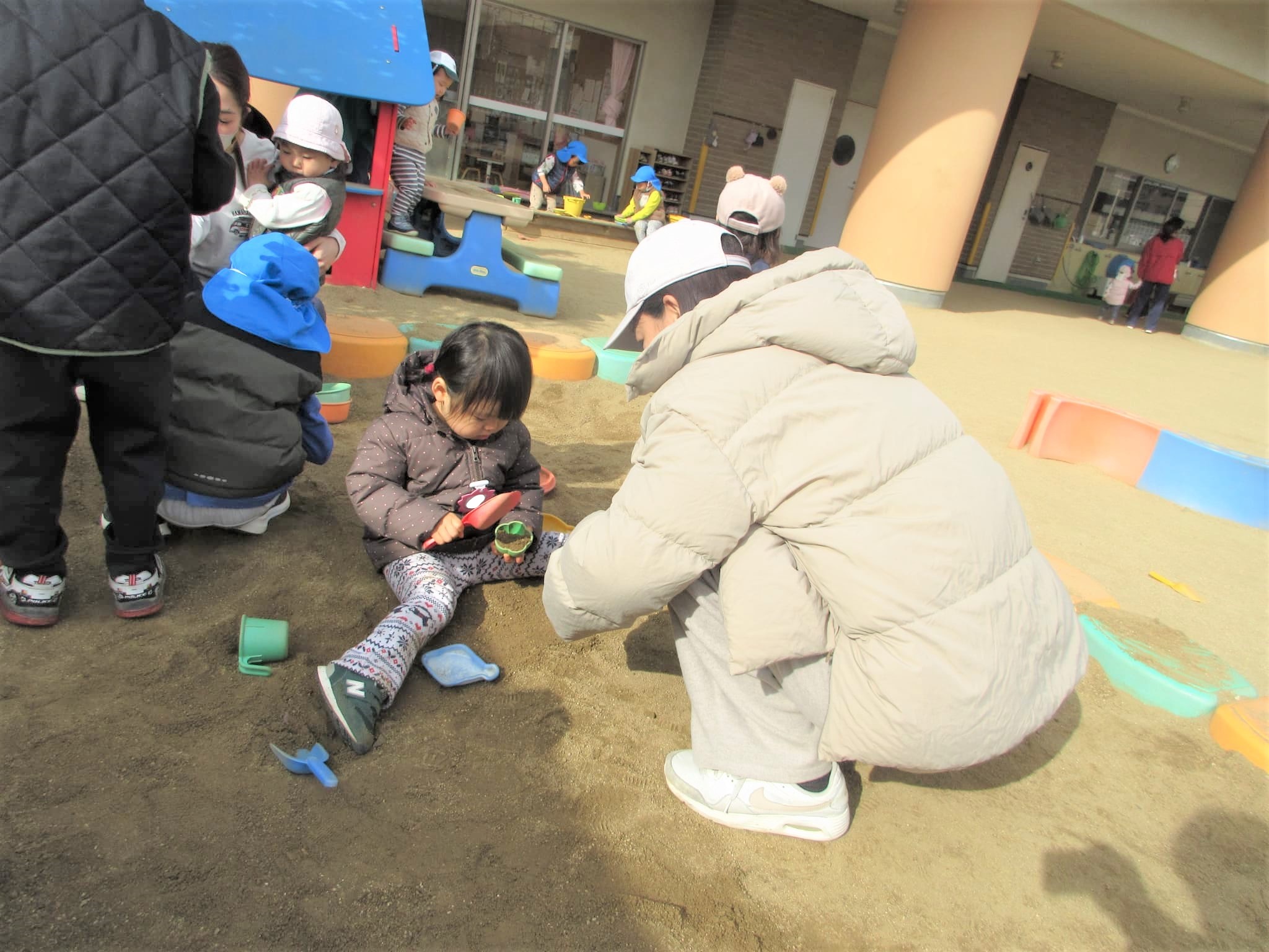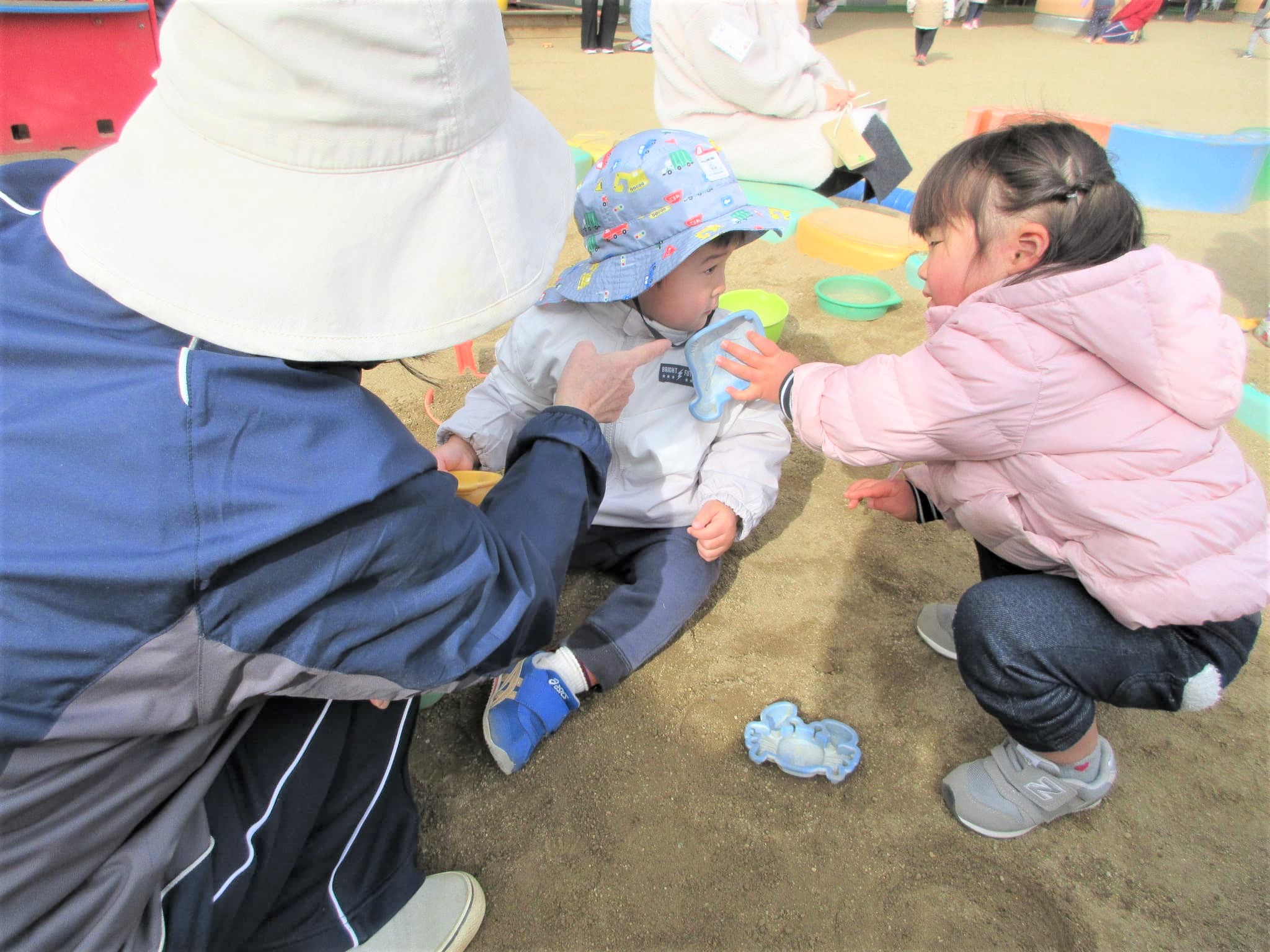 砂場のおもちゃを持ってきてくれる場面もありました♪