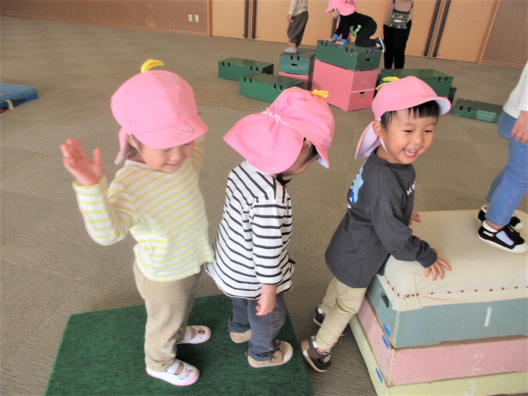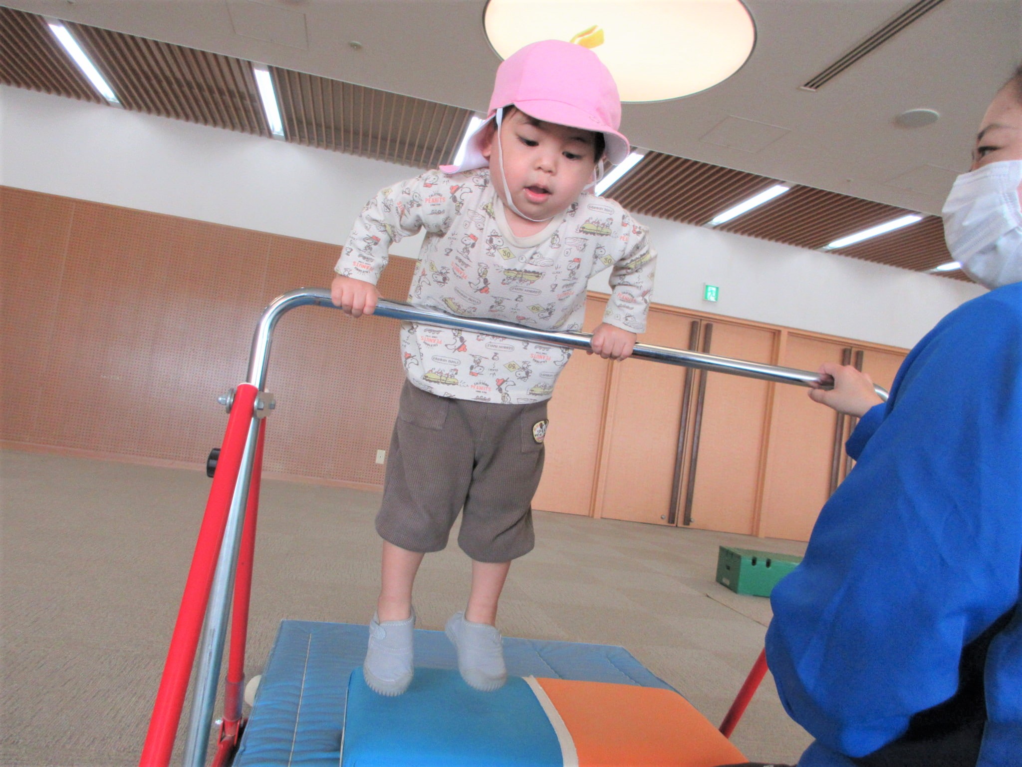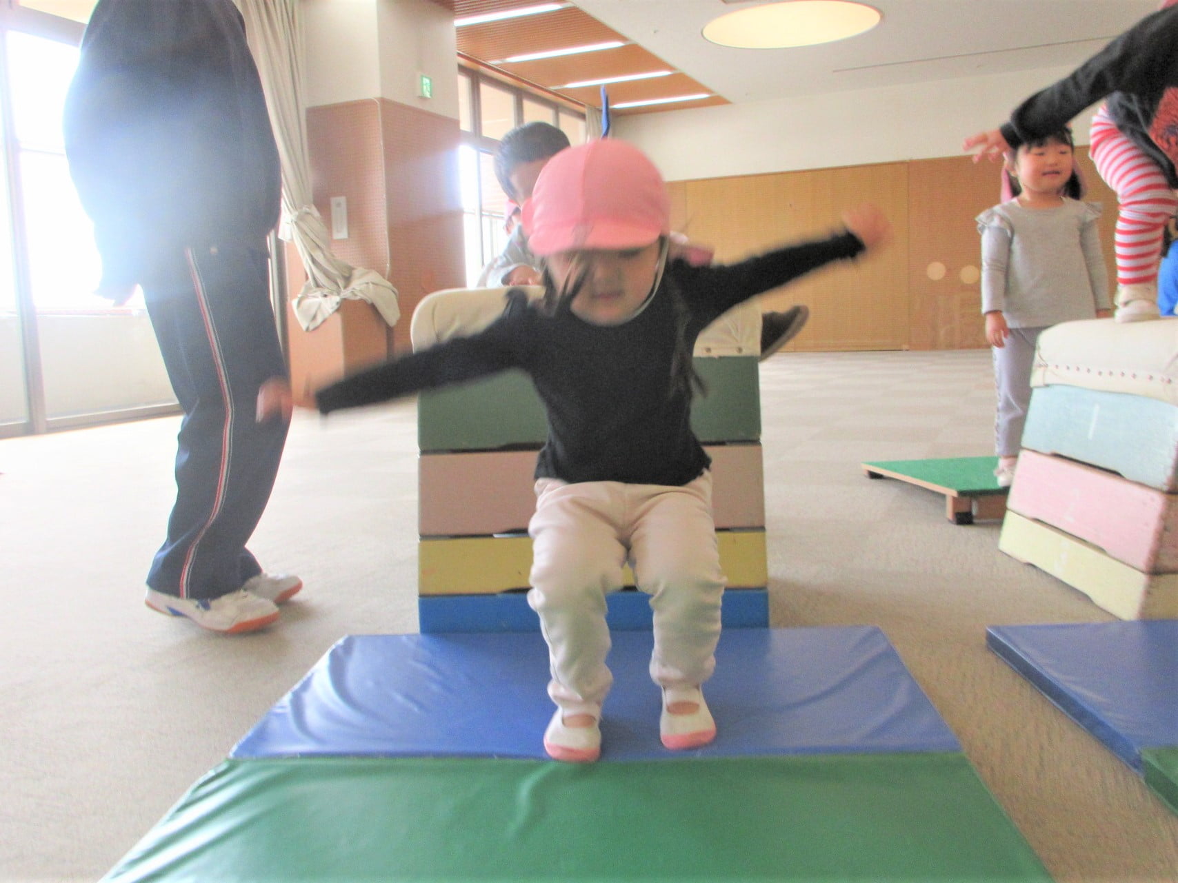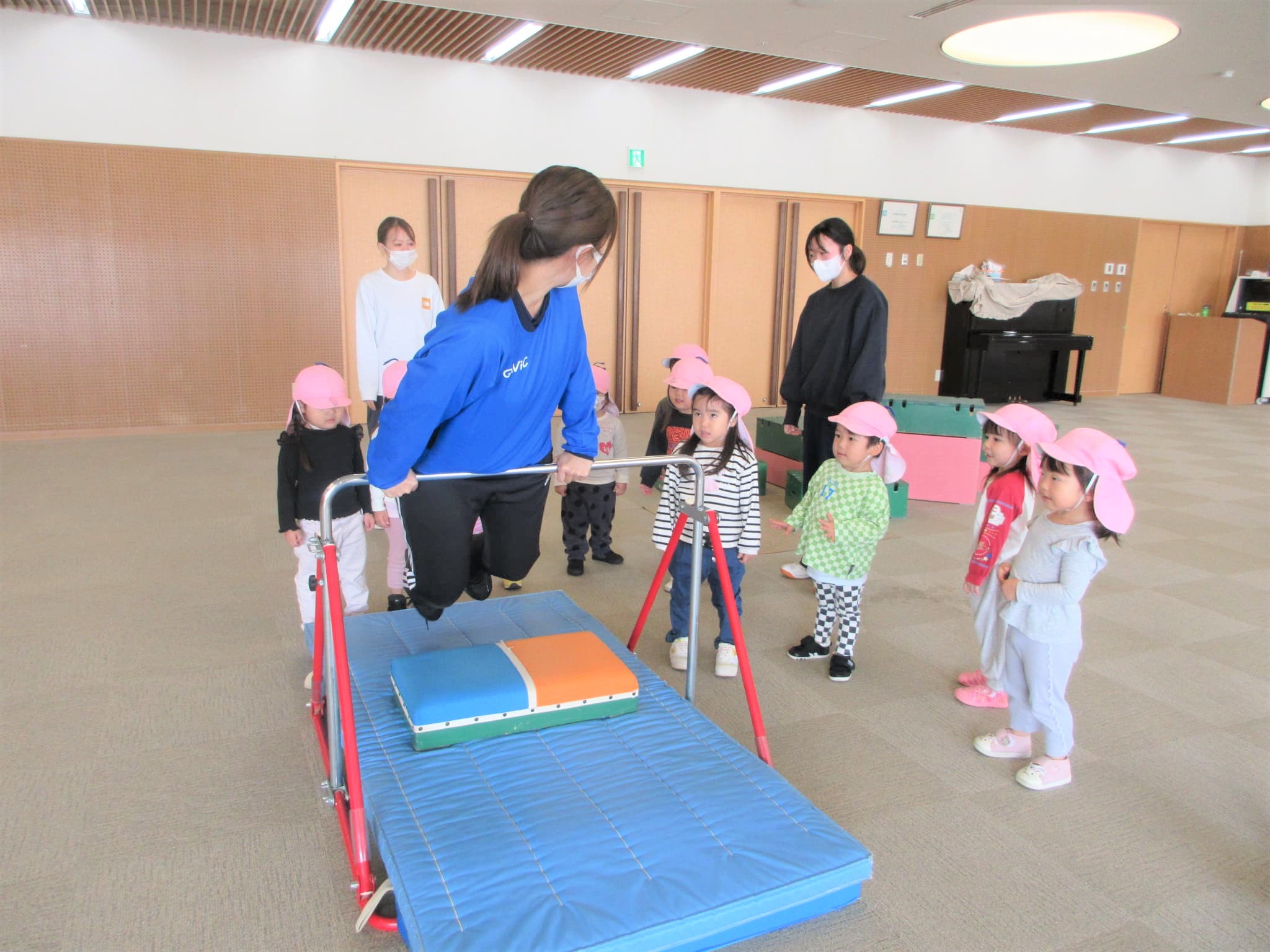 まずは、自分で鉄棒に跳び乗ろうとジャンプする姿がありました♪