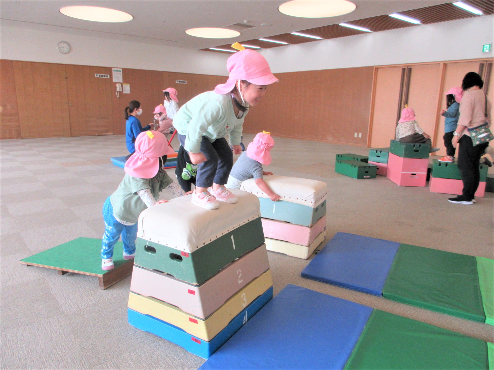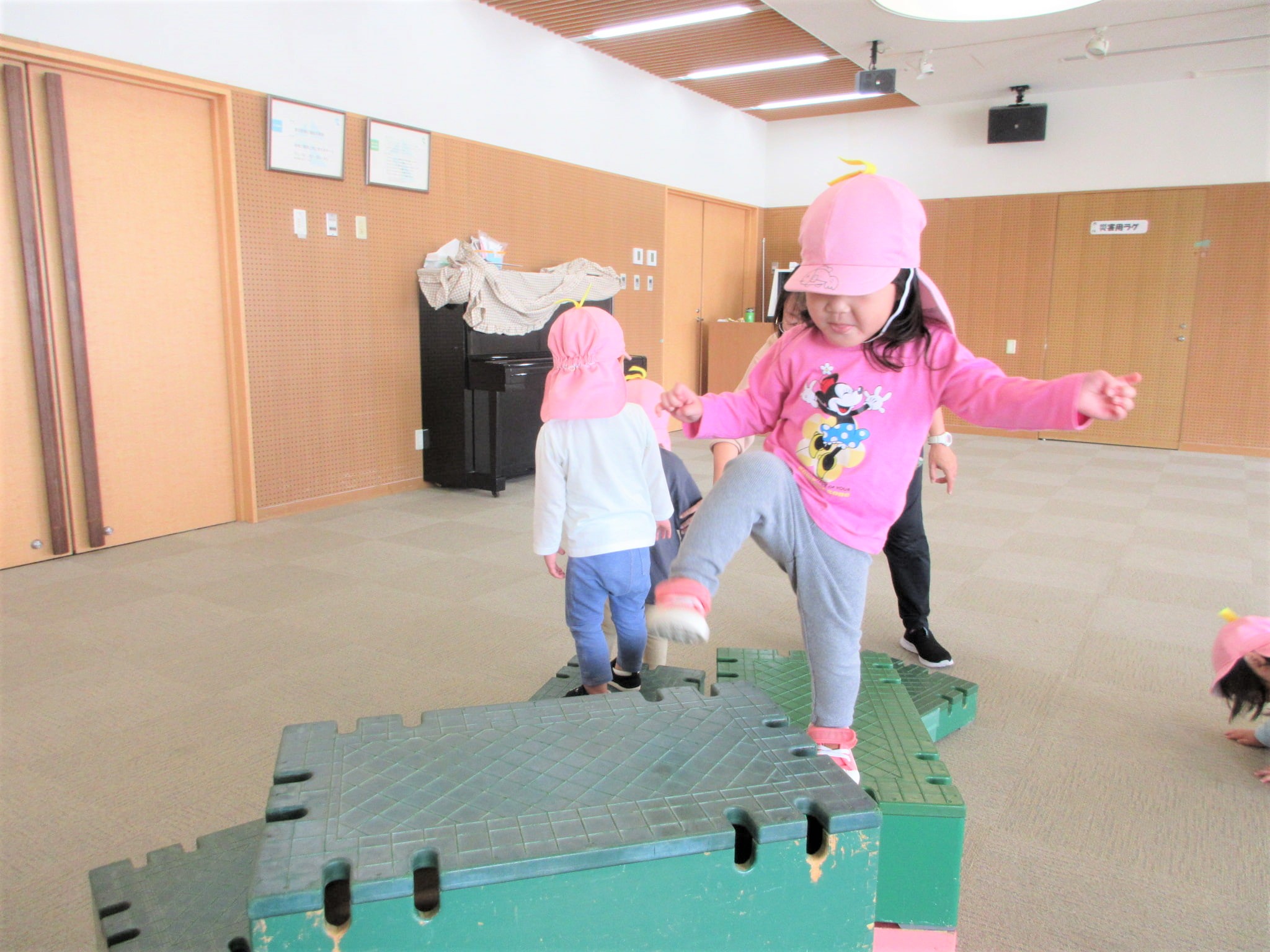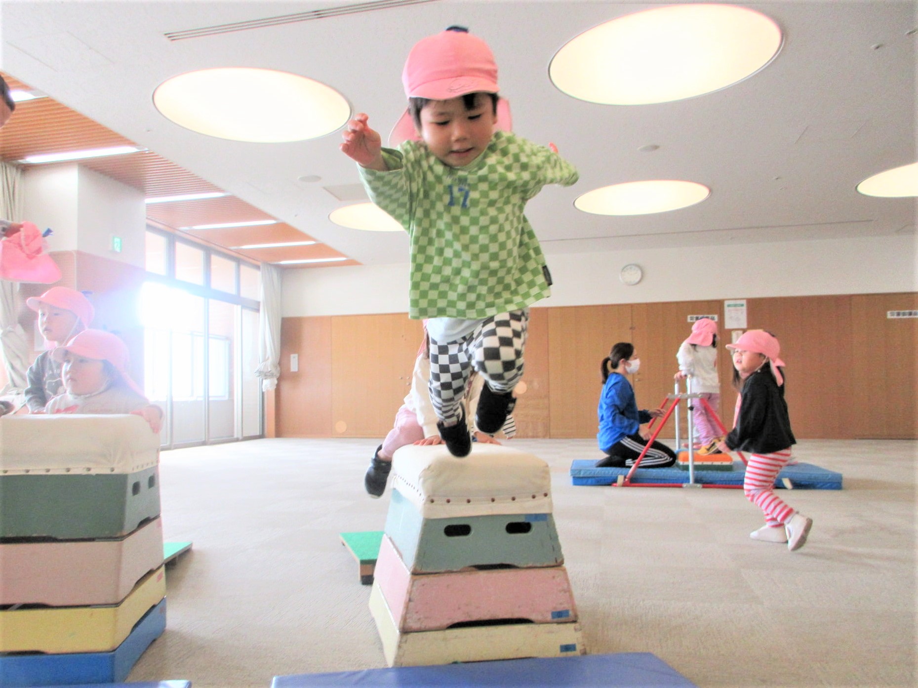 まずは、自分で鉄棒に跳び乗ろうとジャンプする姿がありました♪