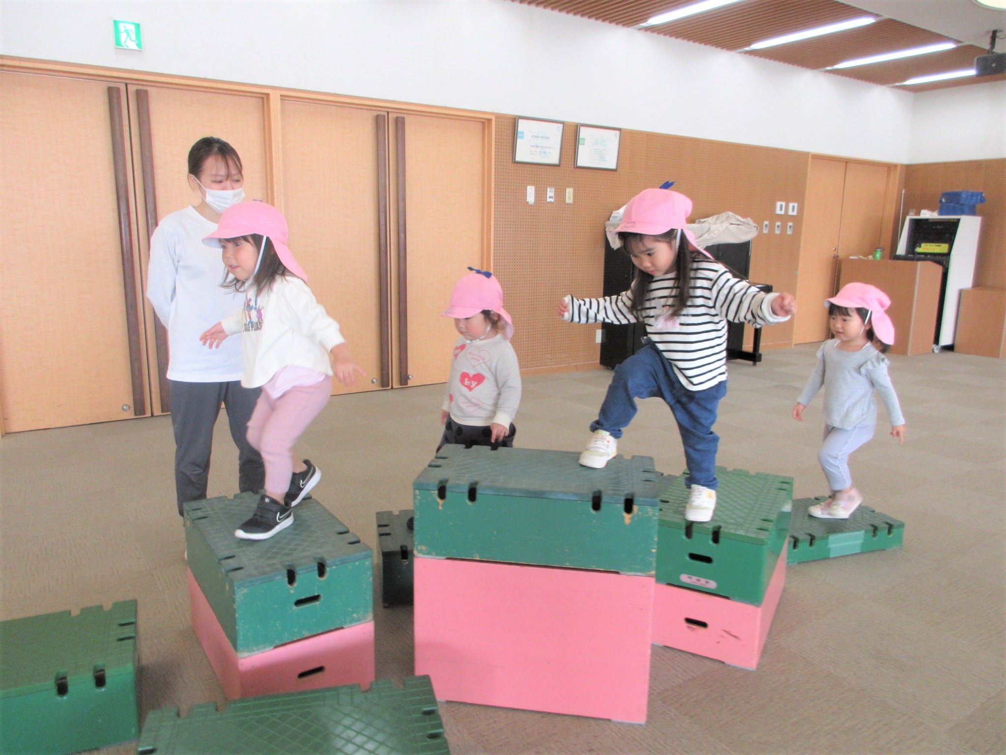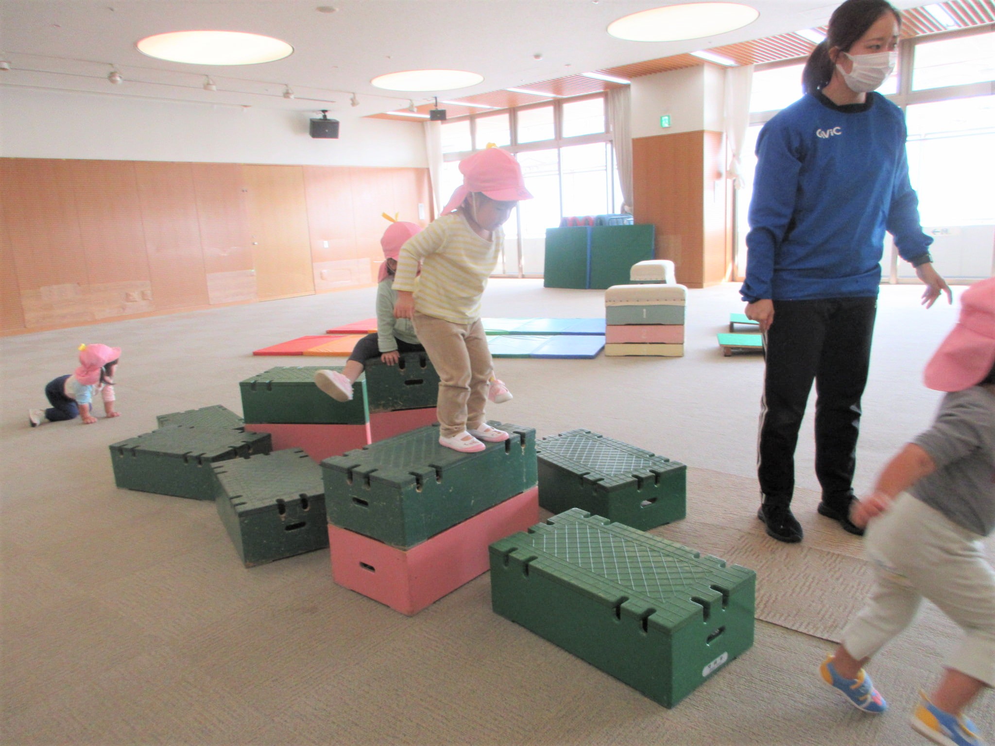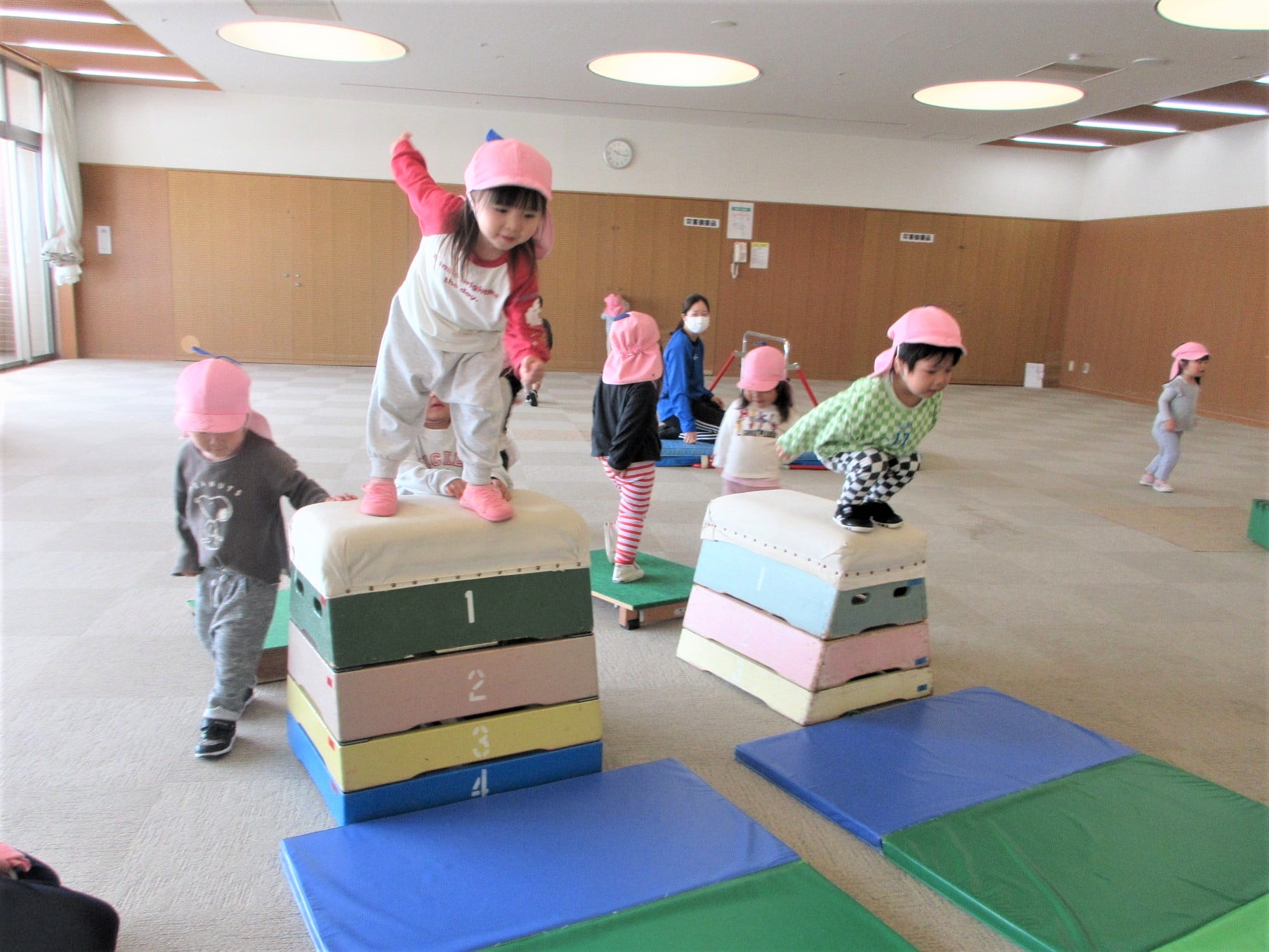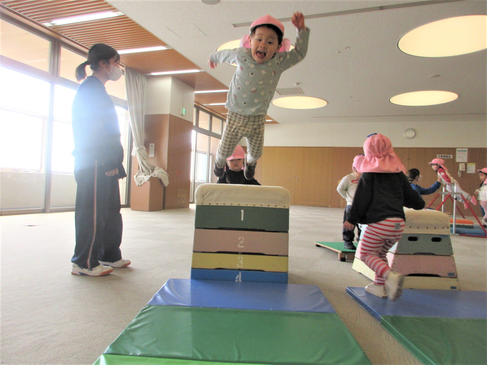 まずは、自分で鉄棒に跳び乗ろうとジャンプする姿がありました♪