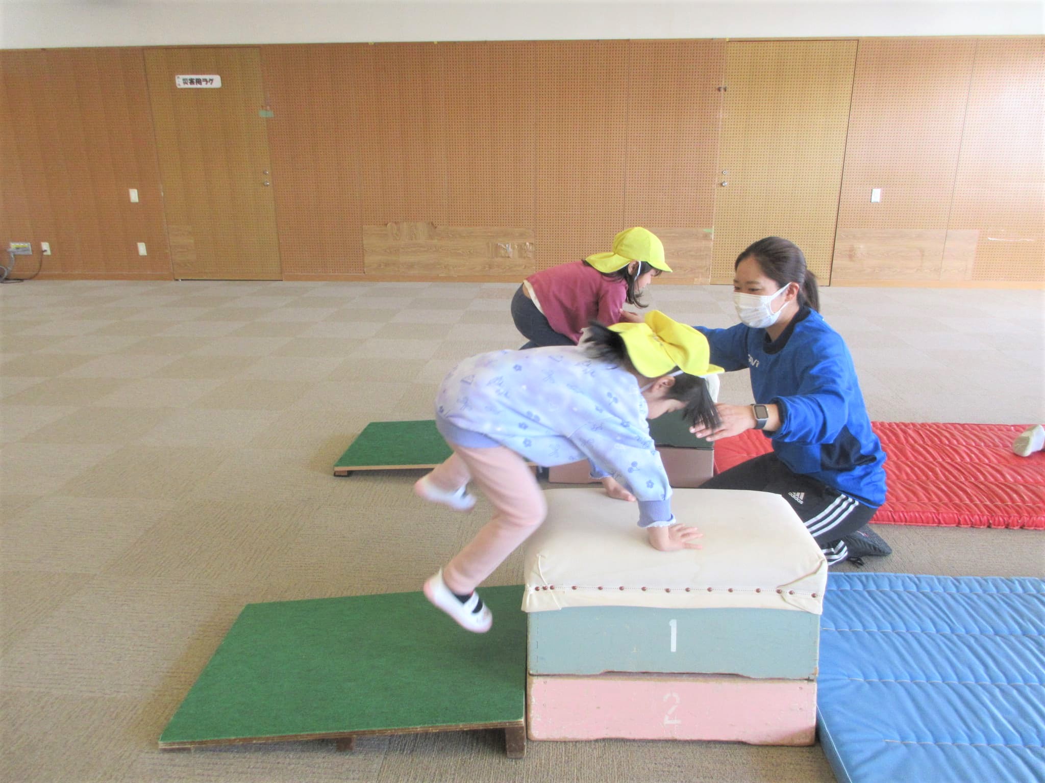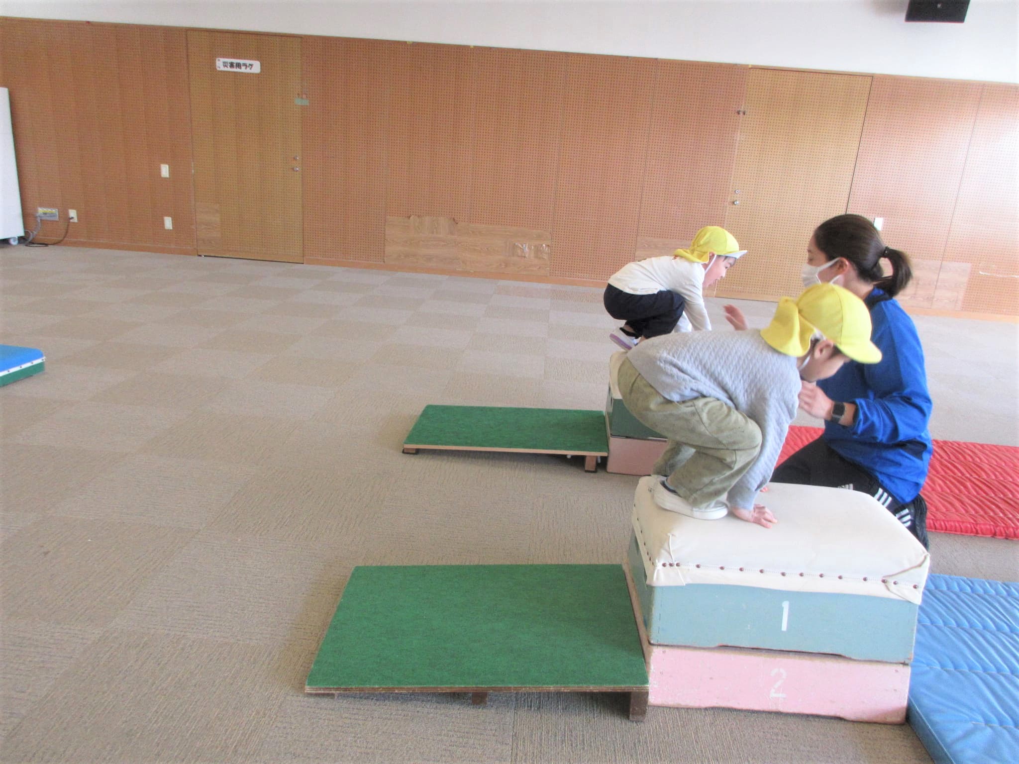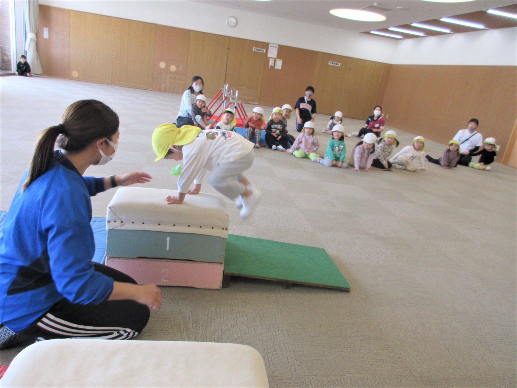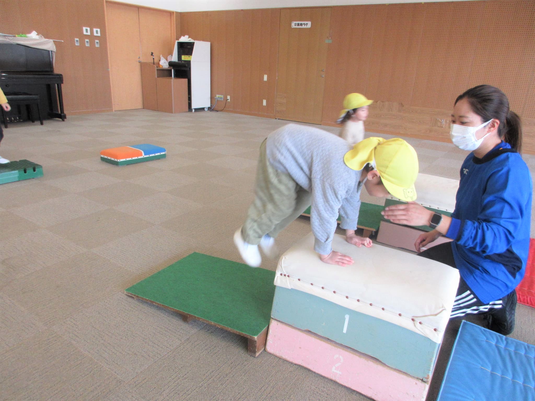 跳び箱に手をついた“まま”ジャンプ!!・・・のコツを掴んでいる最中です♪